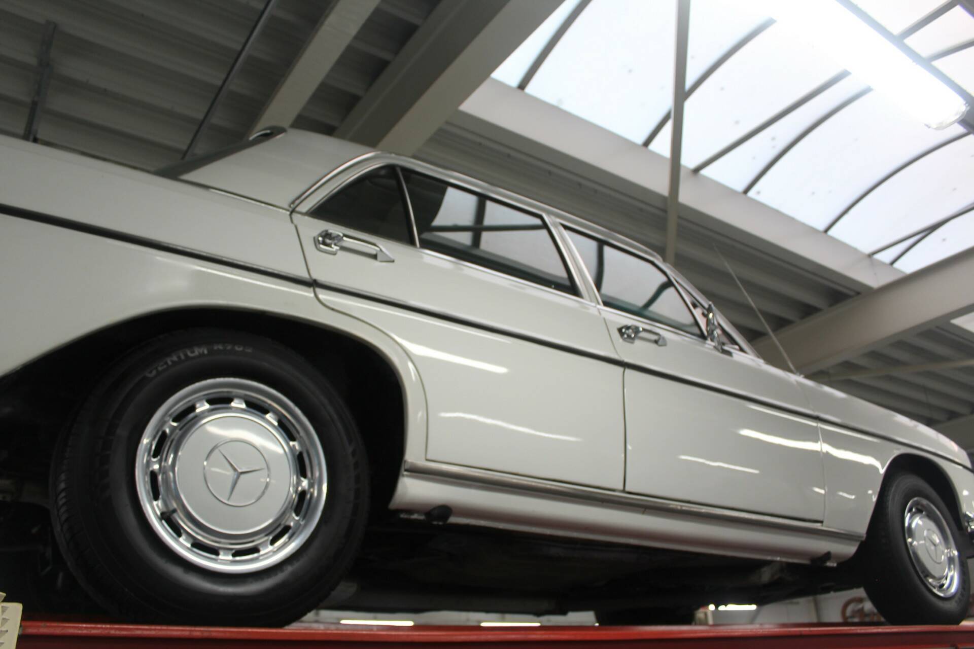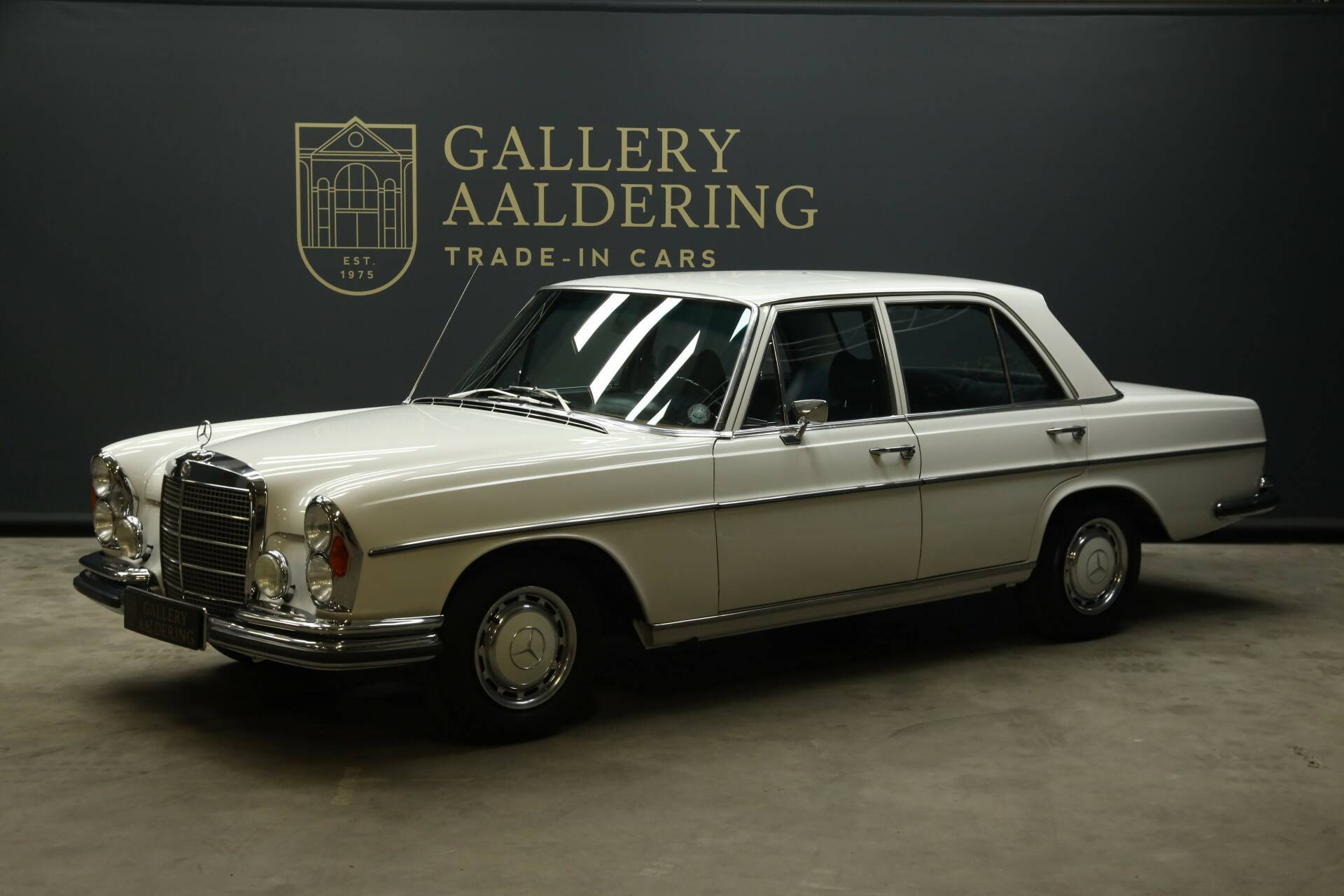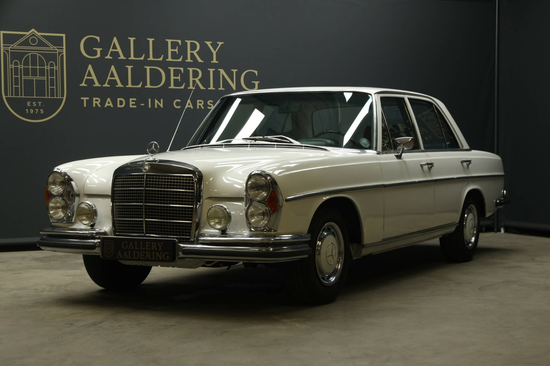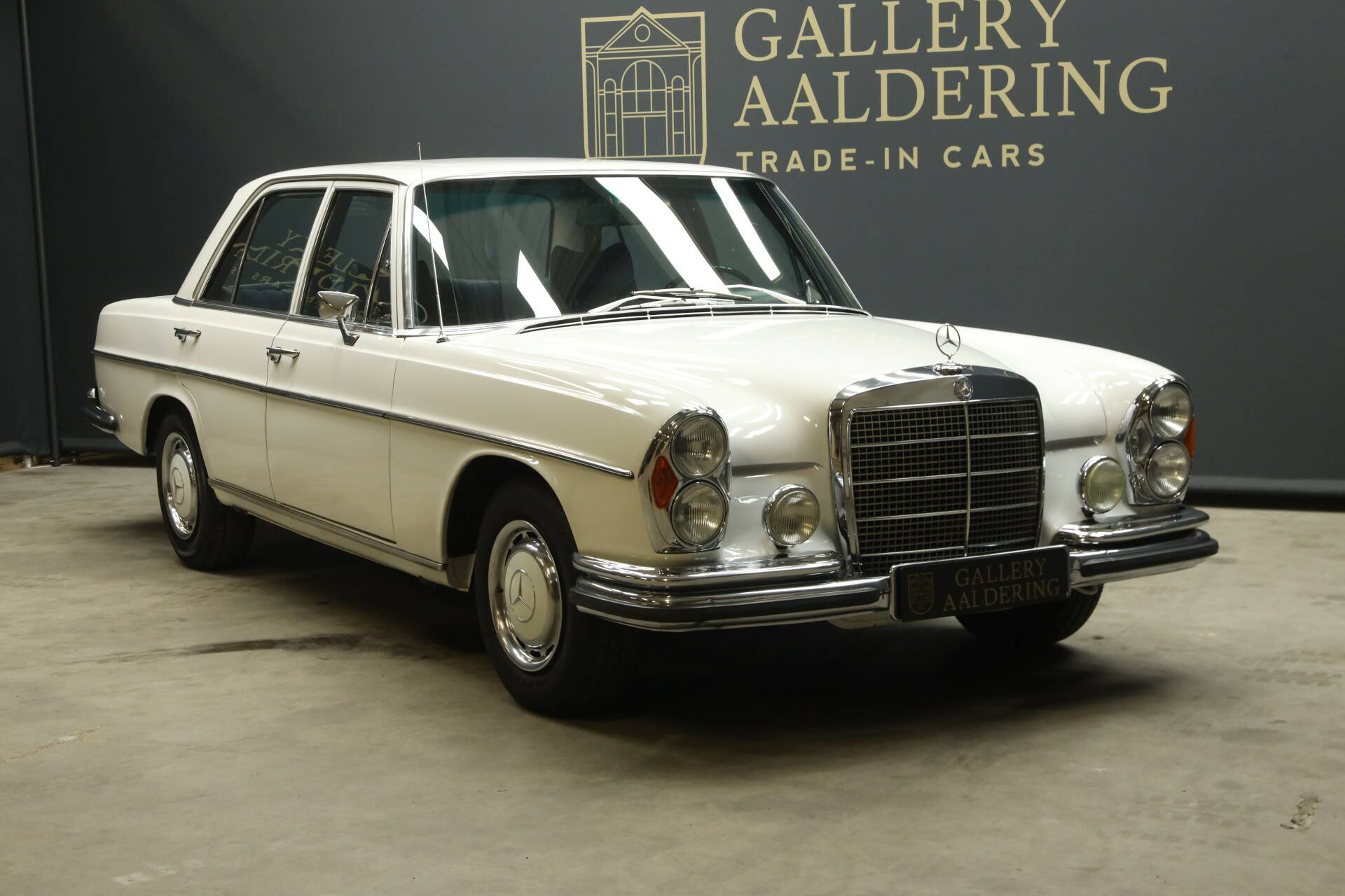 Mercedes Benz 280 SE Automatic "Floor shifter" Trade-in car Older nicely done restoration by an enthusiast, From factory equipped with "floor shifter Automatic" and sliding-roof, Livery in Papyrus White and Blue MB-tex/fabric, Well-running car that needs one more little bit of attention, Original German delivered 280 SE, Offered with original booklets in MB-pouch and more, Refinement lies in minor technical work,