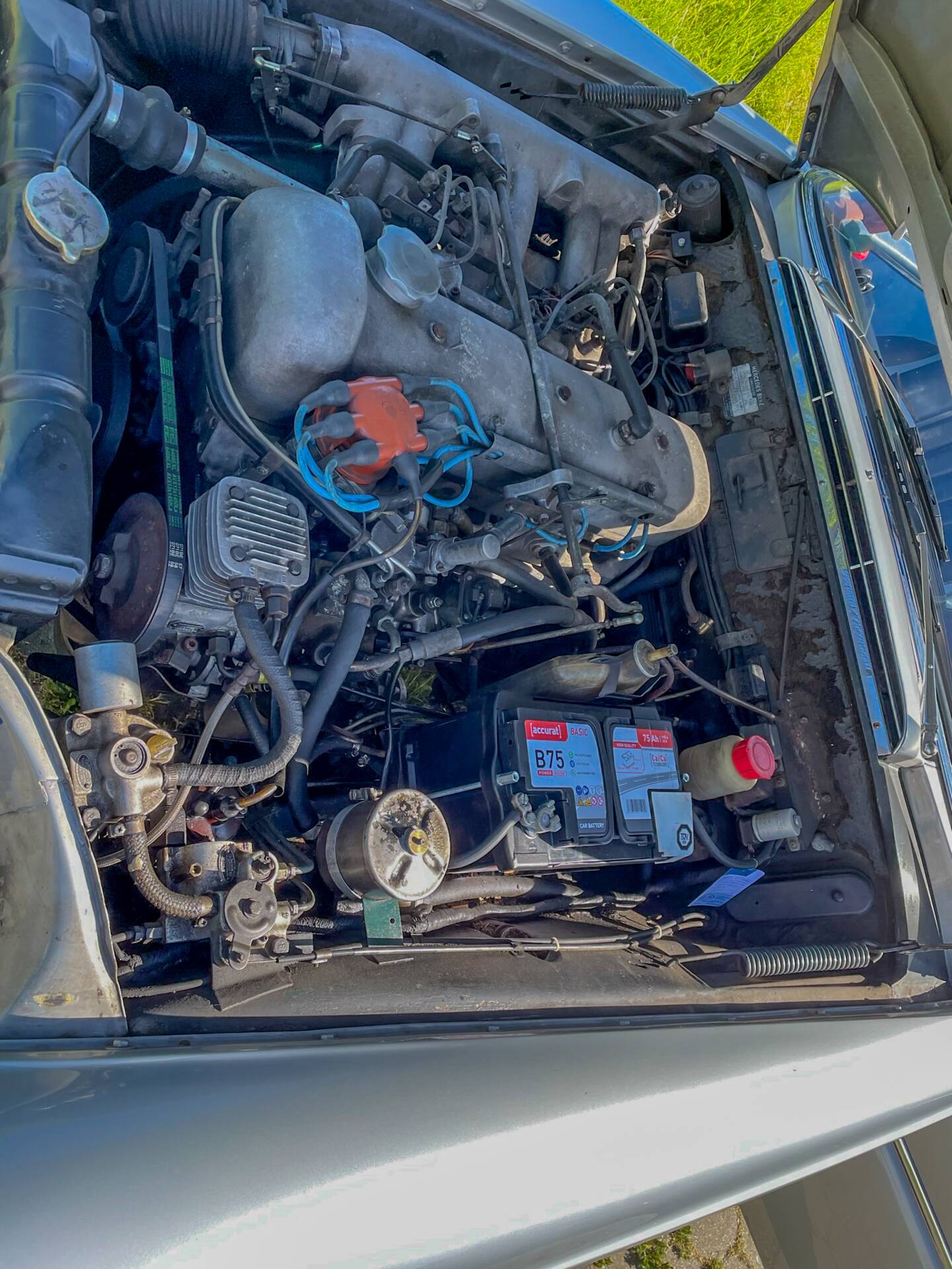 Der optimierte 6-Zyl.- Alu-Motorblock mit Saugrohreinspritzung des legendären 300 SL Roadster verbaut, und eine neuartige Luftfederung (vor 7 Jahren erneuert) mit Niveauregulierung, die höchsten Fahrkomfort versprechen. Dazu noch Servolenkung und 4 Scheibenbremsen für die damalige Zeit das Beste, was Mercedes-Benz zu bieten hatte!