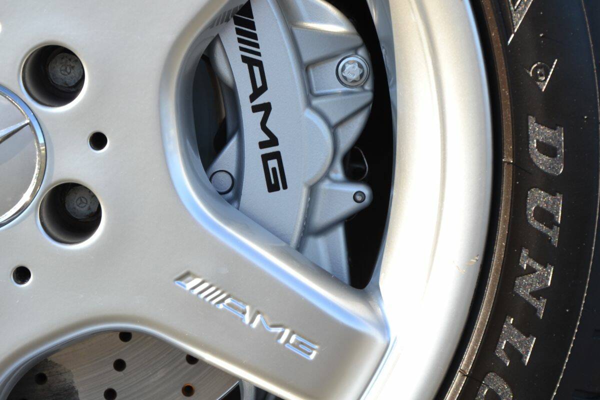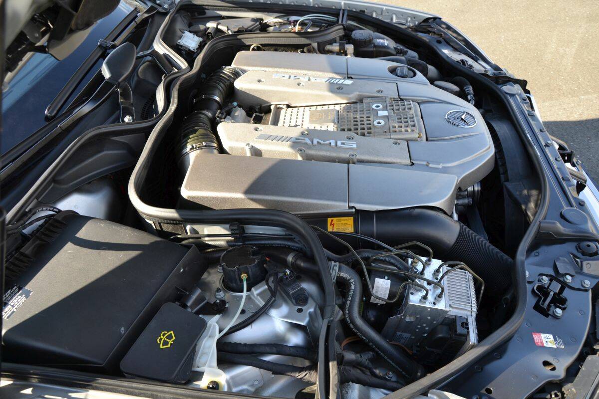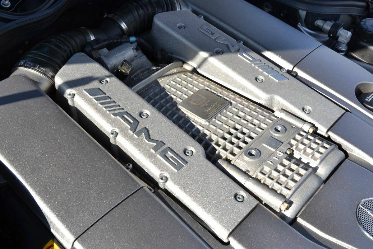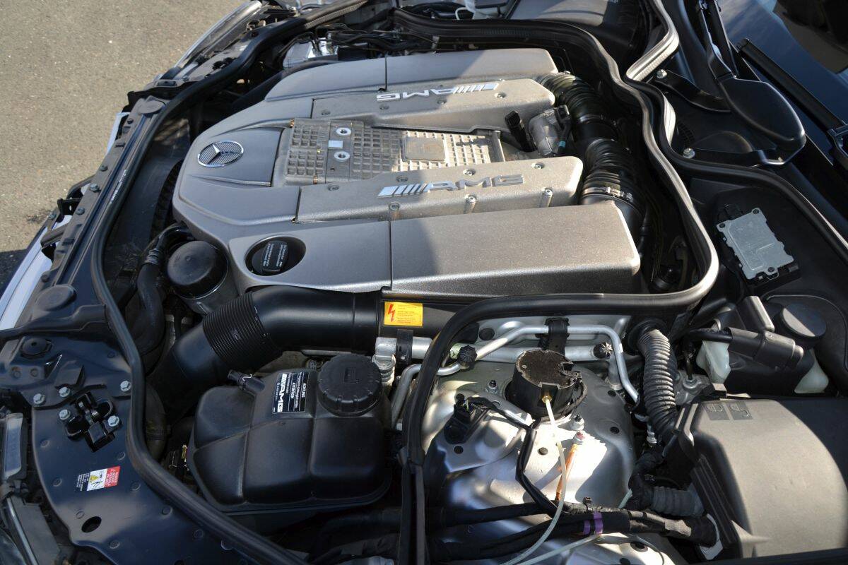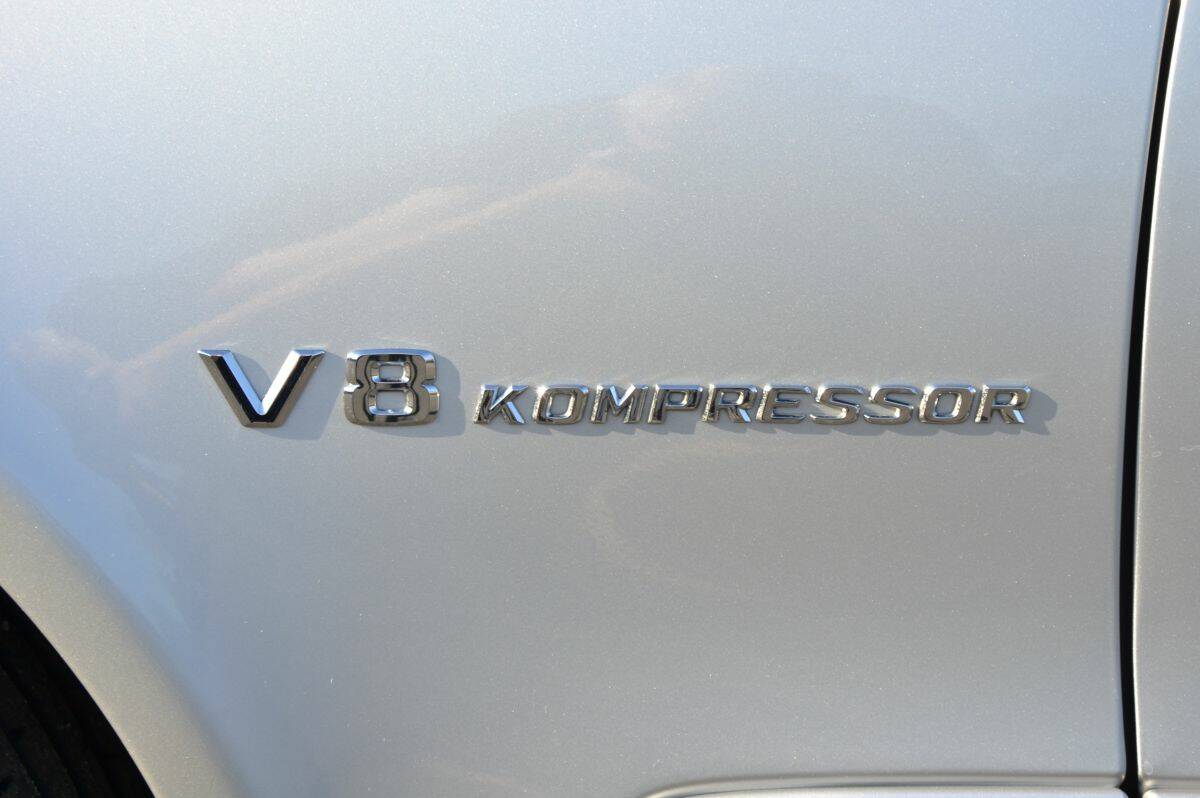 At the heart of the car lies the M113(K), a 5.4-litre V8 fitted with a large supercharger, or “Kompressor,” as Mercedes-Benz calls it. Thanks to forced induction, the engine produces an impressive 476 horsepower. Even more striking is the torque figure: a massive 700 Nm available from just 2,650 rpm, remaining strong throughout much of the rev range. Even below 2,500 rpm, more than 500 Nm is already on tap.