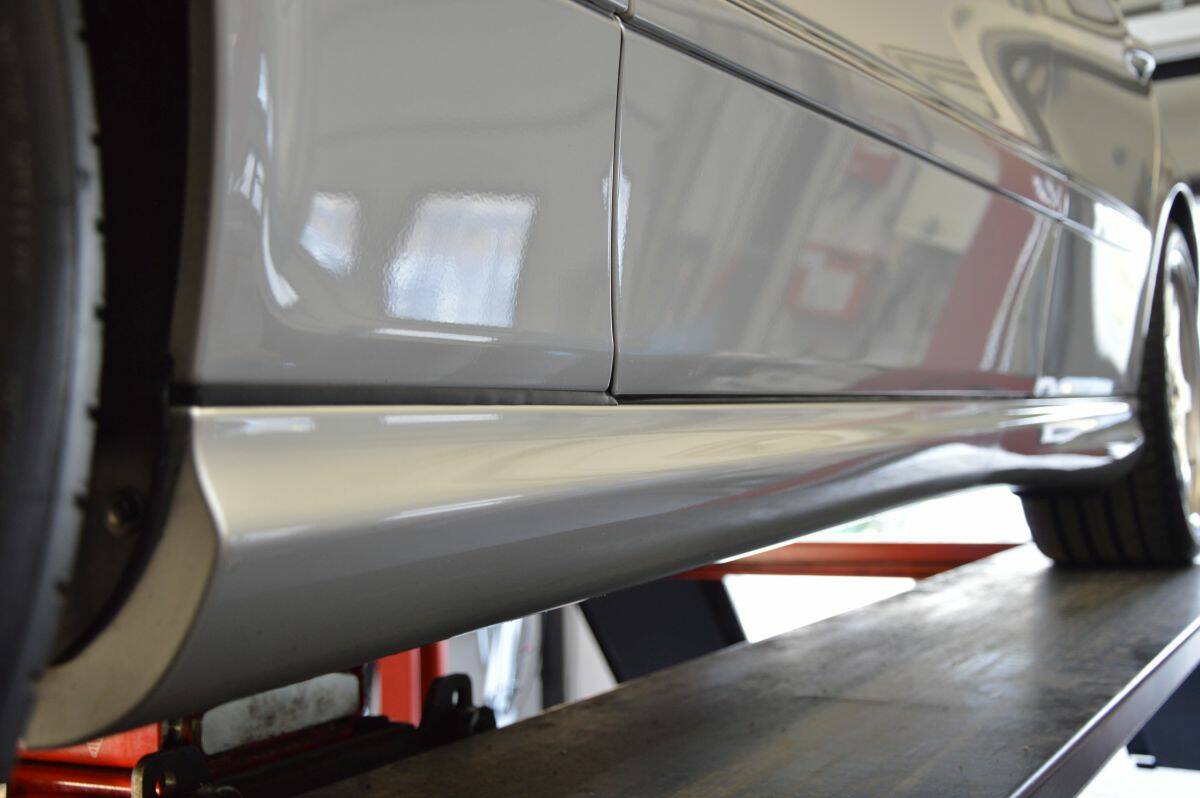 This AMG is a completely different story. The car still wears its original factory paint throughout, is accident-free and entirely rust-free, and even lacks the well-known “spidering” beneath the clear coat. The wheel arch edges are crisp and original, as are the inner door sections, even beneath the door seals. The roof panel near the windshield, roof trims and areas around the sunroof remain original and corrosion-free. The brake calipers are beautifully preserved without discoloration, and the wheels have never been repainted or refinished, retaining their unique deep metallic finish that is difficult to replicate during restoration. The extensive photo documentation on our website illustrates this in detail. It is truly exceptional.