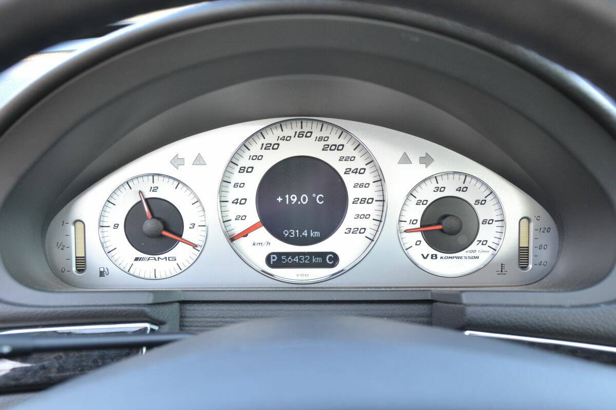 The result is effortless acceleration at any speed or in any situation. The E55 reaches 100 km/h in just 4.7 seconds and quickly continues to its electronically limited top speed of 250 km/h. Mid-range acceleration is even more impressive, especially for a sedan from 2003.