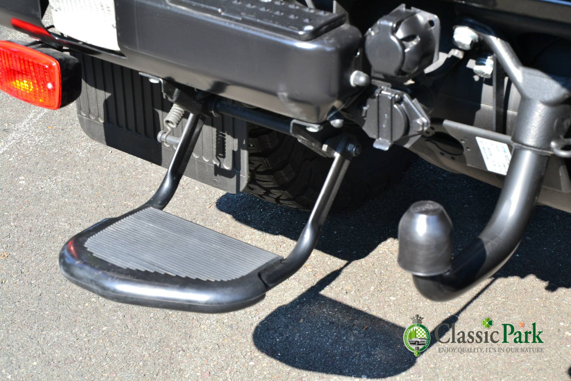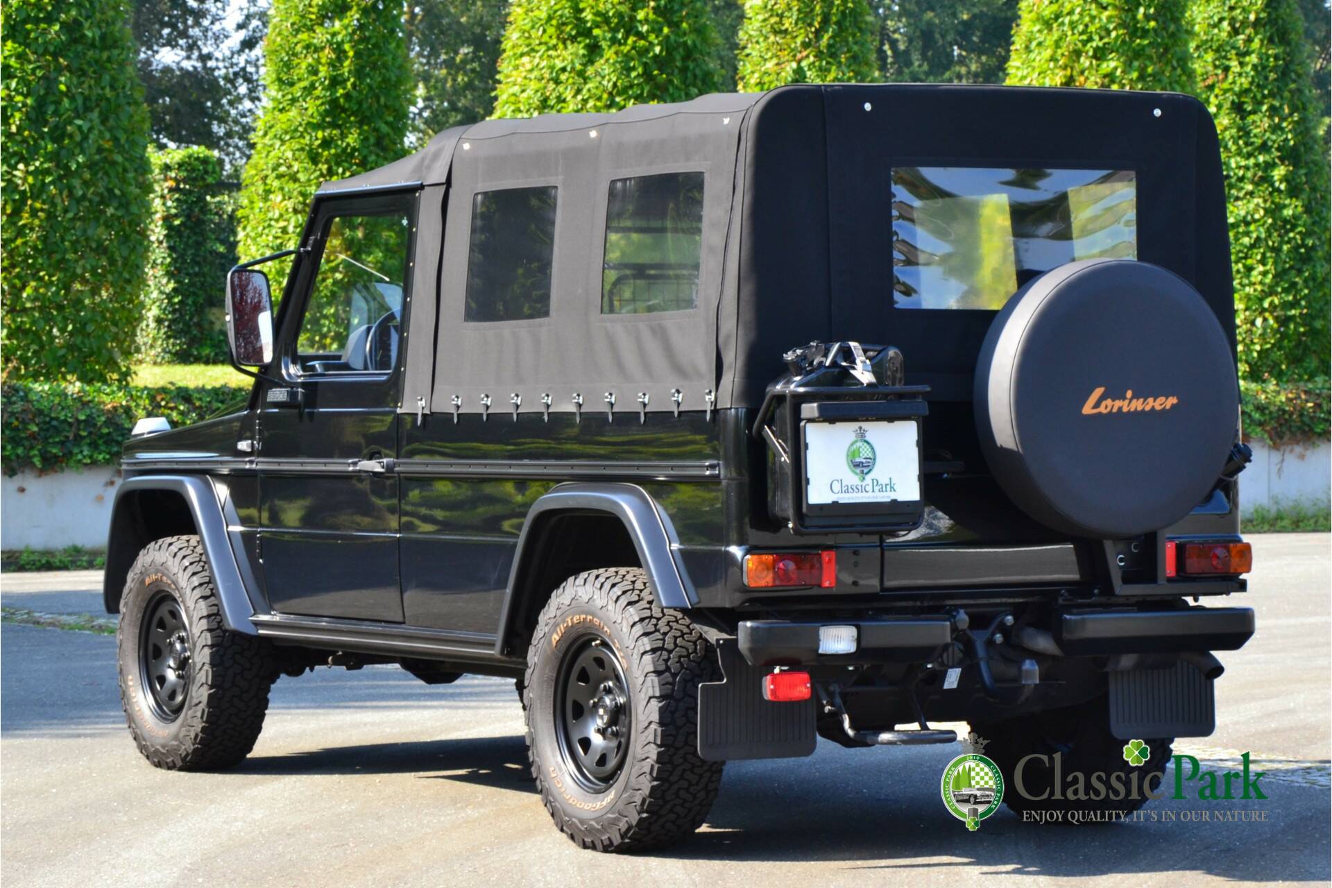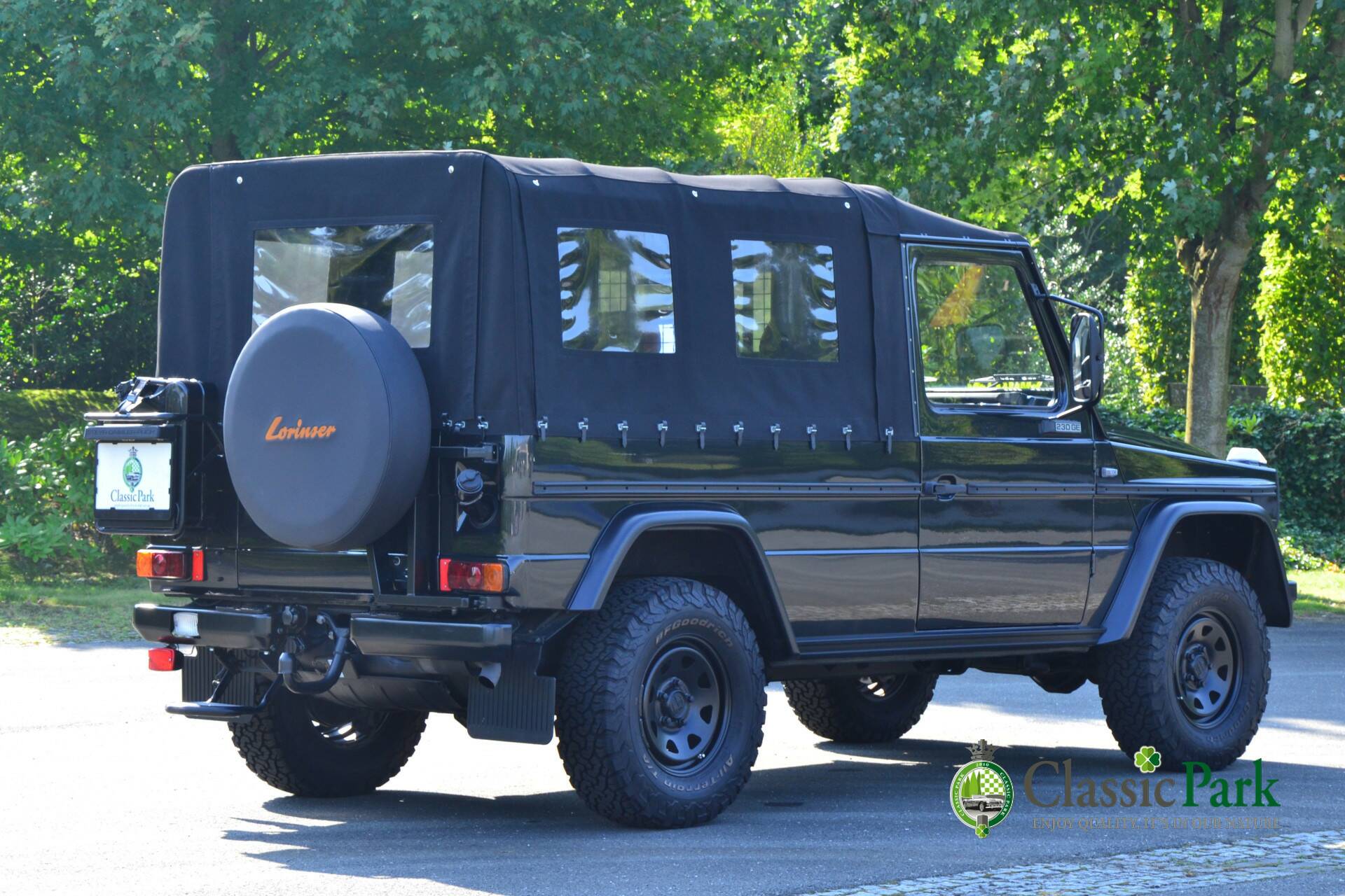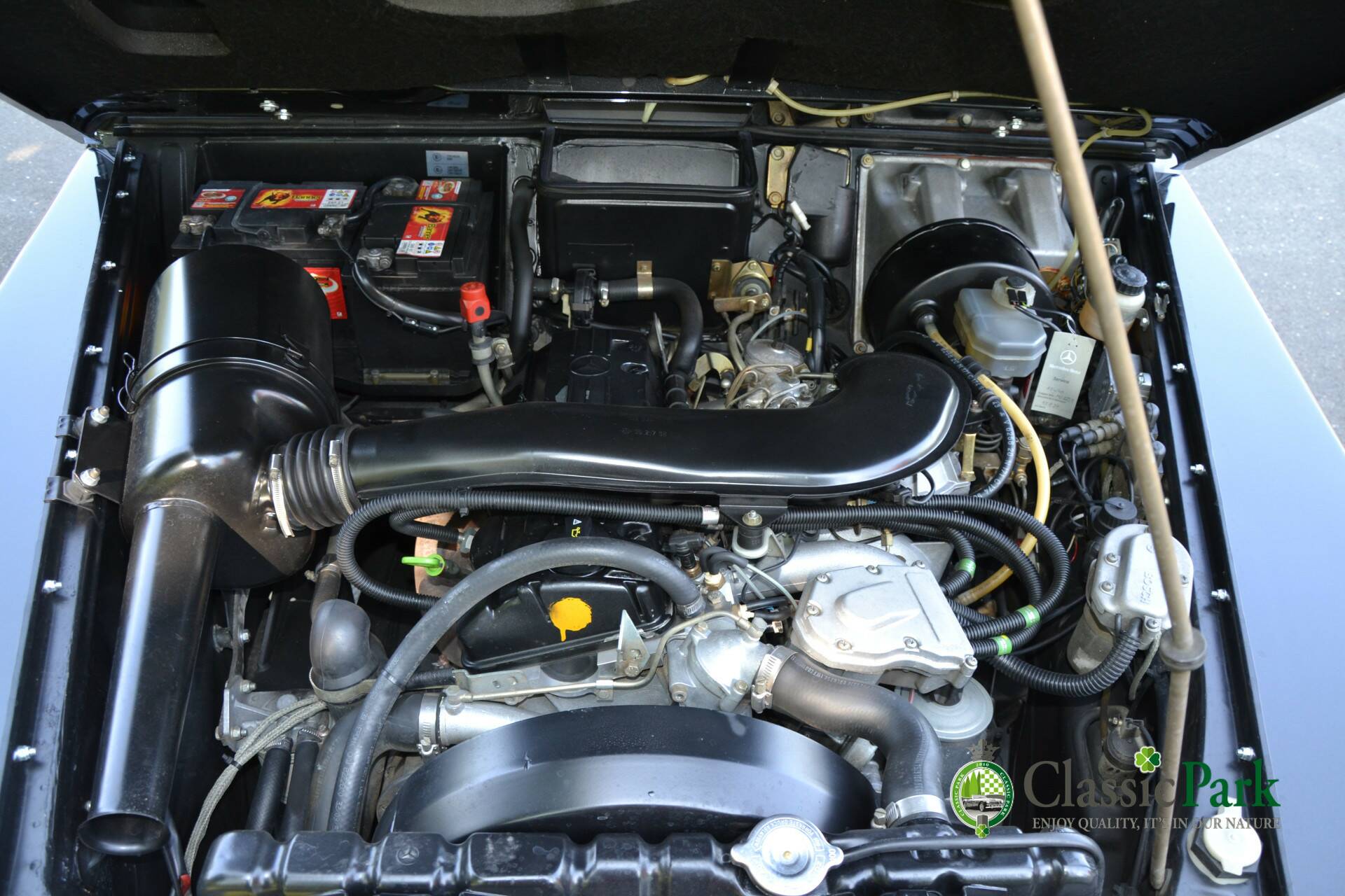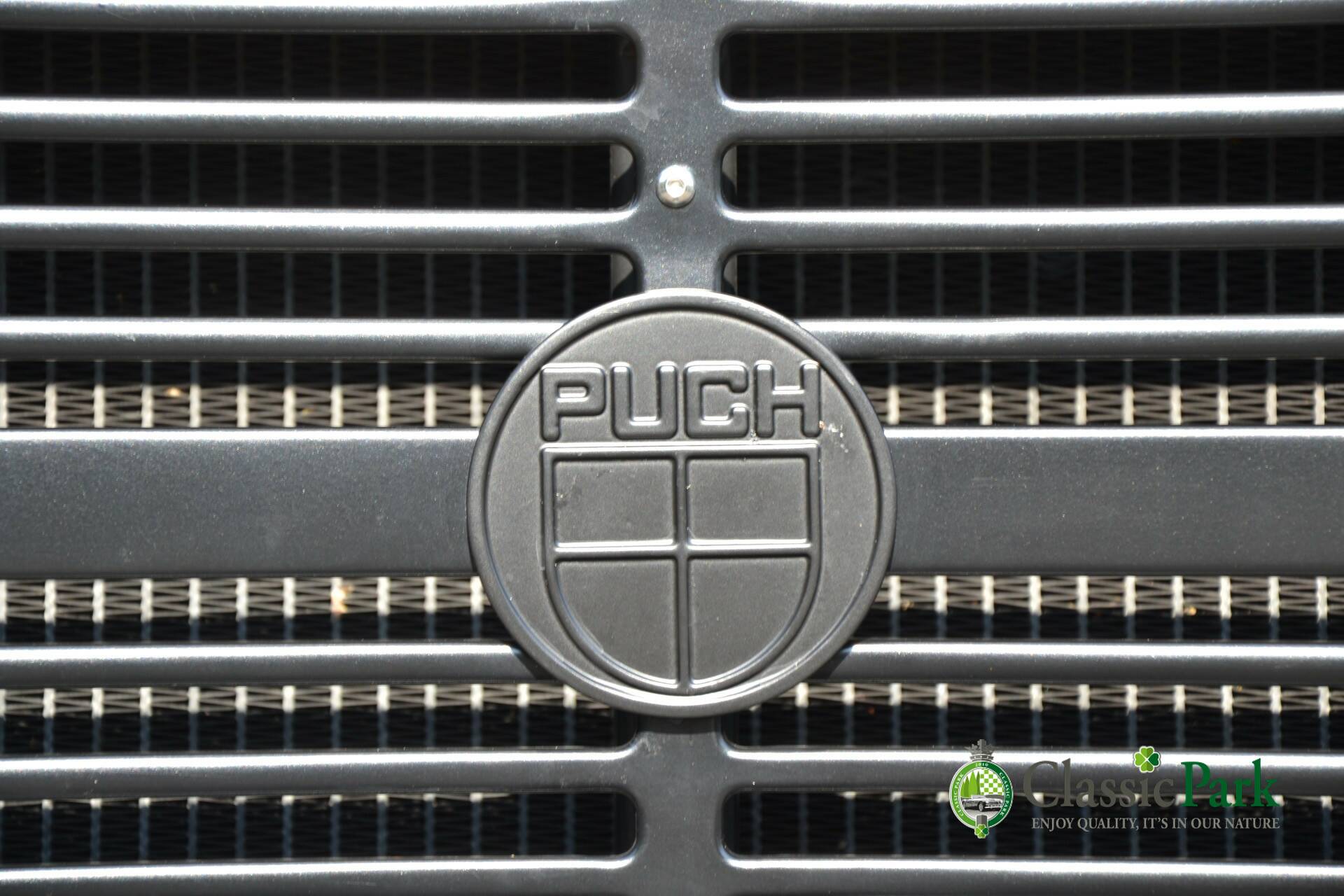 Dieser Puch 230GE verfügt über einen Radstand von 2850 mm und natürlich Allradantrieb. Angetrieben wird er von einem 2,3-Liter-Benzinmotor mit Einspritzung (bekannt als Mercedes-Benz „230“ mit Einspritzung „E“). Das Fahrzeug wurde vom österreichischen Hersteller Steyr-Daimler-Puch gebaut und im Mai 1991 für den militärischen Einsatz ausgeliefert. In den Jahren 2019 bis 2020 wurde das Fahrzeug bei Autohaus Lorinser in Waiblingen, Deutschland, einer umfangreichen Restaurierung unterzogen. Dieser Puch hatte ursprünglich nur wenige Kilometer auf dem Tacho, was typisch ist für Fahrzeuge im Dienst der Bundeswehr. Obwohl der 230GE sehr gut gewartet war, ging Lorinser dennoch rigoros an die Arbeit. Das Fahrzeug wurde komplett zerlegt und neu lackiert. Ein neues, vielseitig zu öffnendes Stoffdach wurde eingebaut, und die Sitze sowie Bänke wurden mit cognacfarbenem Leder neu bezogen. Die Bereifung wurde durch BFGoodrich All-Terrain T/A Reifen ersetzt. Der Motor erhielt sowohl eine gründliche technische Überholung als auch eine optische Aufbereitung, sodass er nun perfekt zum makellosen Gesamtbild des Fahrzeugs passt.