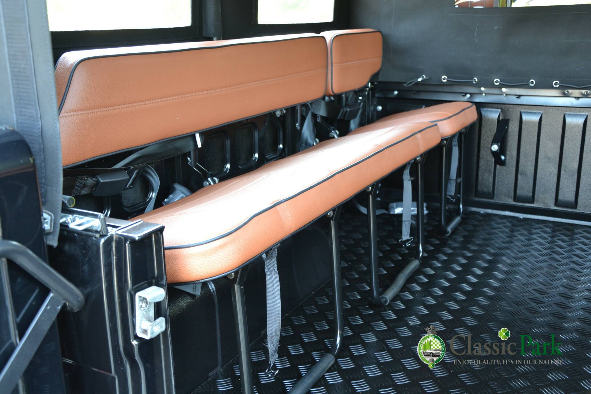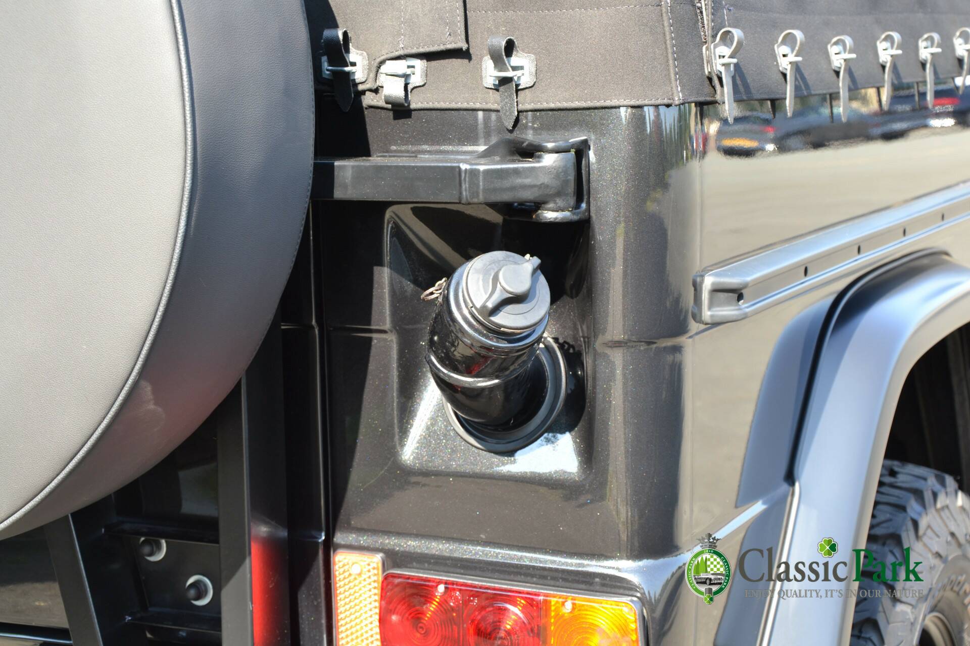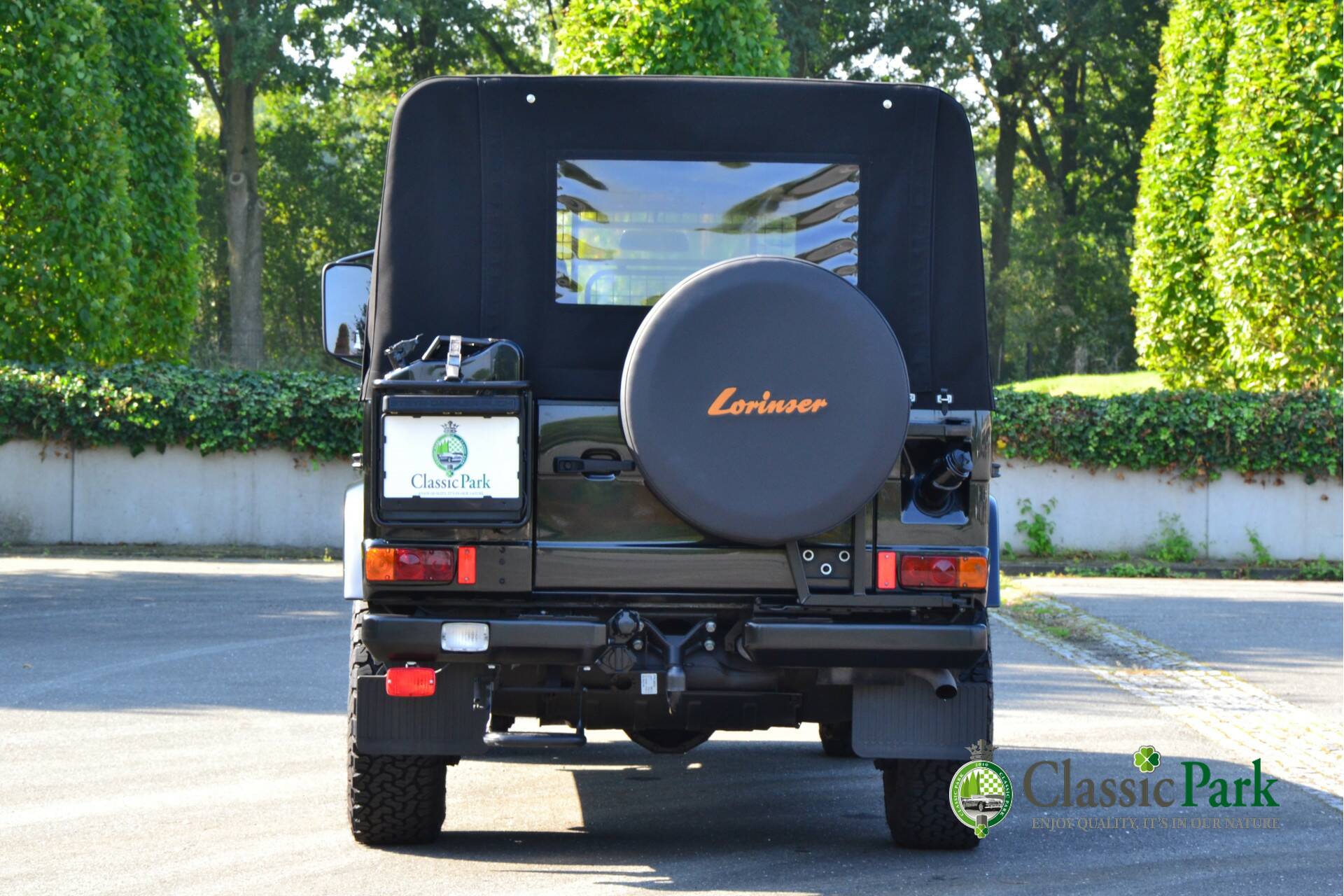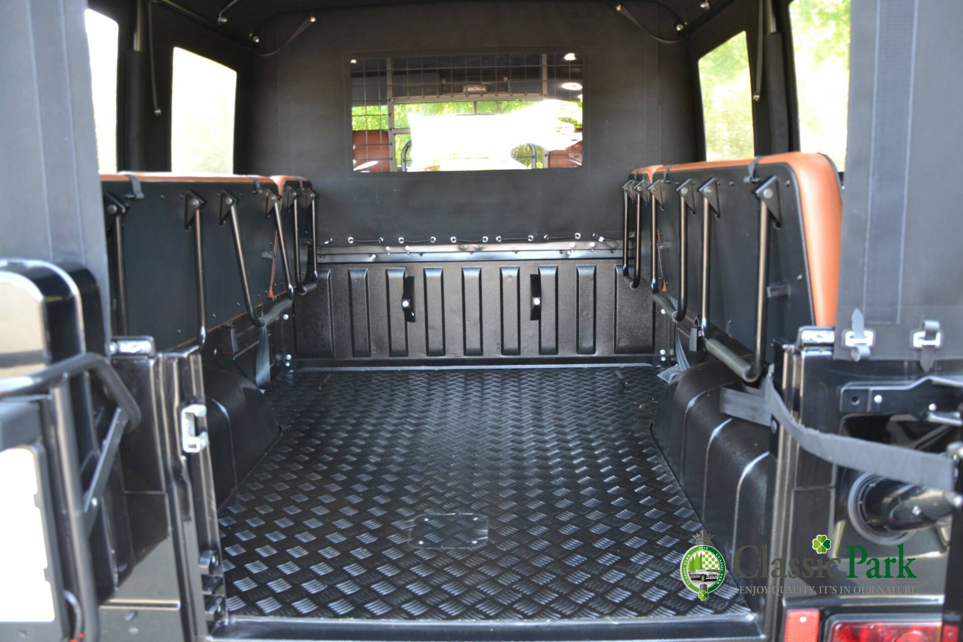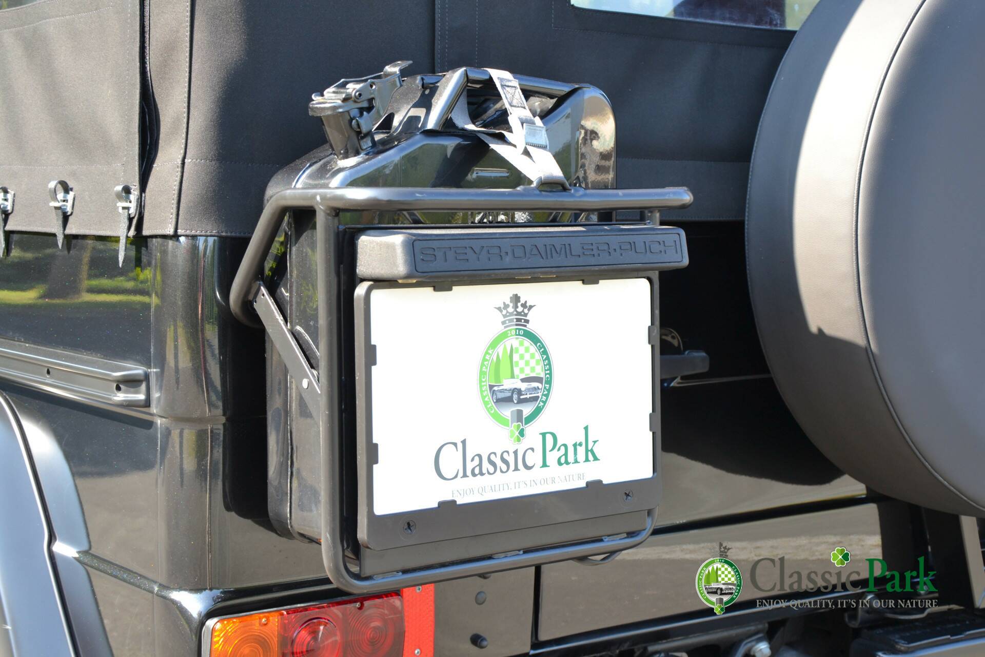 Dieser Puch 230GE verfügt über einen Radstand von 2850 mm und natürlich Allradantrieb. Angetrieben wird er von einem 2,3-Liter-Benzinmotor mit Einspritzung (bekannt als Mercedes-Benz „230“ mit Einspritzung „E“). Das Fahrzeug wurde vom österreichischen Hersteller Steyr-Daimler-Puch gebaut und im Mai 1991 für den militärischen Einsatz ausgeliefert. In den Jahren 2019 bis 2020 wurde das Fahrzeug bei Autohaus Lorinser in Waiblingen, Deutschland, einer umfangreichen Restaurierung unterzogen. Dieser Puch hatte ursprünglich nur wenige Kilometer auf dem Tacho, was typisch ist für Fahrzeuge im Dienst der Bundeswehr. Obwohl der 230GE sehr gut gewartet war, ging Lorinser dennoch rigoros an die Arbeit. Das Fahrzeug wurde komplett zerlegt und neu lackiert. Ein neues, vielseitig zu öffnendes Stoffdach wurde eingebaut, und die Sitze sowie Bänke wurden mit cognacfarbenem Leder neu bezogen. Die Bereifung wurde durch BFGoodrich All-Terrain T/A Reifen ersetzt. Der Motor erhielt sowohl eine gründliche technische Überholung als auch eine optische Aufbereitung, sodass er nun perfekt zum makellosen Gesamtbild des Fahrzeugs passt.