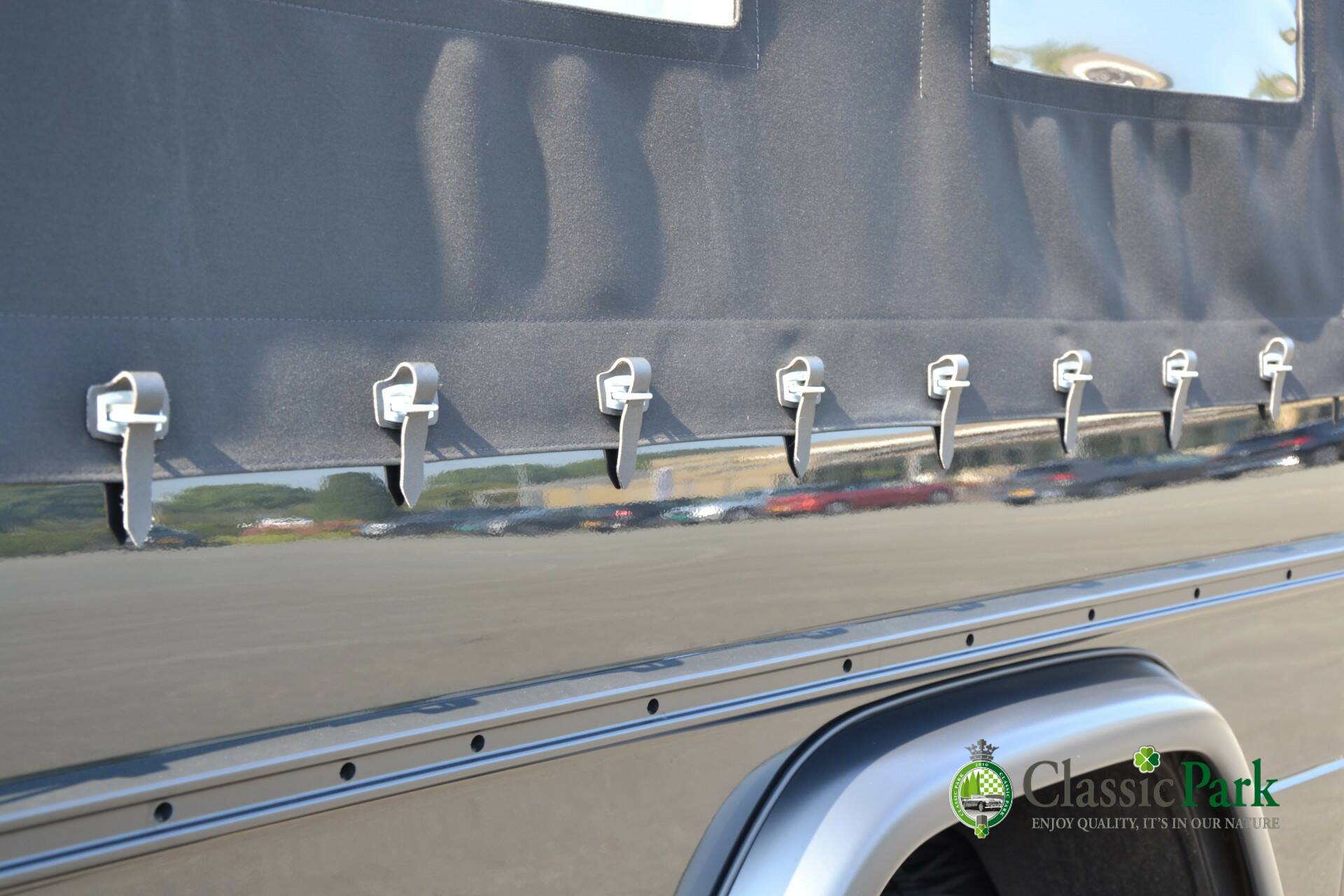Das Ergebnis ist ein umfassend überarbeitetes Geländefahrzeug mit spektakulärem Auftritt und großer Vielseitigkeit. Sperrdifferenzial, Gelände-Bereifung, eine Zugöse vorne sowie eine Anhängerkupplung hinten machen den 230GE zu einem äußerst funktionalen Offroader mit großem Ladevolumen. Gleichzeitig lässt sich durch die quer eingebauten, klappbaren Rückbänke mit Sicherheitsgurten für sechs Passagiere ein geräumiges Fahrzeug für den Personentransport schaffen. Zwischen Fahrer- und Ladeabteil ist eine halbhohe Trennwand („semi-high partition wall“) montiert.