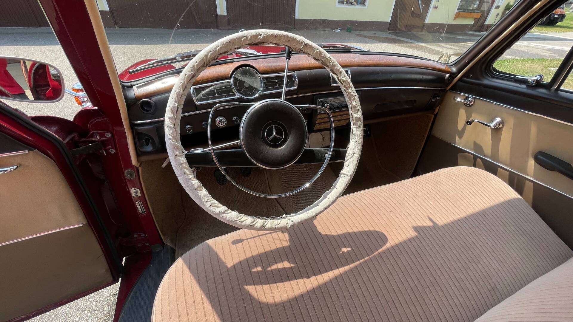 Wunderschöner Merzedes Benz 190 Db W121 Ponton, EZ 29.2.1960, wurde vom Vorbesitzer komplett neu aufgebaut, wunderschönes bordeux-rot, Innenausstattung Stoff beige, Teppich im Fußraum und Kofferraum auch in beige.
