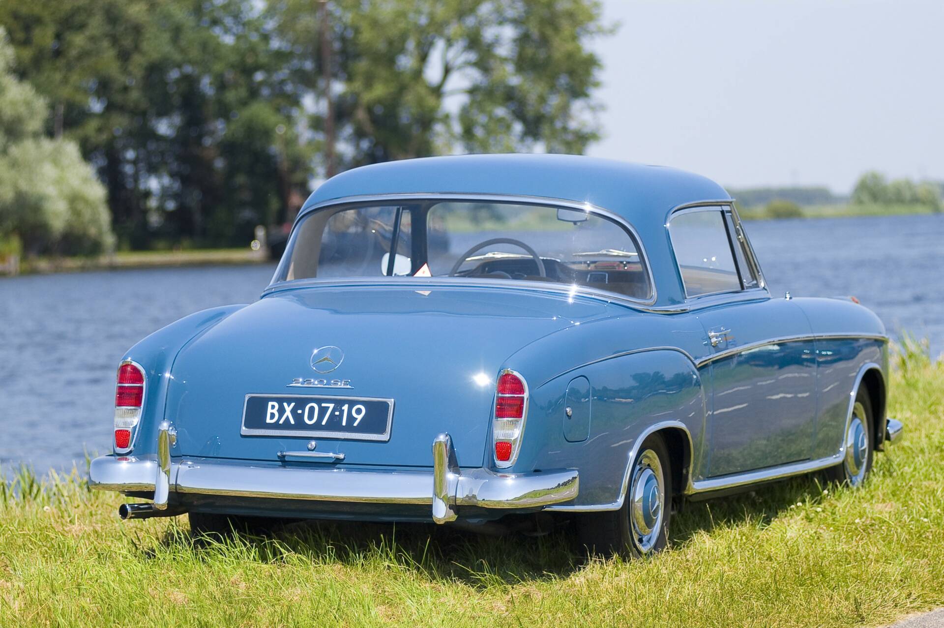Deze auto is sinds 1994 in bezit van huidige eigenaar en body-off gerestaureerd: kosten noch moeite gespaard. ‘luxe’, is het eerste woord dat in je opkomt wanneer je instapt in deze 220SE. De optimistische blauwe lak glanst vuistdiep en past helemaal bij een jaren 60 klassieker en benadrukt nog eens extra de mooie lijnen van deze Mercedes-Benz Coupé. De W128 in zijn ultieme vorm, elegant en stijlvol. De schakeling aan het stuur – toen het summum van comfort – en de volledig gesynchroniseerde vier versnellingsbak laat zich prettig schakelen, zeker met de elektrische stuurbekrachtiging van EZ Power Steering.