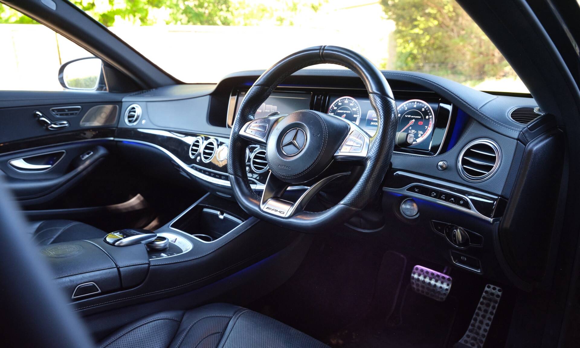 This 2015 example is finished in a timeless black exterior over a matching black leather interior, presenting a sleek and understated specification. It sits on the desirable diamond cut 19-inch AMG multi-spoke alloy wheels, which complement the car's elegant proportions while maintaining excellent ride quality. The cabin is a particular highlight, featuring ambient lighting, electrically adjustable seating and a panoramic glass roof arrangement, offering a bright and spacious environment for both driver and passengers. Further equipment includes adaptive cruise control and the highly regarded Burmeister sound system, delivering exceptional audio quality and enhancing the car's already impressive refinement. As expected of a flagship Mercedes-Benz, the level of comfort and technology on offer is extensive.
