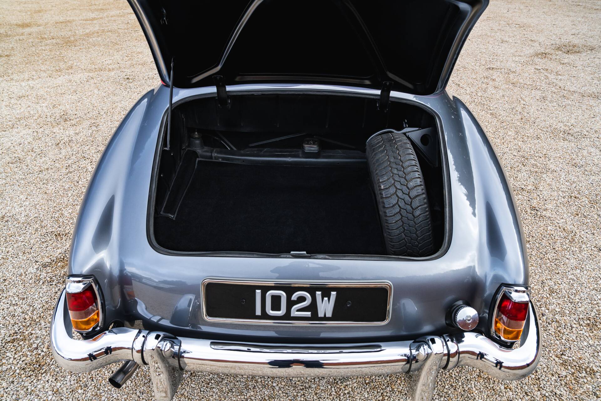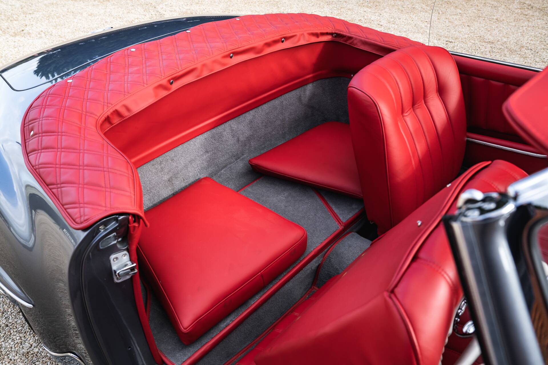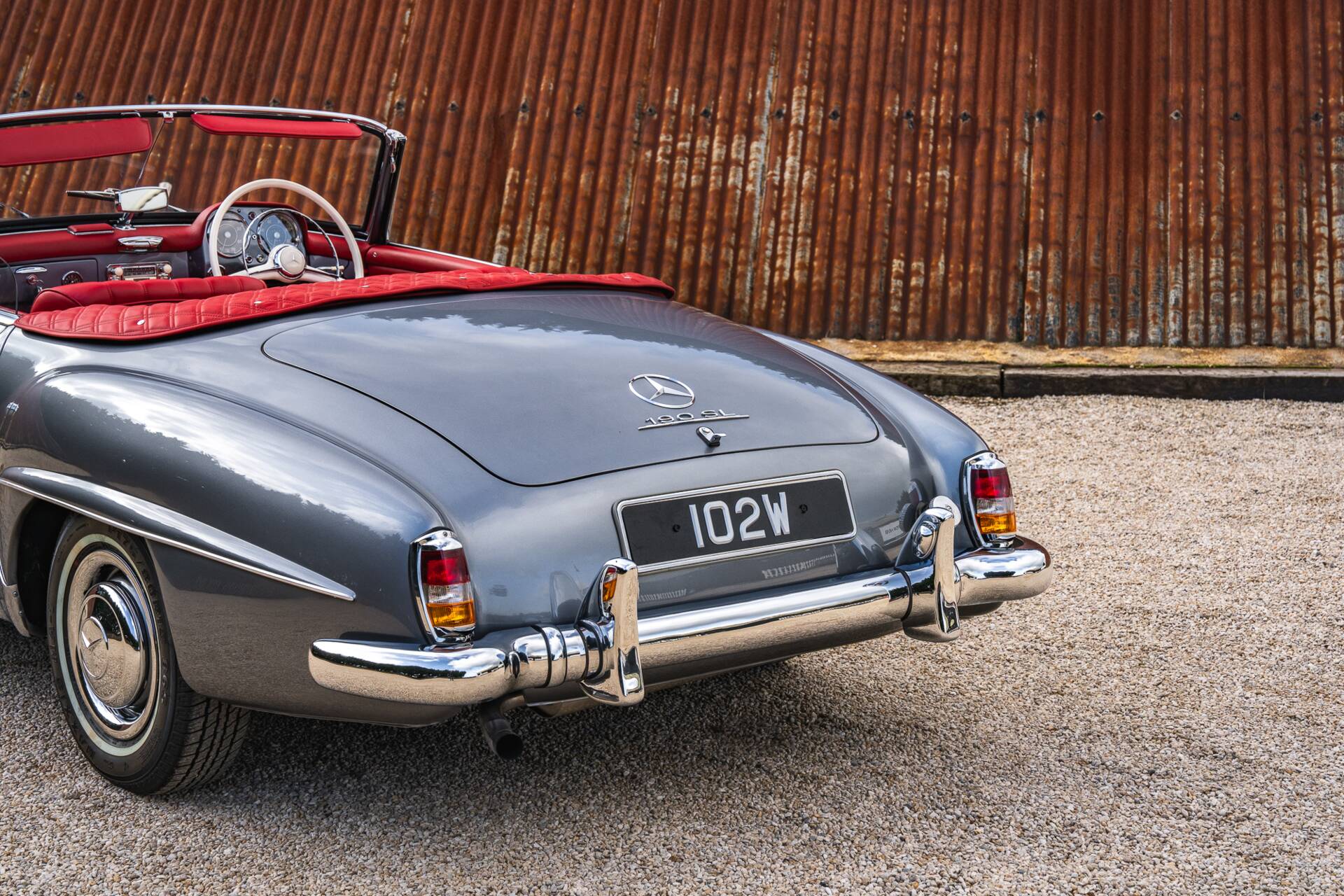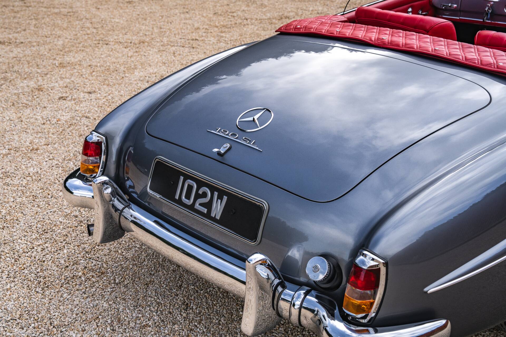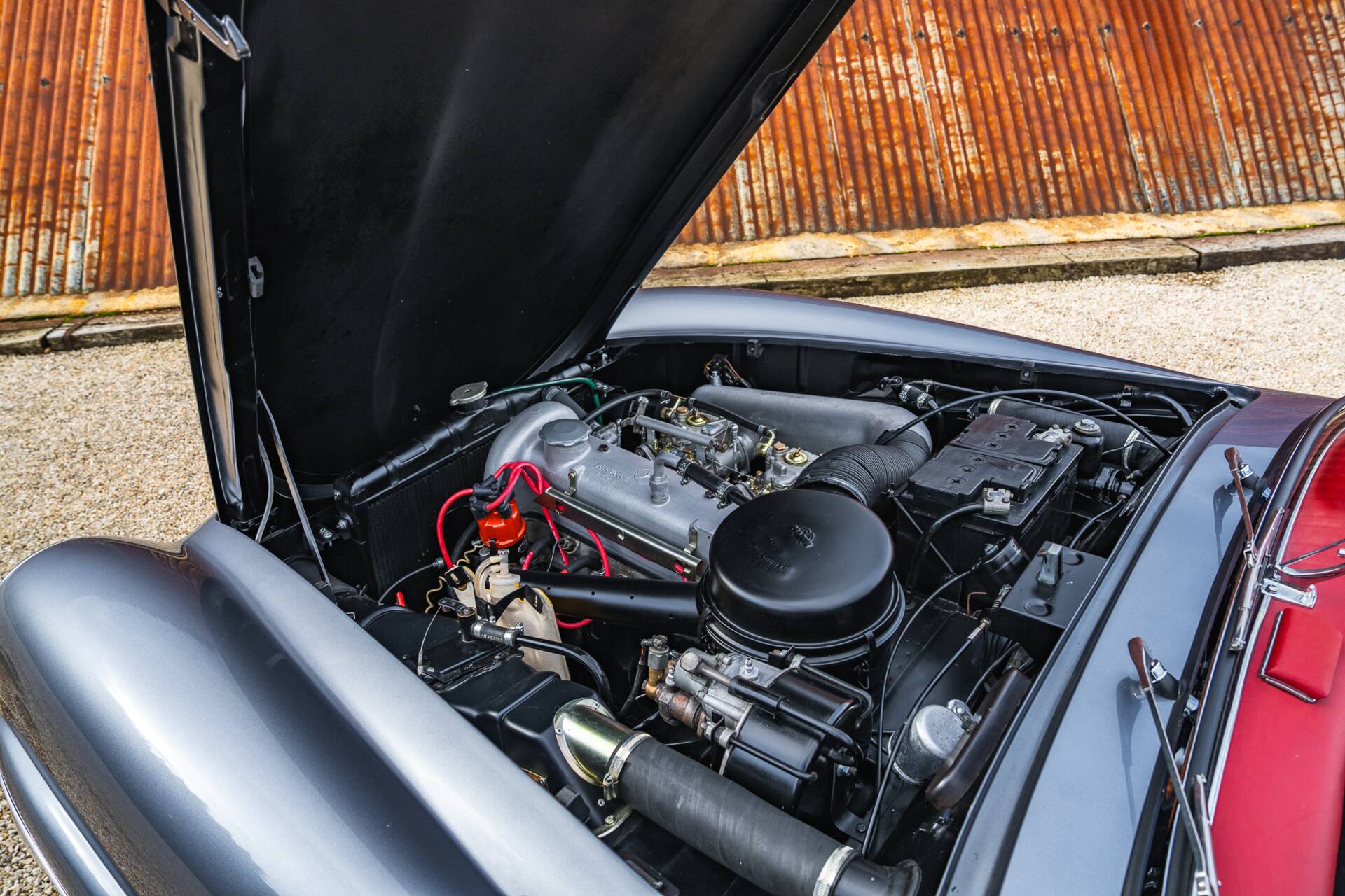 Finished in period-correct Anthracite Grey (DB190) over Oxblood Red leather (1079)