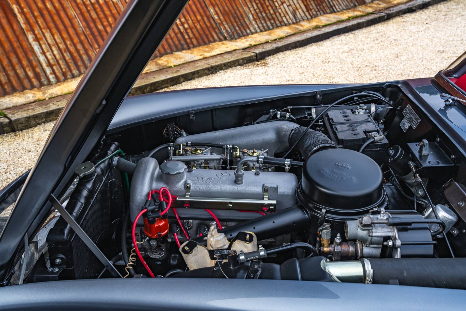 Works were carried out to the highest standards and fully recorded; the car was sympathetically finished in the factory‑correct Anthracite Grey (DB190) with Oxblood Red leather (1079), and a Becker Le Mans Bluetooth radio was fitted for period appearance with modern functionality.