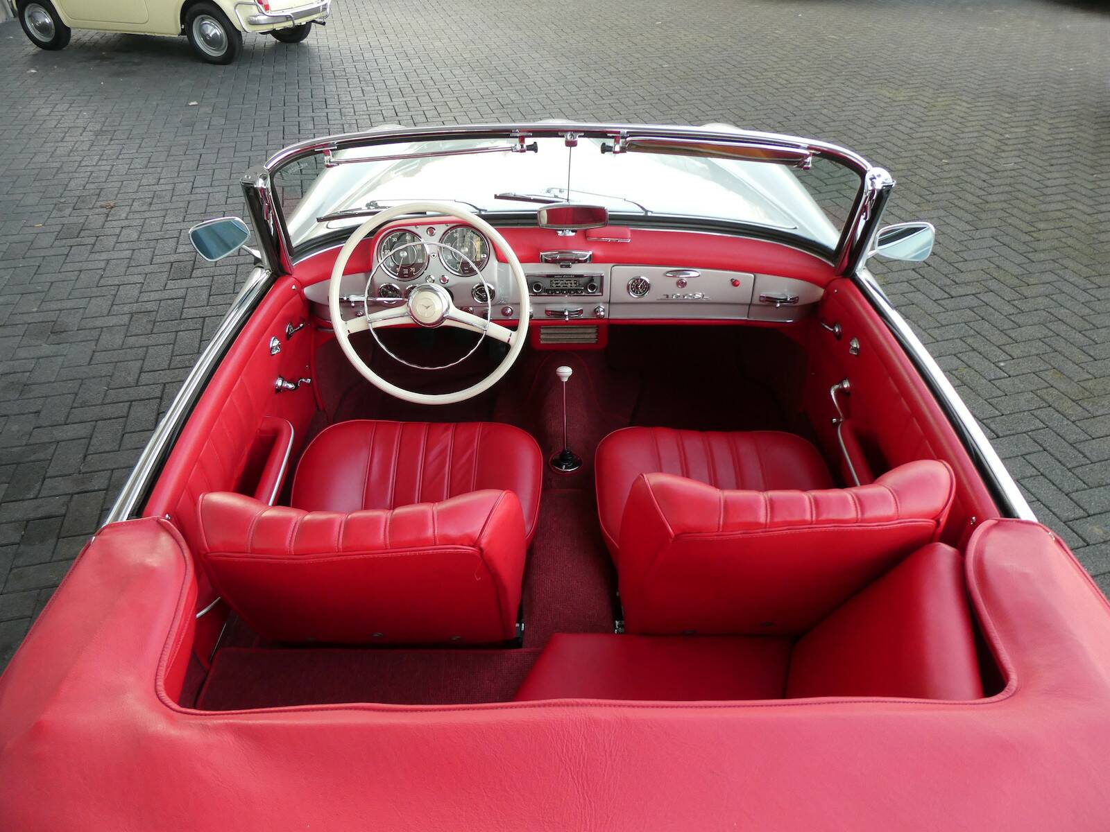 Dieser 190 SL wurde 1962 in Deutschland ausgeliefert. Das Fahrzeug erstrahlt in DB 180 silber-metallic kombiniert mit einer roten Lederinnenausstattung. 2015 wurde der 190 SL umfangreich restauriert und seitdem nur wenig bewegt.