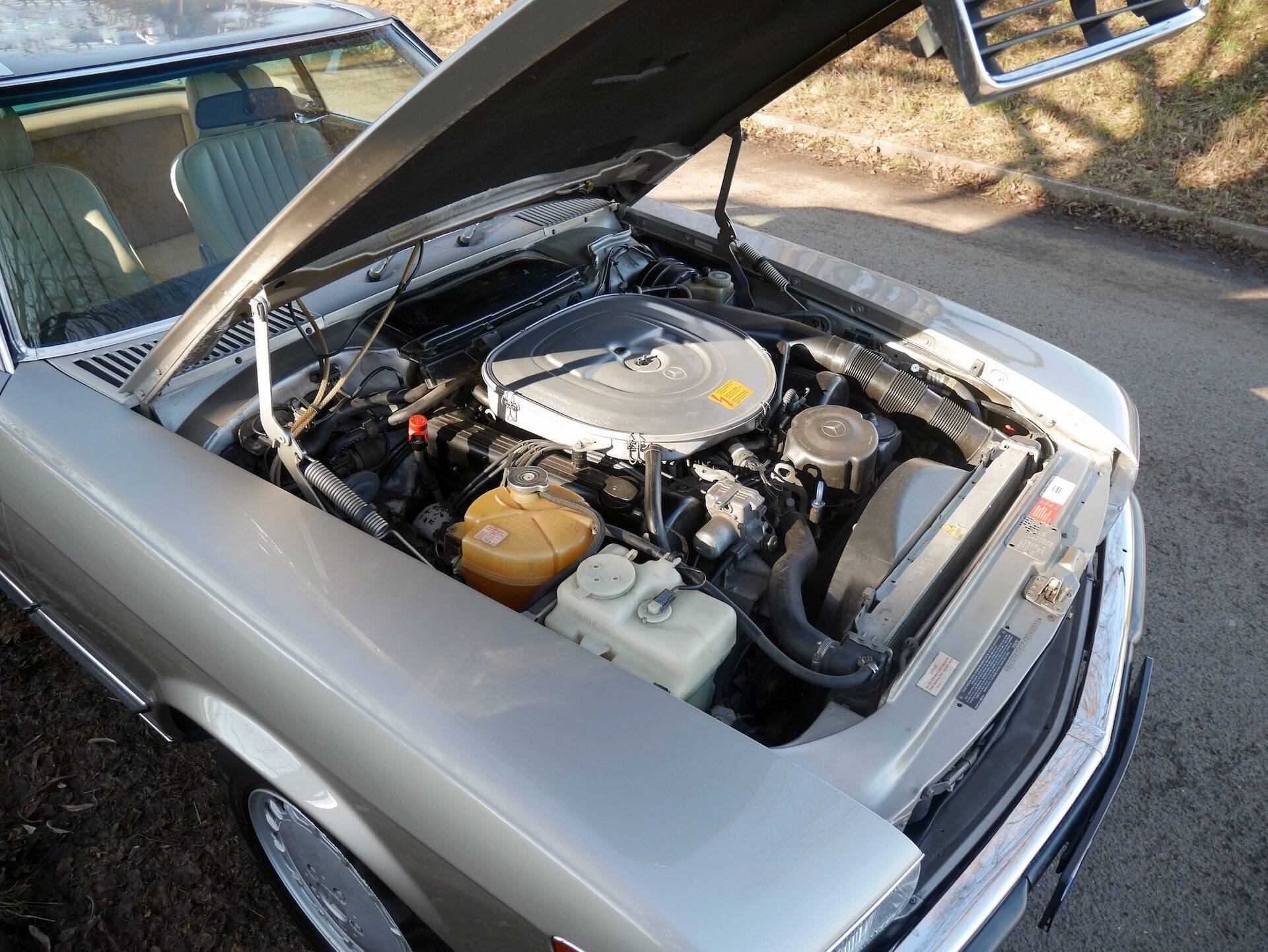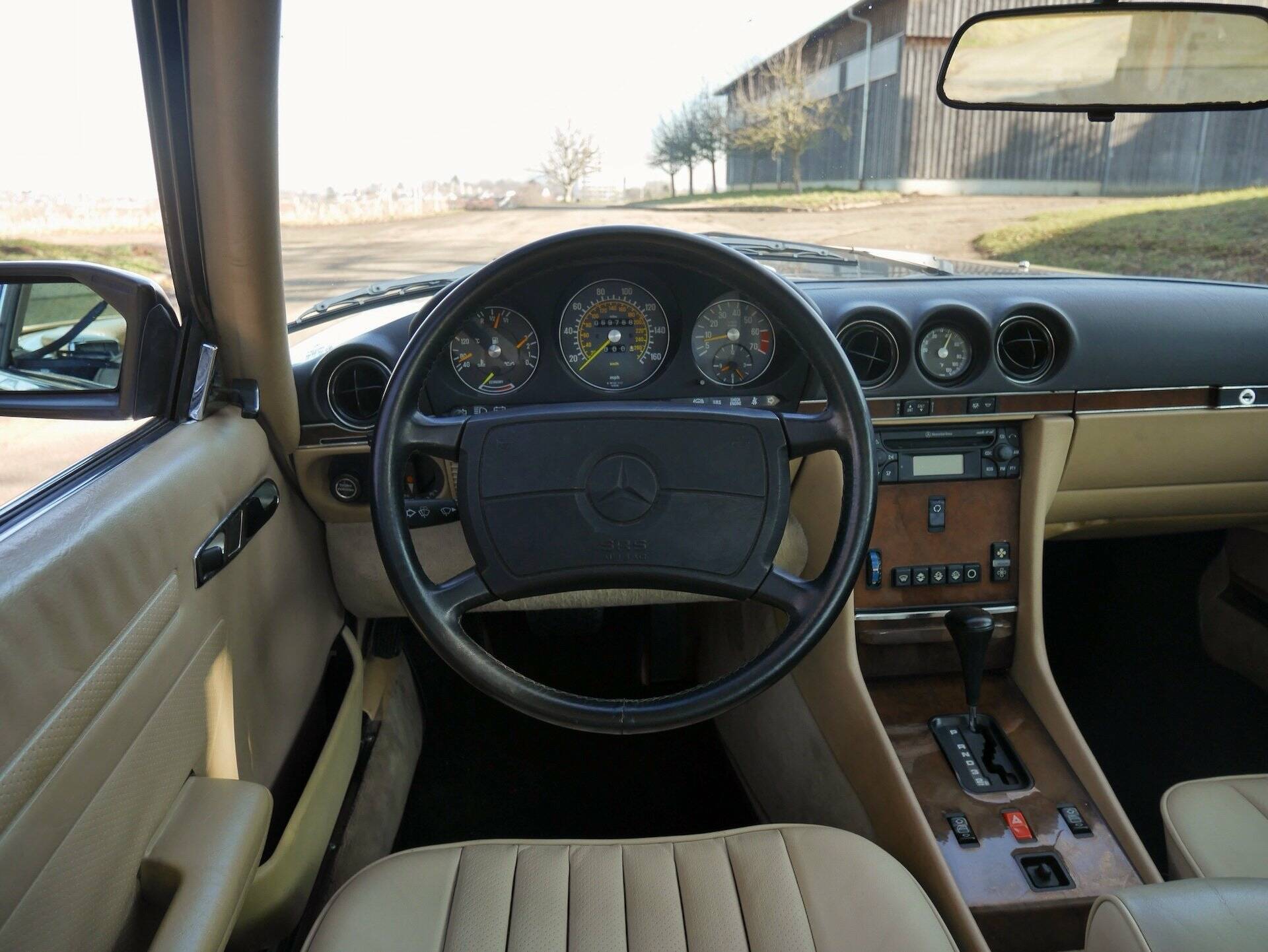 Technisch befindet sich dieser 560 SL in einem Zustand, den man ohne Übertreibung als Referenz bezeichnen darf. Der Unterboden ist vollständig rostfrei, ebenso sämtliche neuralgischen Stellen, die bei anderen Exemplaren gern als „Charakter“ verkauft werden. Hier gibt es keinen Diskussionsbedarf: Die Substanz ist kerngesund, Jahreswagen-Niveau inklusive. Die lückenlose Halter- und Wartungshistorie liest sich wie ein ordentlich geführtes Haushaltsbuch – beruhigend und vertrauensbildend.