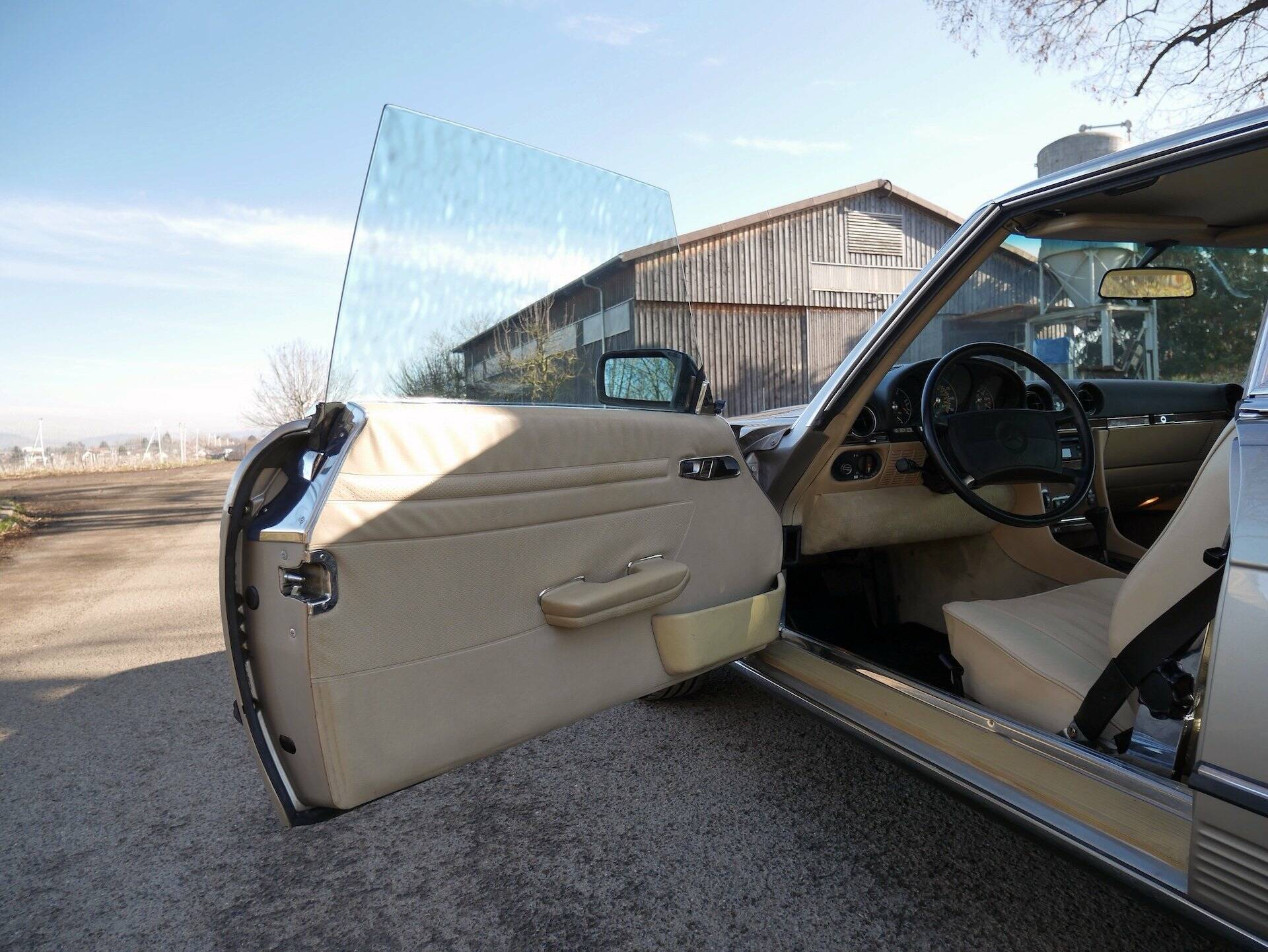 Zur Ausstattung gehört alles, was man 1989 mit gutem Gewissen ankreuzen durfte: Klimatisierungsautomatik, Fahrer-Airbag, ABS, Tempomat, Colorverglasung und weitere sinnvolle Extras, die den SL nicht beschweren, sondern kultivieren. Nichts wirkt nachgerüstet, nichts überambitioniert – so, wie Mercedes es gedacht hat.