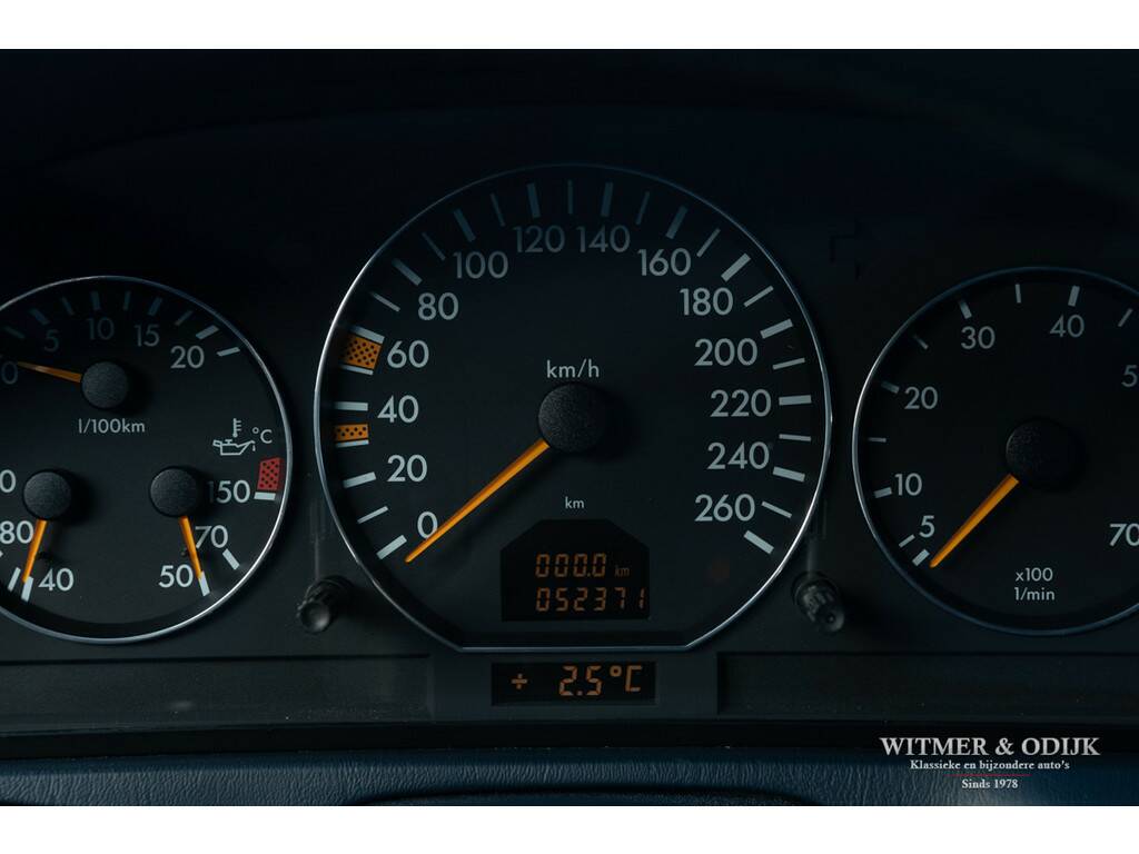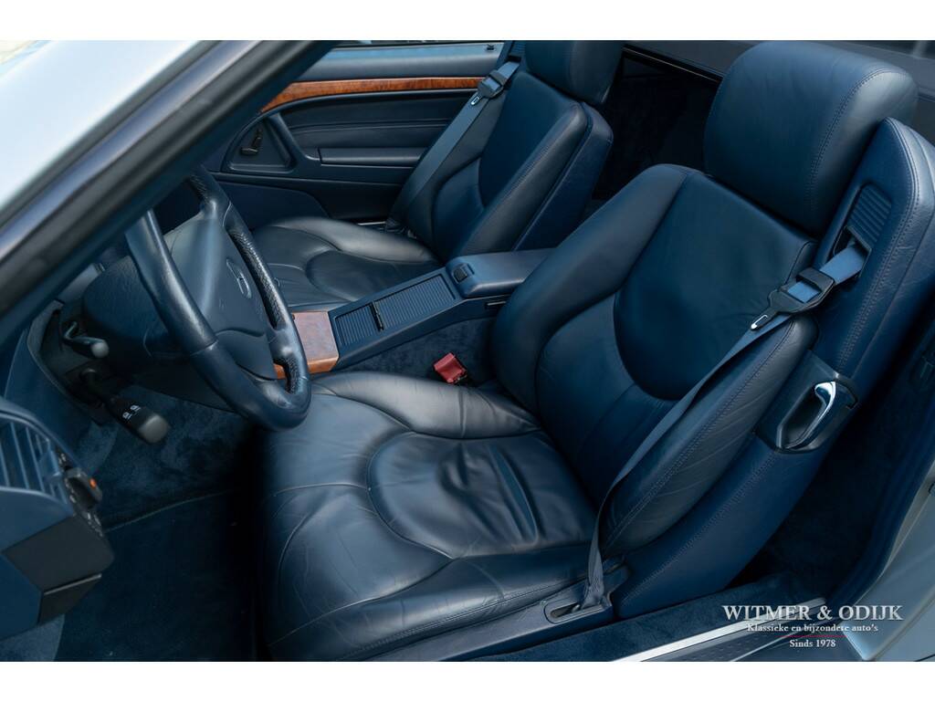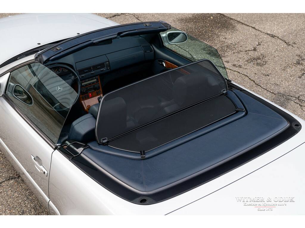 Mercedes liefhebbers weten dat de 129 serie van Mercedes van een bijna ongeëvenaarde bouwkwaliteit is. Nog niet voorzien van een grote hoeveelheid kwetsbare computers, uitgerust met knopjes die je voelt en niet binnen een paar maanden kaal zijn, voorzien van een degelijk en klassiek ogend cabriodak van stof wat niet kraakt, piept of ruist kortom tot in detail valt de degelijkheid en betrouwbaarheid van deze SL serie op. De 129 serie is over een periode van dertien jaar in drie series gebouwd, de laatste en uiteraard beste serie werd gepresenteerd in 1997 om in 2001 vervangen te worden door de R230. Eenvoudig te herkennen aan de zilveren ringen rondom de klokken in het dashboard. Hoewel de typeaanduiding staat voor Sport und Leicht is een SL zeker geen lichtvoetige sportwagen, toch wil de echte liefhebber natuurlijk zelf schakelen. Eind jaren negentig moest je daar al een flinke portie eigenwijzigheid voor mee nemen, menig aspirant koper werd door een verkoper omgepraat. 'Denk aan uw restwaarde', klonk het dan door de showroom. Slechts enkele honderden kopers hielden voet bij stuk, misschien wel met de visie dat in 2022 een handgeschakelde 129SL een gezochte auto zou zijn. In totaal werden slechts 1704 280SL's gebouwd van de laatste serie, op zich al een zeer laag productie aantal. Nu klinkt het door ónze showroom, goed voor de restwaarde! Zeker in het geval van deze bijzonder fraaie 280SL met een aantrekkelijk lage kilometerstand, zonder noemenswaardige gebruikssporen, uiteraard schadevrij en rijdend als was ze nieuw. Een echte 'Silberpfeil' met dito hardtop en fraai combinerende softtop in donkerblauw met dito interieur. Het interieur kent eveneens nauwelijks signalen van gebruik en bijvoorbeeld de kwetsbare bumpers en lichtmetalen velgen zijn geheel onbeschadigd. De auto is o.a. voorzien van automatische climat control, cruise control, airbag's, originele MB radio, windscherm, traction control en minder belangrijke opties. Vermeldenswaardig is nog wel de originele hardtop die u meegeleverd krijgt. Rijklaar en aantrekkelijk geprijsd, met de winter voor de deur, bij ons in de showroom. Straks schijnt de zon weer, leuker is dan een stuk kostbaarder.