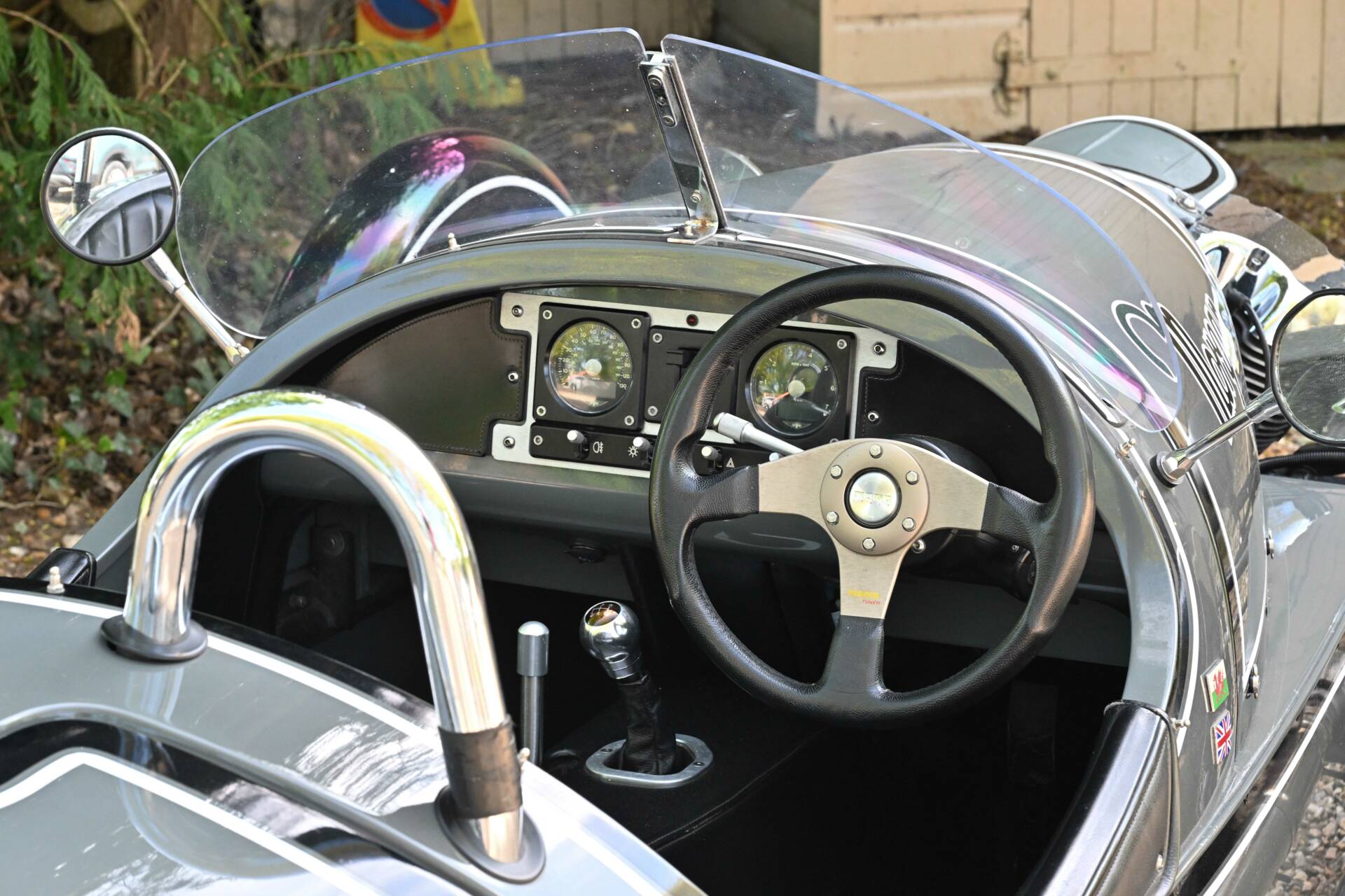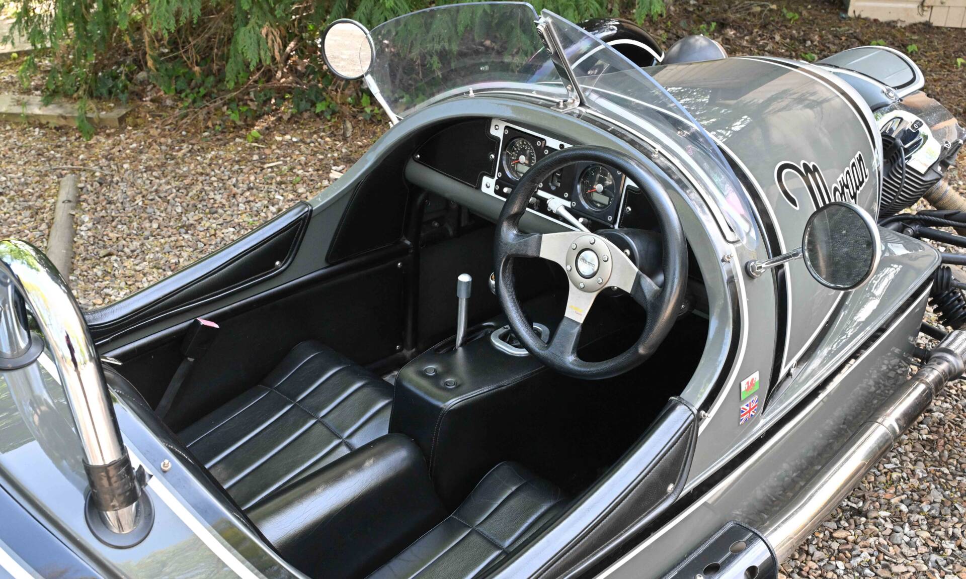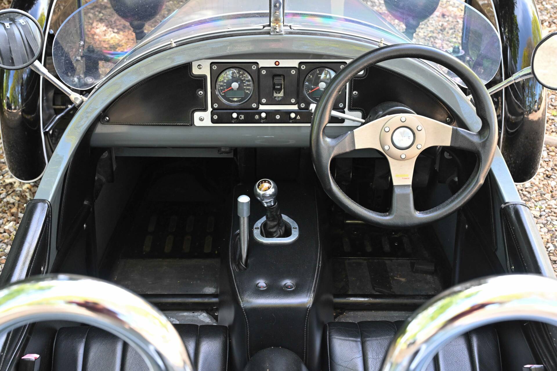 This 2014 example was acquired by our vendor in 2021 and has been used sparingly in summer months since then. The matte-grey exterior presents well, with black and white detailing throughout, recalling luxury saloon cars of the early 20th century. The leather seats are in good condition, as is the Momo steering wheel, leather transmission tunnel, and chromework. There are minor signs of wear on the high-traffic areas of the car (sills, floorpans for example). Showing fewer than 20,000 miles on the clock, there are plenty more to be driven, whether down country lanes or your favourite local pub. Offered with a current MoT test certificate and two new front tyres, this 3-Wheeler is ready and raring to go. Consigned by Charlie McCreery
