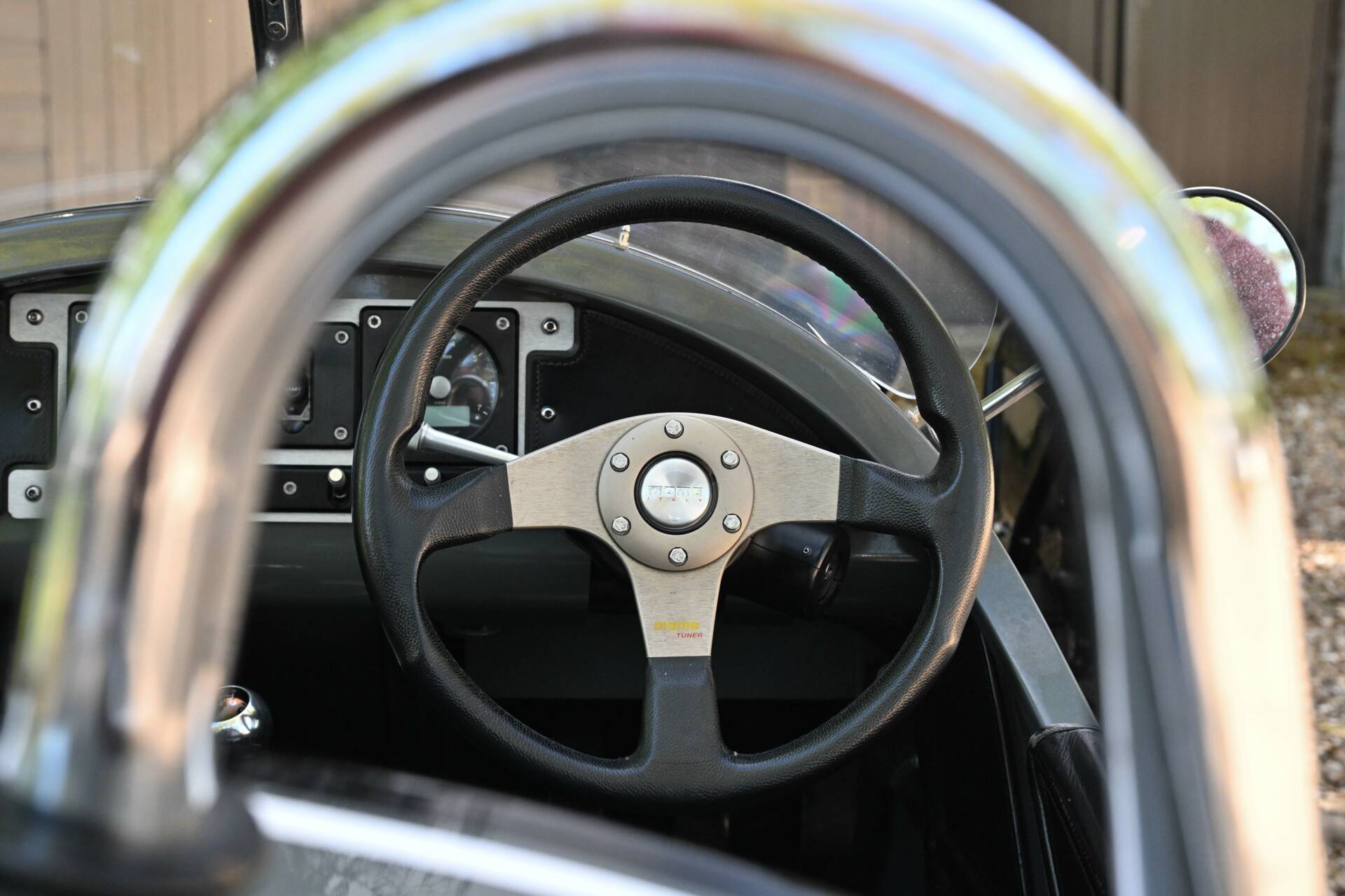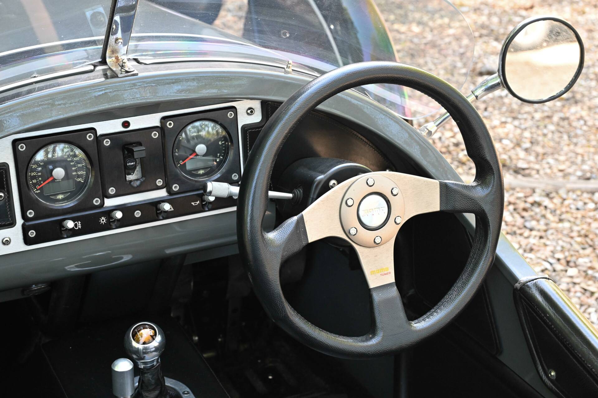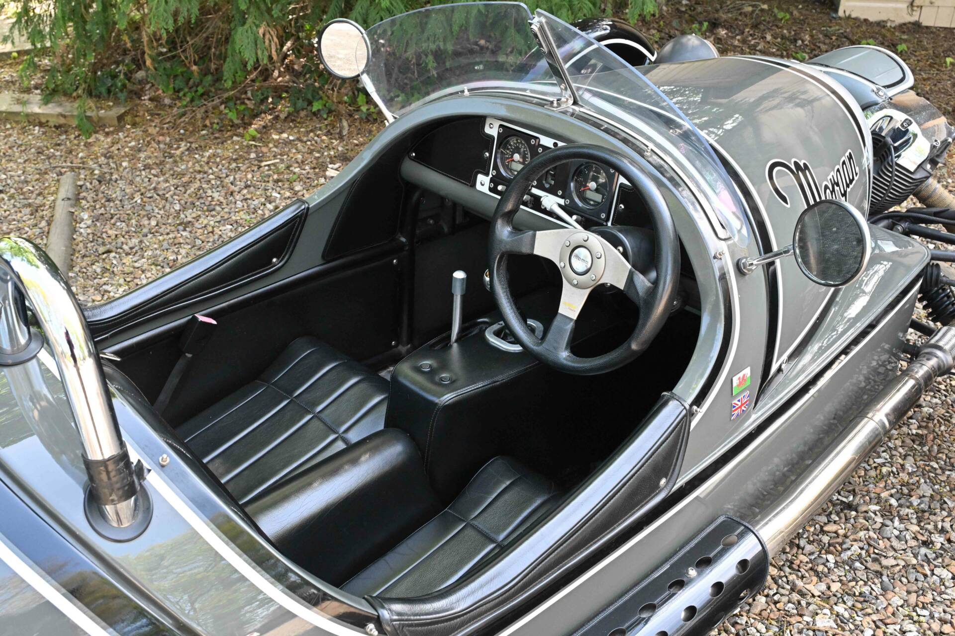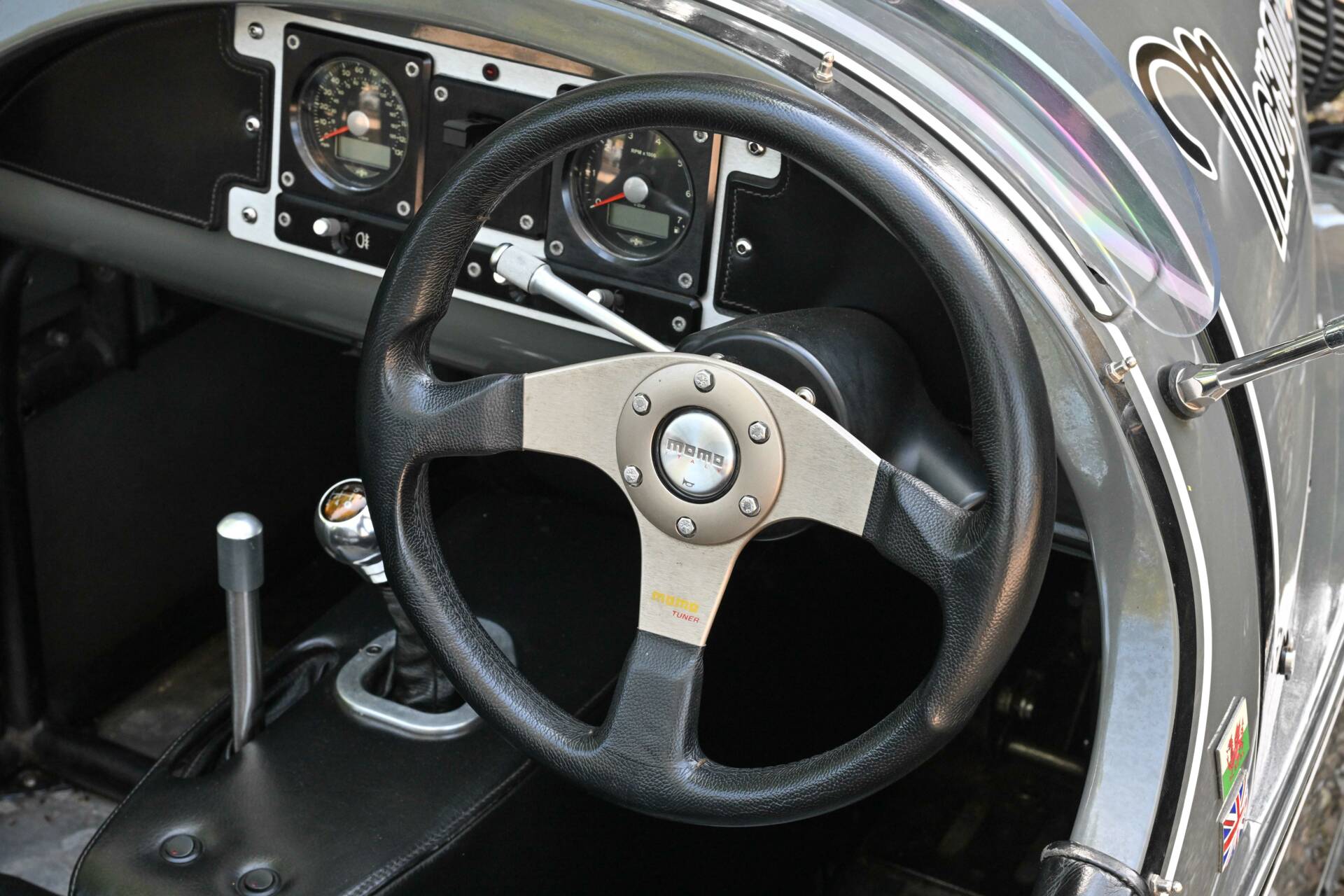 This 2014 example was acquired by our vendor in 2021 and has been used sparingly in summer months since then. The matte-grey exterior presents well, with black and white detailing throughout, recalling luxury saloon cars of the early 20th century. The leather seats are in good condition, as is the Momo steering wheel, leather transmission tunnel, and chromework. There are minor signs of wear on the high-traffic areas of the car (sills, floorpans for example). Showing fewer than 20,000 miles on the clock, there are plenty more to be driven, whether down country lanes or your favourite local pub. Offered with a current MoT test certificate and two new front tyres, this 3-Wheeler is ready and raring to go. Consigned by Charlie McCreery