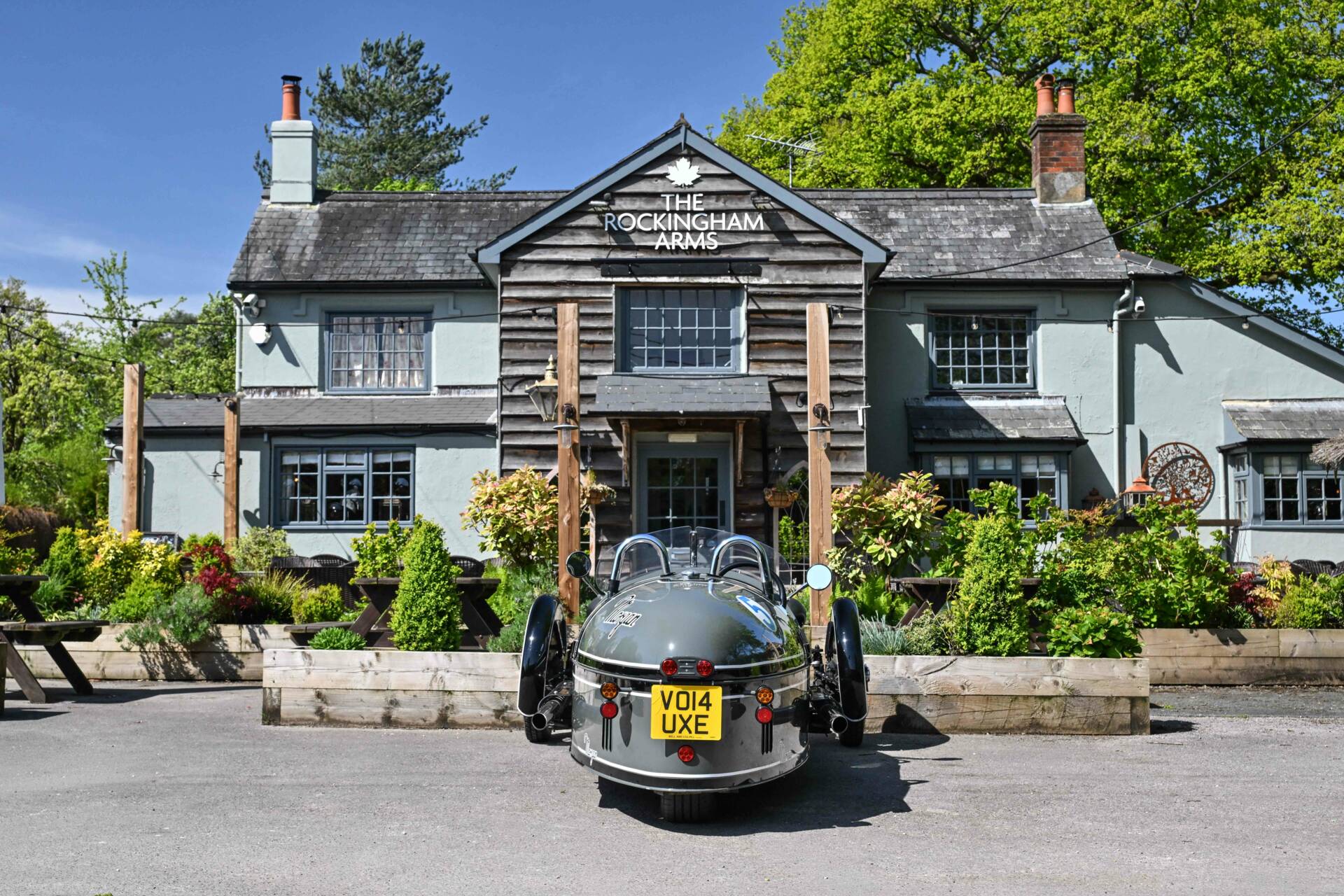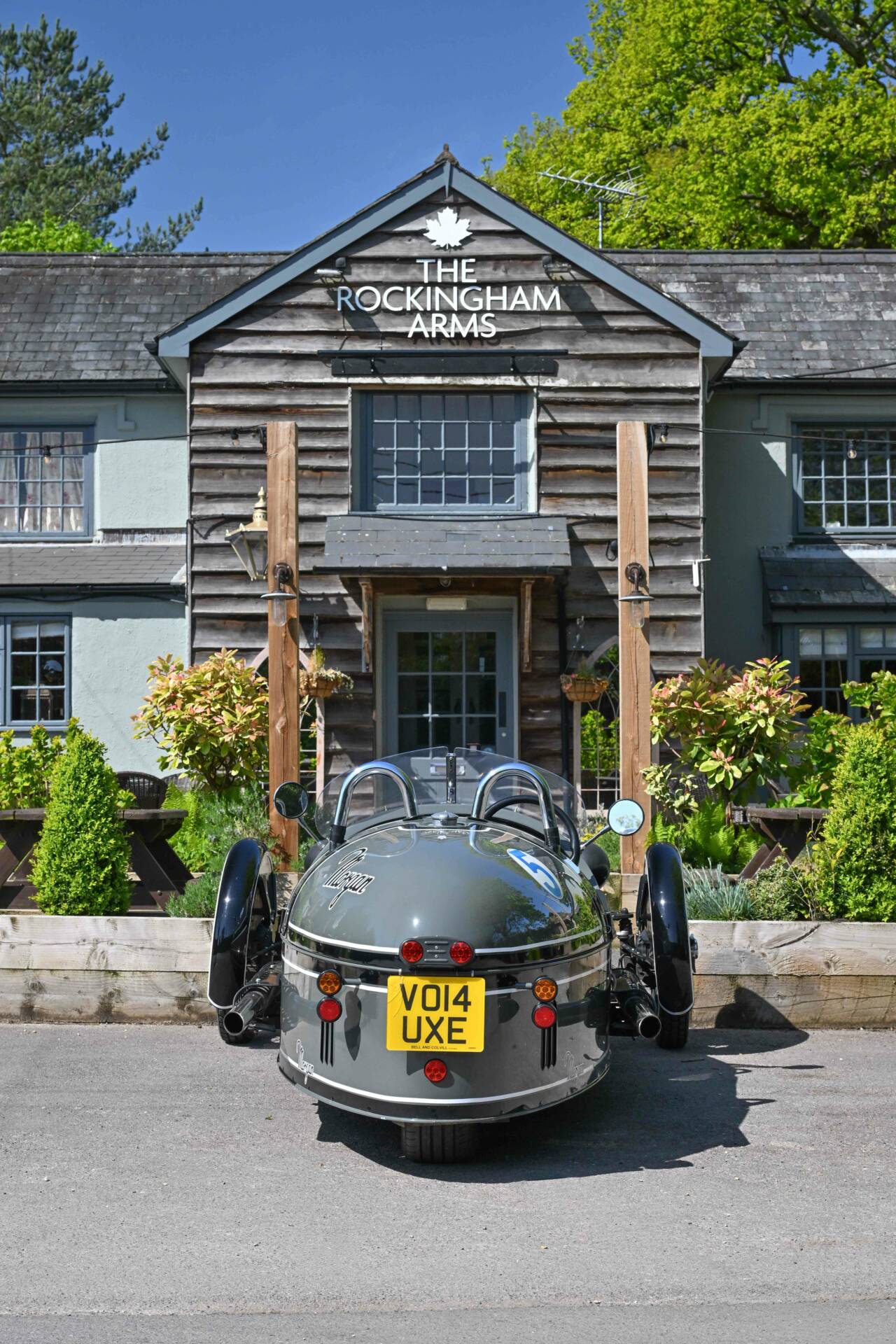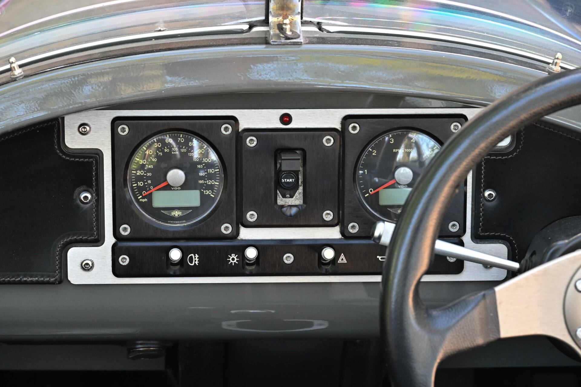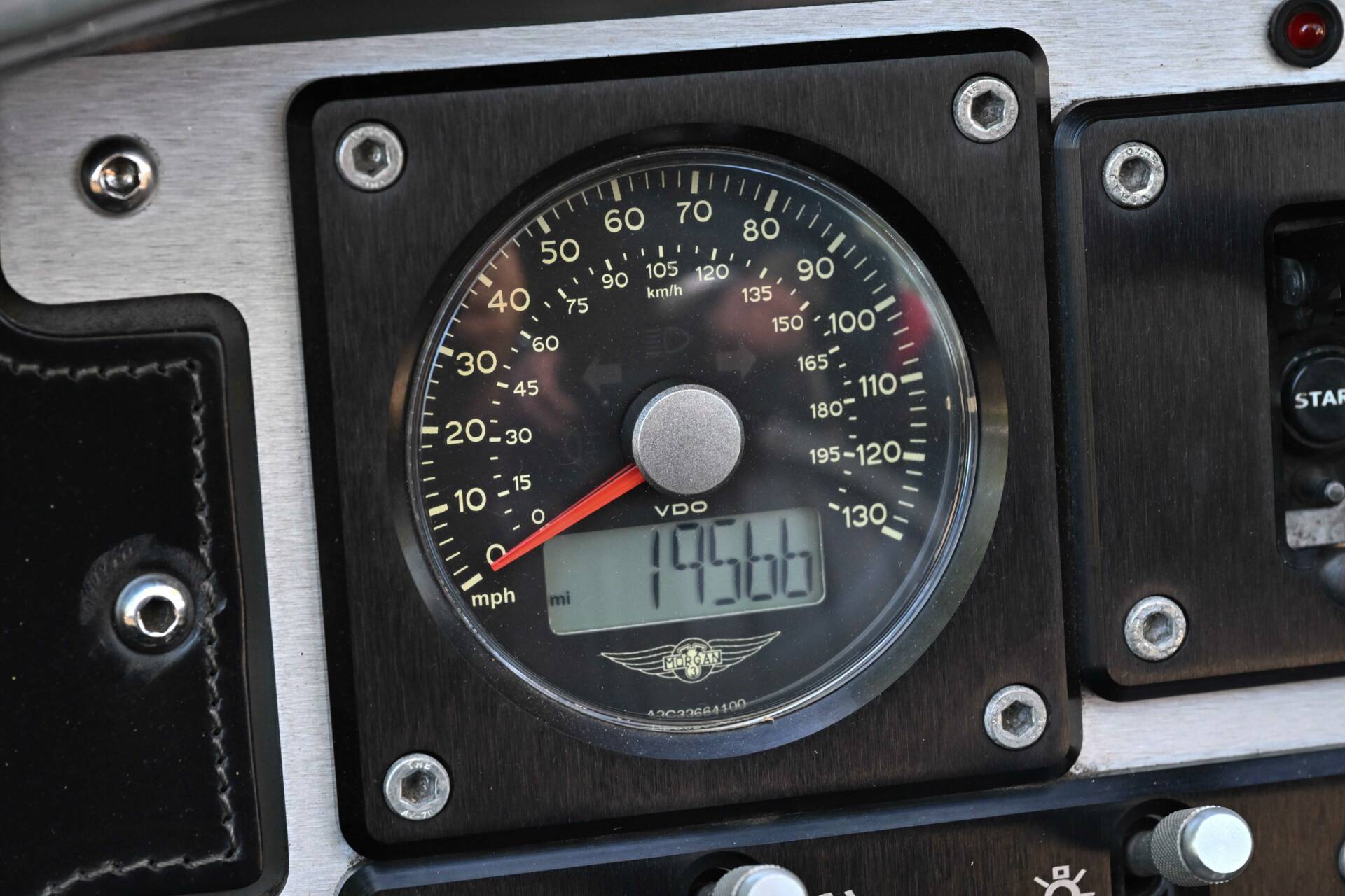 The 3-Wheeler's purposeful front end is dominated by its S&V-twin engine, complemented by the chrome exhaust pipes which exit directly from each cylinder. Producing around 83bhp, this plucky powerplant propels the sub-600kg Morgan to 120mph, and to 60mph in under five seconds. The aircraft cues are continued in the cockpit, with the black surrounds of the instruments and by the chunky toggle-switches.
