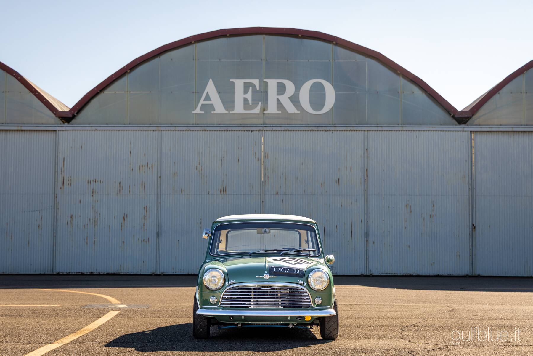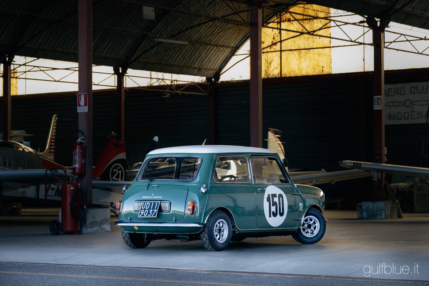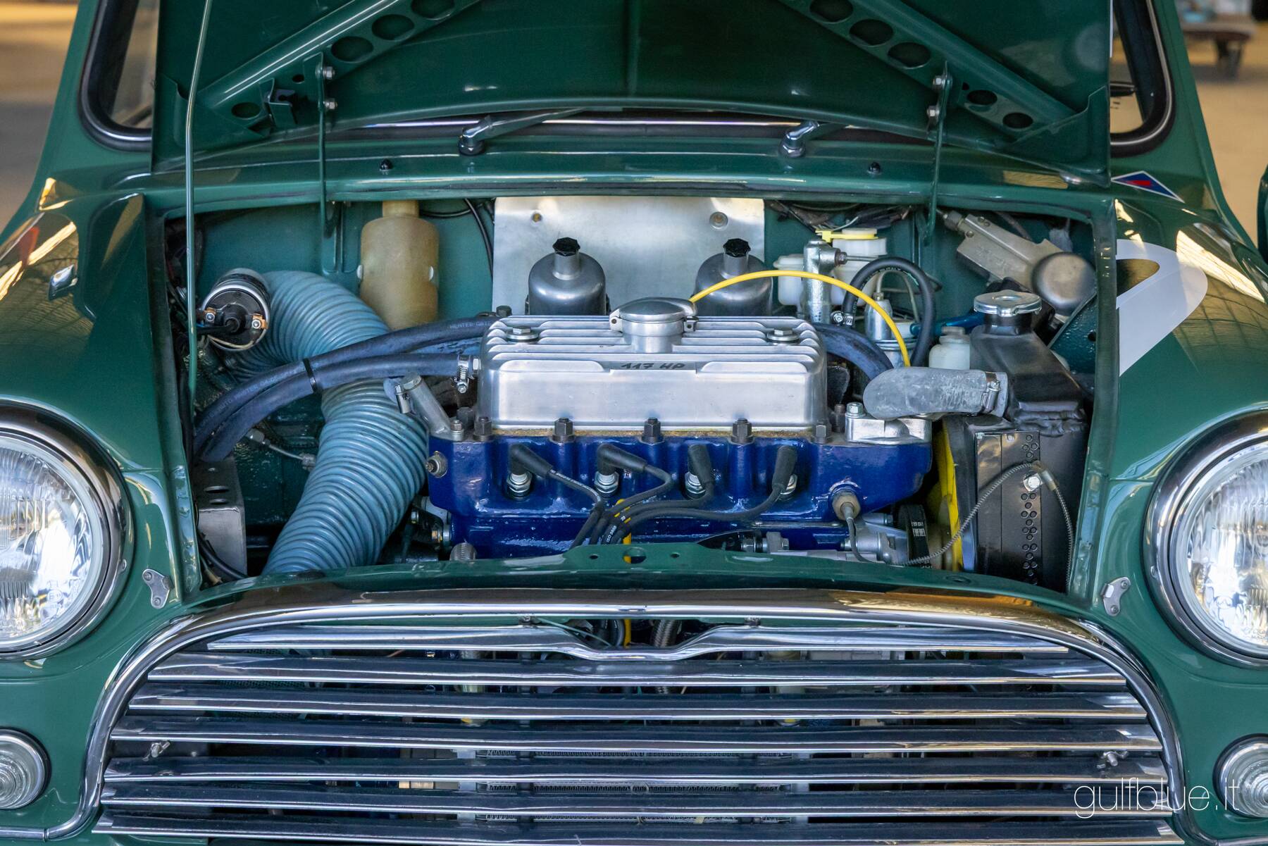 It is not the usual Mini: it is one of the rare Morris Mini Cooper S, sold new in Italy in 1965, precisely in Udine, which has raced both as a modern and as a historic car, with important results. It still appears in its original configuration, green with a white roof and grey-green interiors.