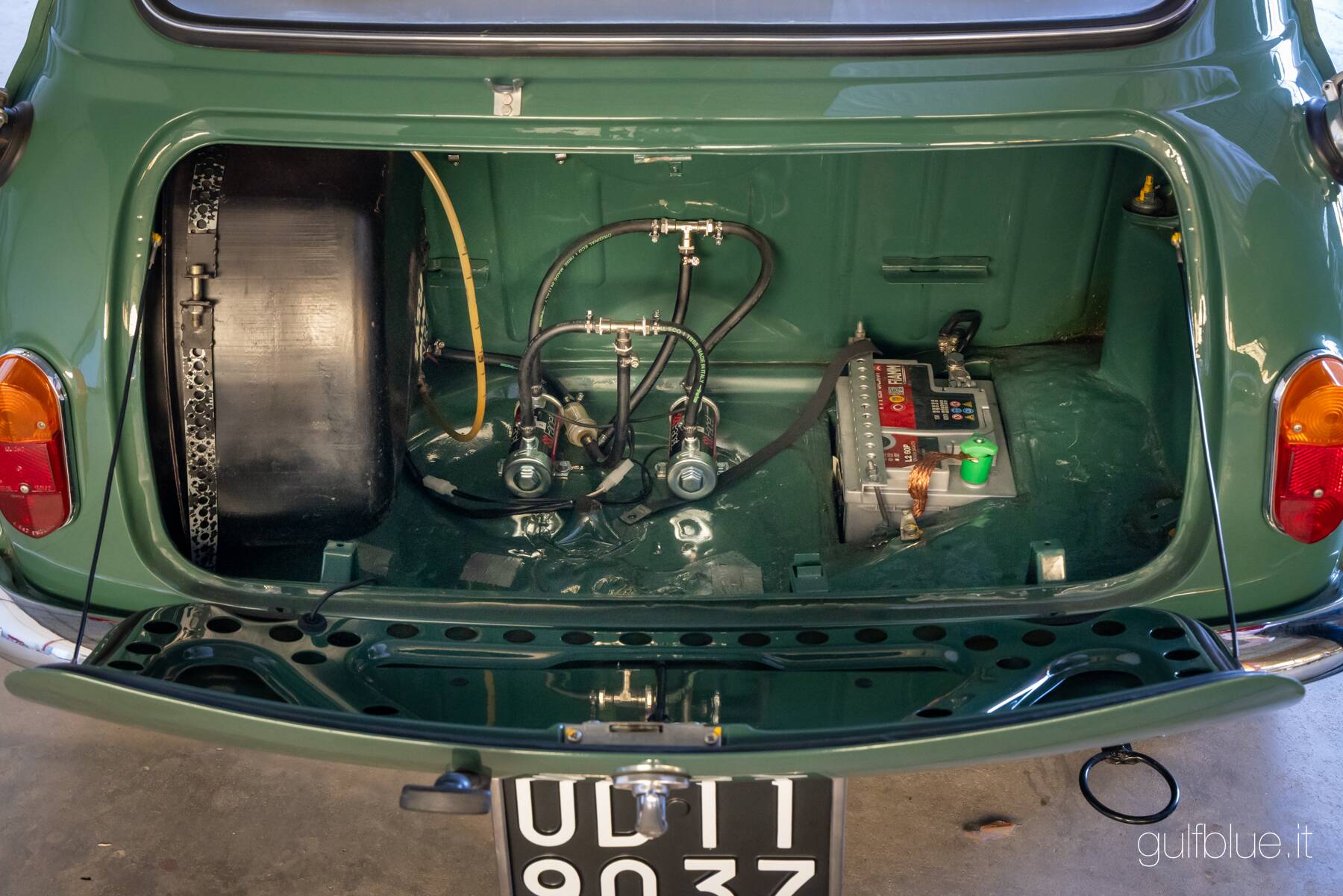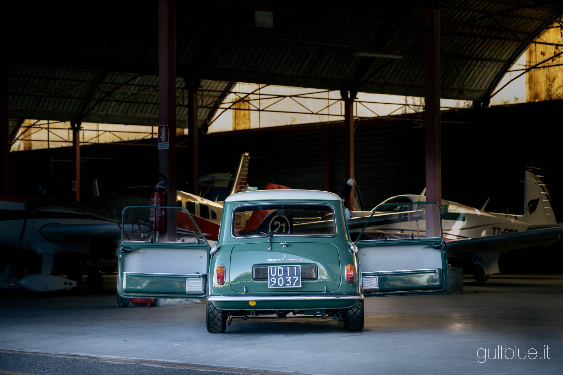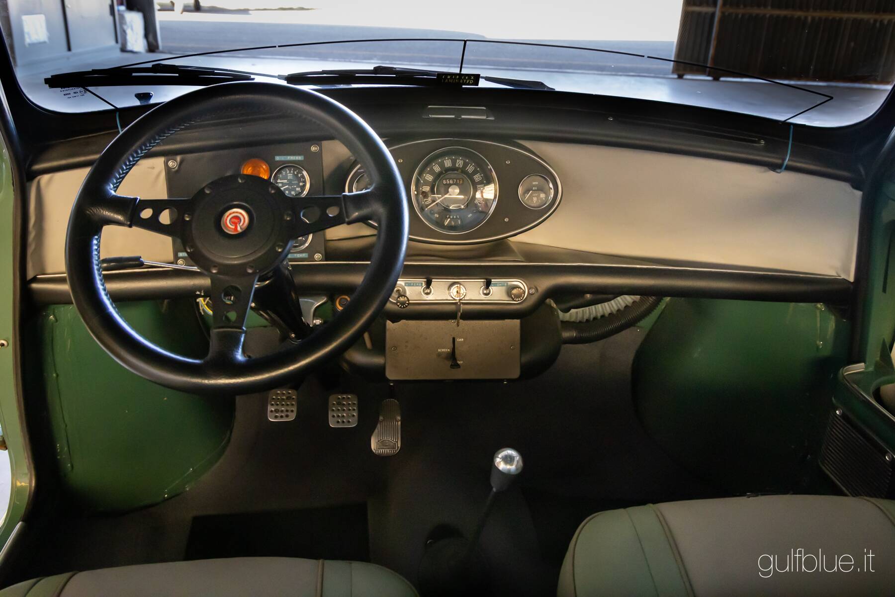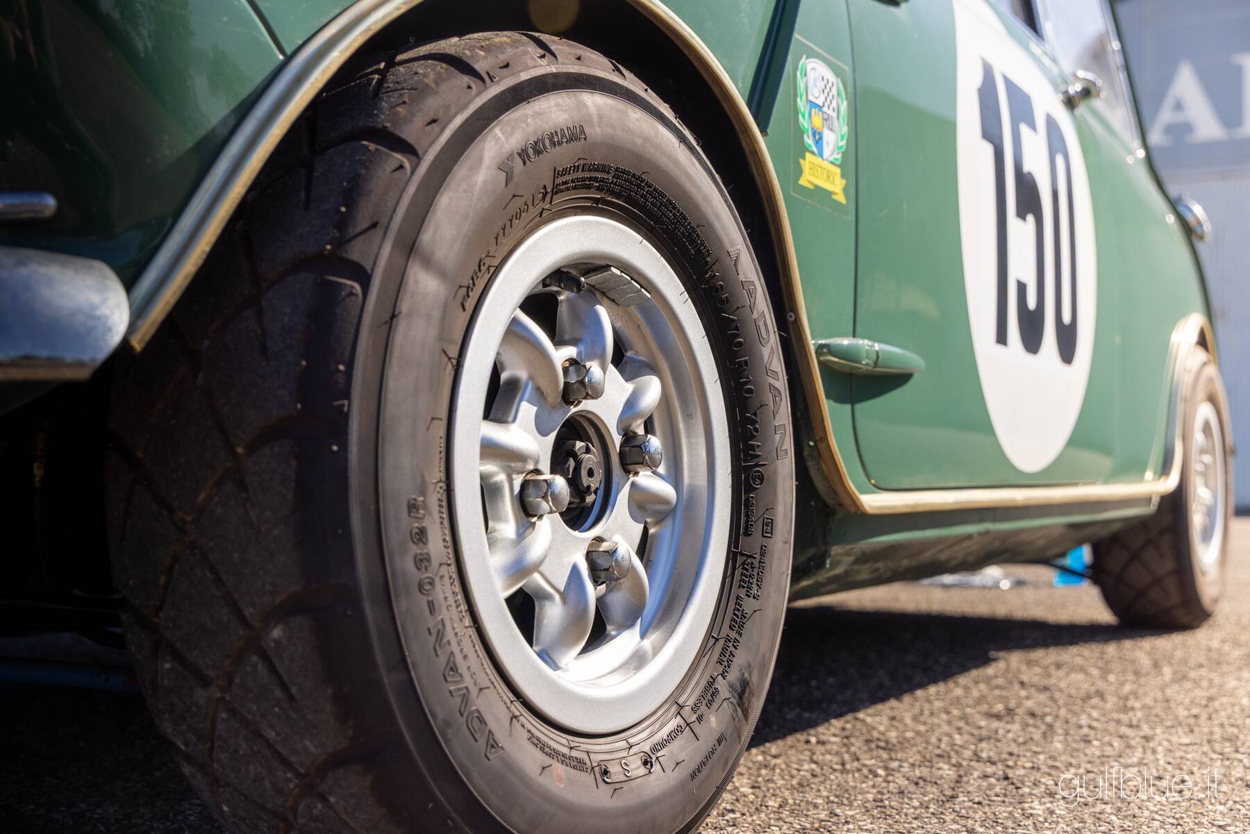 It is not the usual Mini: it is one of the rare Morris Mini Cooper S, sold new in Italy in 1965, precisely in Udine, which has raced both as a modern and as a historic car, with important results. It still appears in its original configuration, green with a white roof and grey-green interiors.
