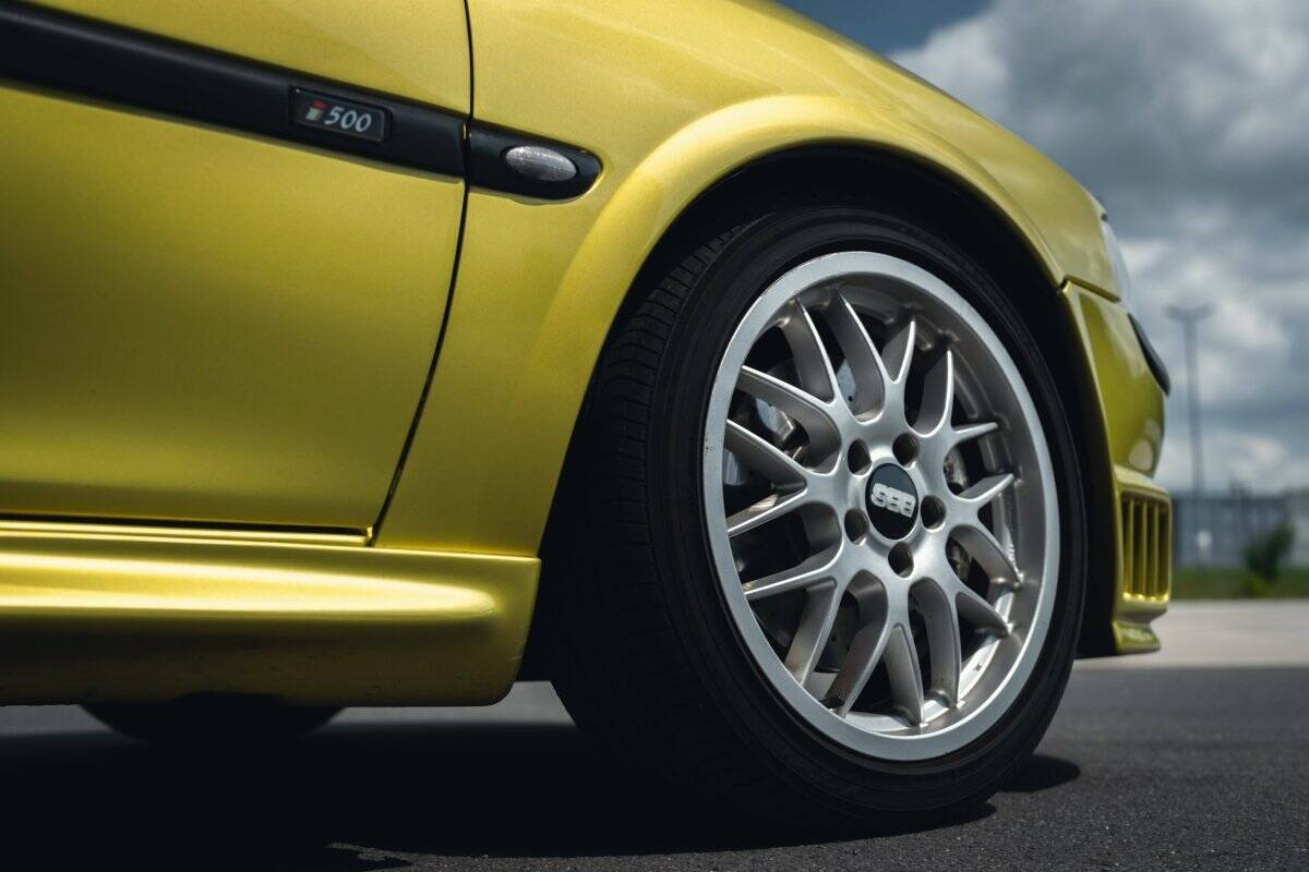 Irmscher i500 Umbau: Modifizierter 2.5 V6 Ottomotor von irmscher (überarbeitetes Bosch-Motorsteuergerät) Konsolenblenden in aluminiumsilber Polsterung: Stoff Metropolis Sportfahrwerk mit Tieferlegung 17-Zoll-Aluminiumfelgen BBS Kreuzspeichen-Design 5-Gang-Sport-Schaltgetriebe Scheibenbremse vorn und hinten gelocht Nachschalldämpfer irmscher mit Doppelauspuffrohr Lederlenkrad mit Aluminiumdekor Multiinfodisplay Radio Car 400 Heckflügel mit integrierter 3. Bremsleuchte Stoßfänger vorn in STW-Optik Seitenschwelleraufsatz Sportsitze vorn Colorverglasung Lackierung: brokatgelb (2-Schicht-Metallic),