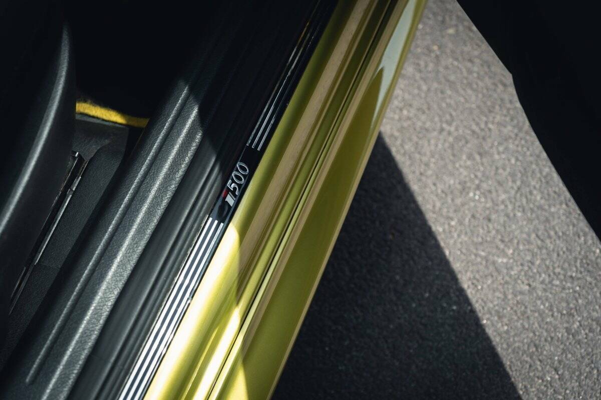 Zusatz: offener Sportluftfilter Fußmatten mit gelber Ziernaht und irmscher i500 Schriftzug