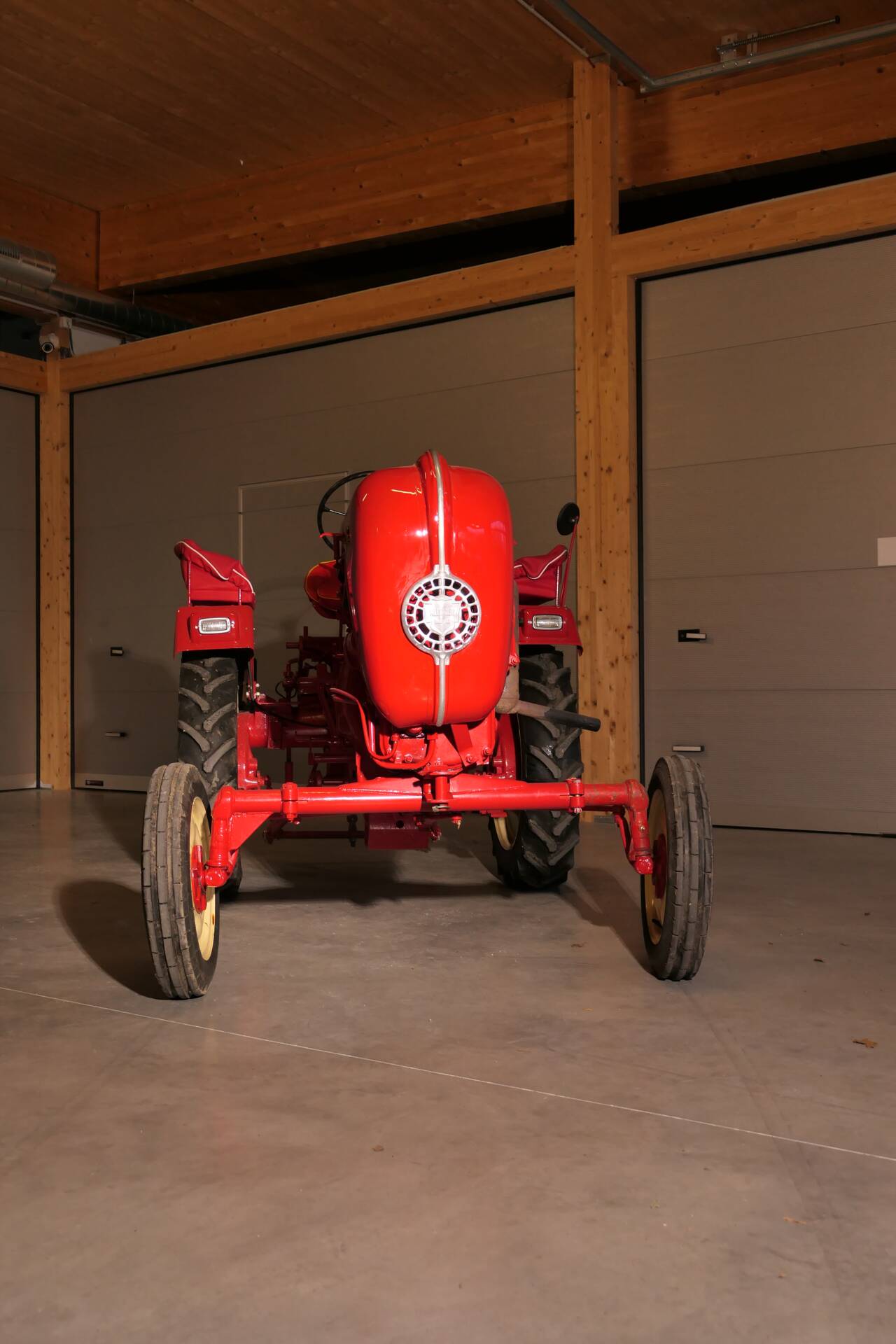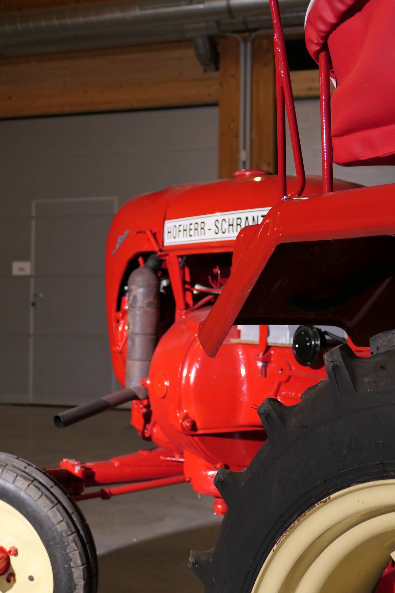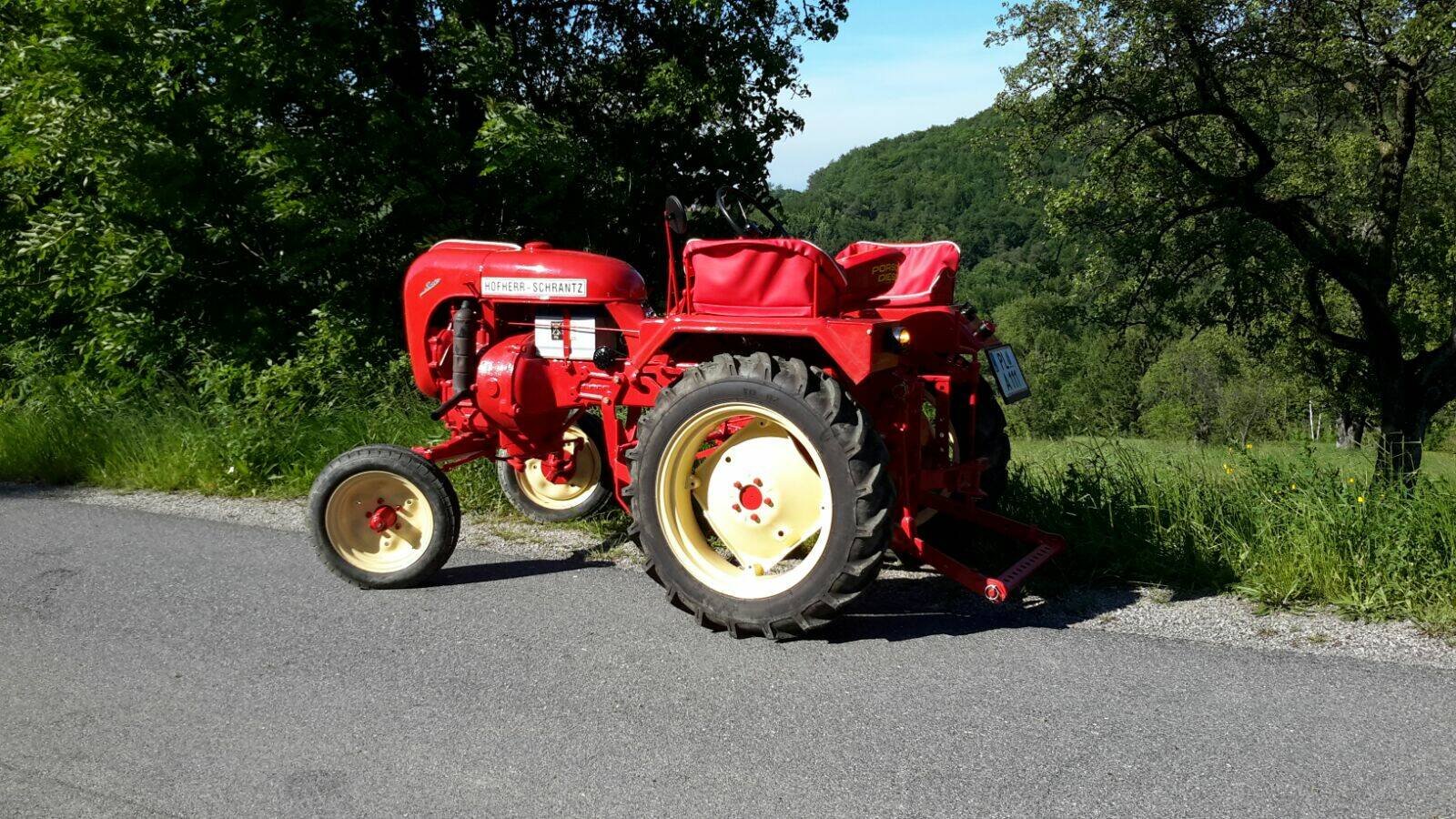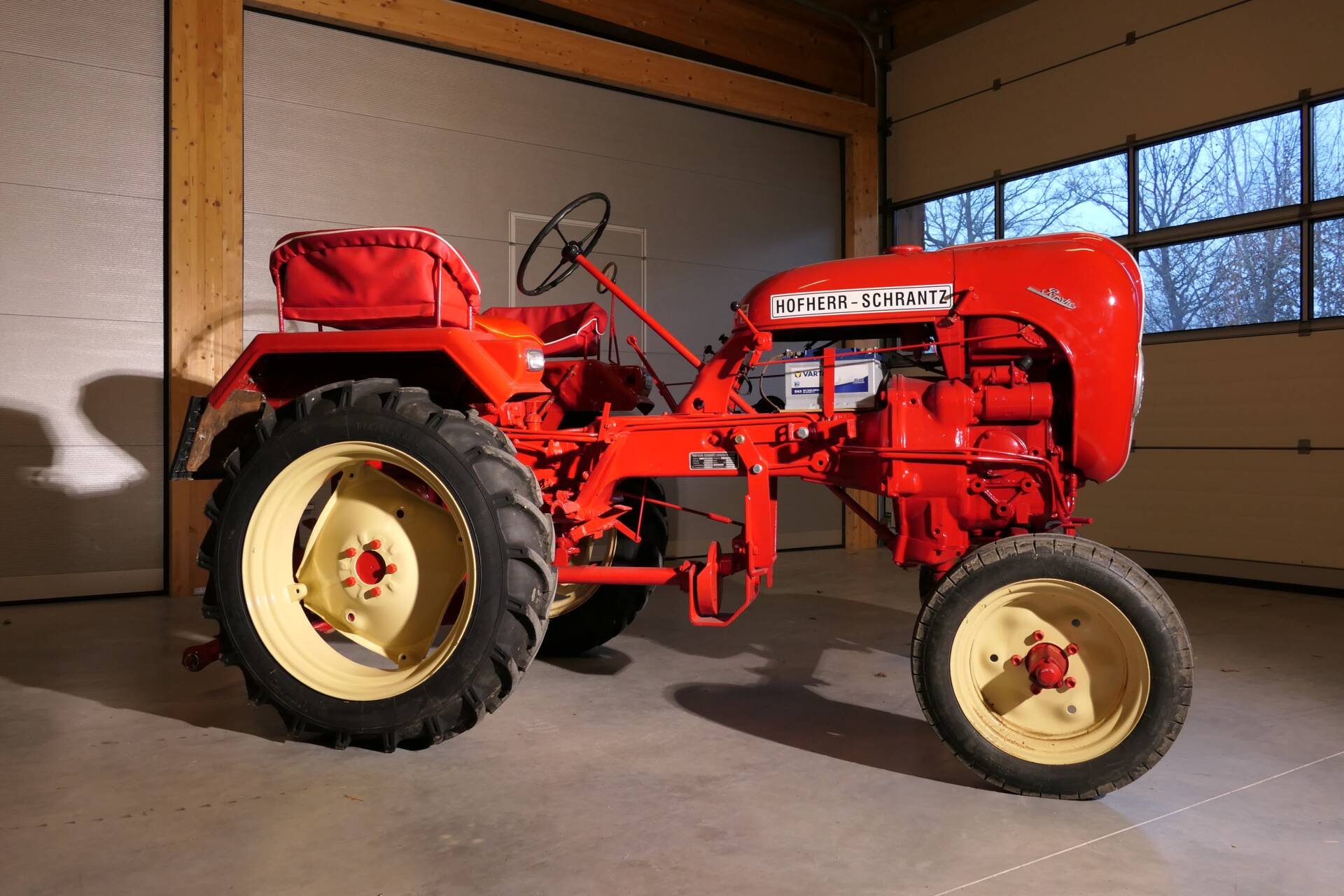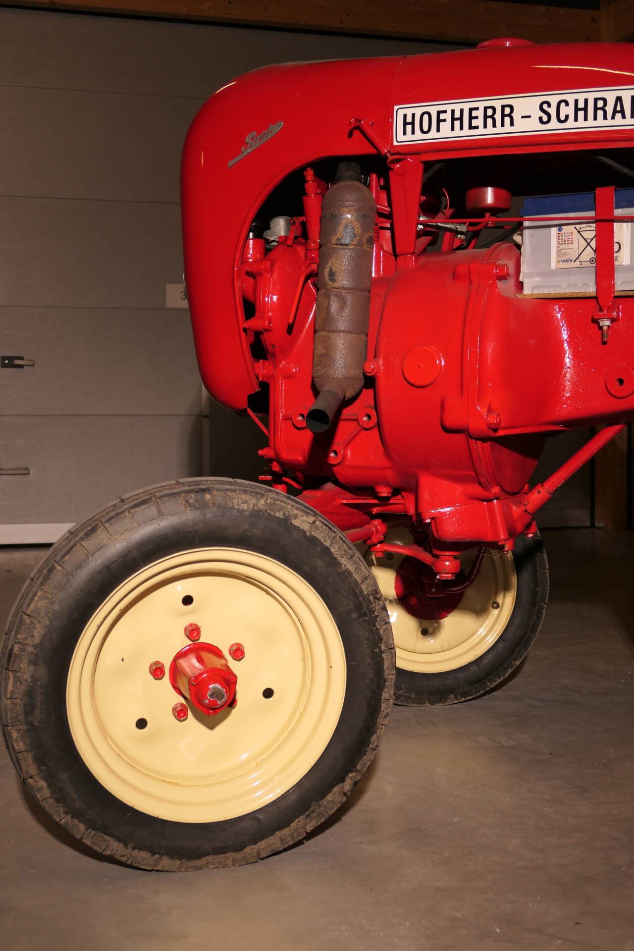 Dieser Porsche A111 in der seltenen, österreichischen Hofherr-Schrantz-Version präsentiert sich als vollständig restauriertes und heute fahrbereites Exemplar. Der Traktor wurde laut Besitzer vor rund zehn Jahren umfassend überarbeitet und seither nur behutsam genutzt. Ein originaler Typenschein mit Schmierplan liegt vor, ebenso ein originales Seitenmähwerk von Hofherr-Schrantz, das als wertvolles Zubehör beiliegt. Die Zulassung ist aktiv, eine Probefahrt jederzeit möglich.