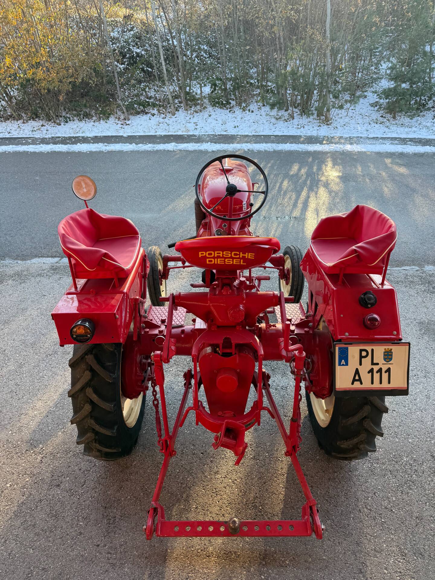 Der luftgekühlte Porsche-Dieselmotor gilt als langlebige und zuverlässig konstruierte Einheit. Das Fahrzeug ist angemeldet, was auf einen technisch einwandfreien Grundzustand schließen lässt. Eine Probefahrt ist möglich, was den funktionalen Charakter zusätzlich bestätigt. Zum Umfang der Restaurierung liegen keine Detailunterlagen vor, doch der allgemeine Eindruck spricht für eine sorgfältige Überholung. Das Getriebe arbeitet laut Besitzer fehlerfrei; elektrische und hydraulische Funktionen sind einsatzbereit.