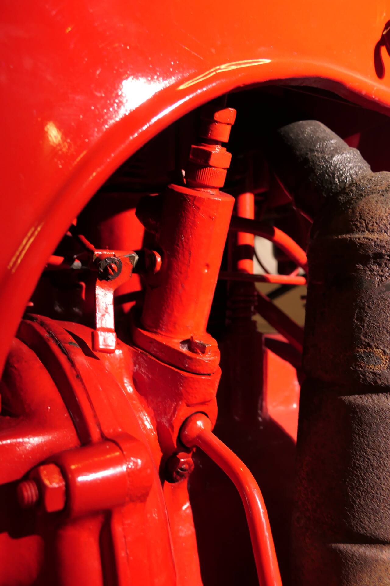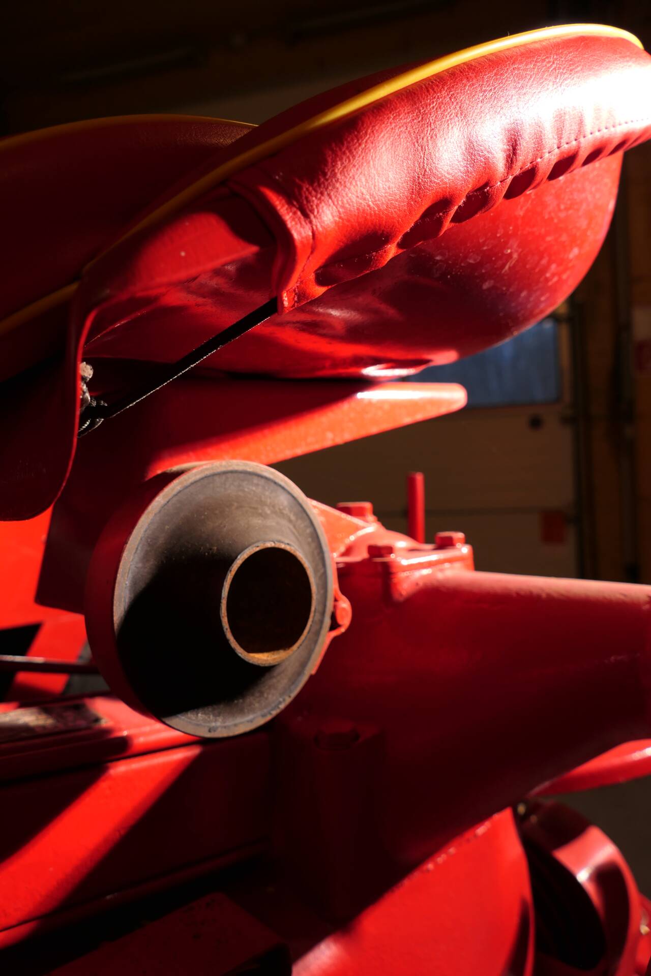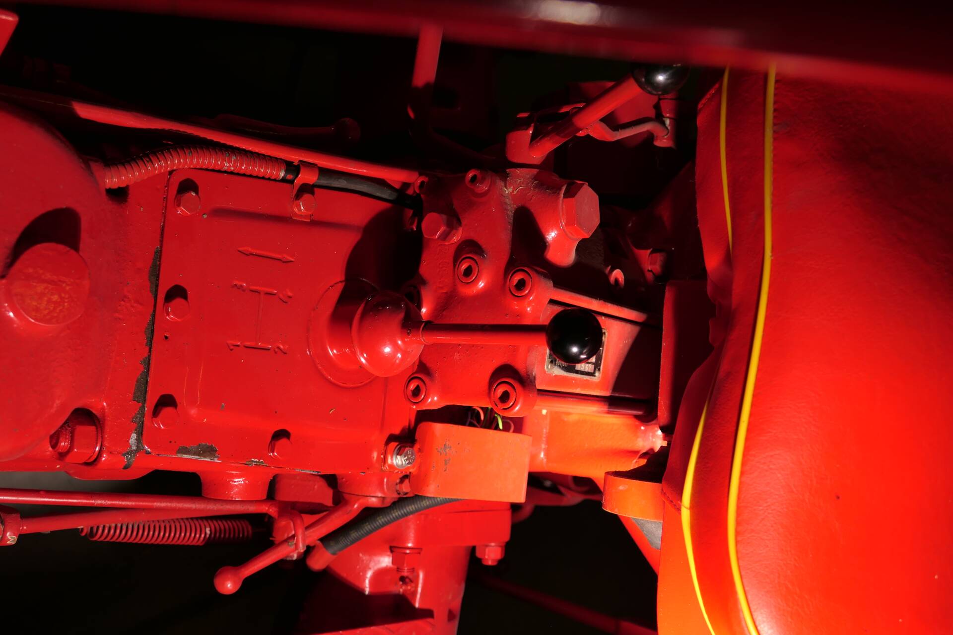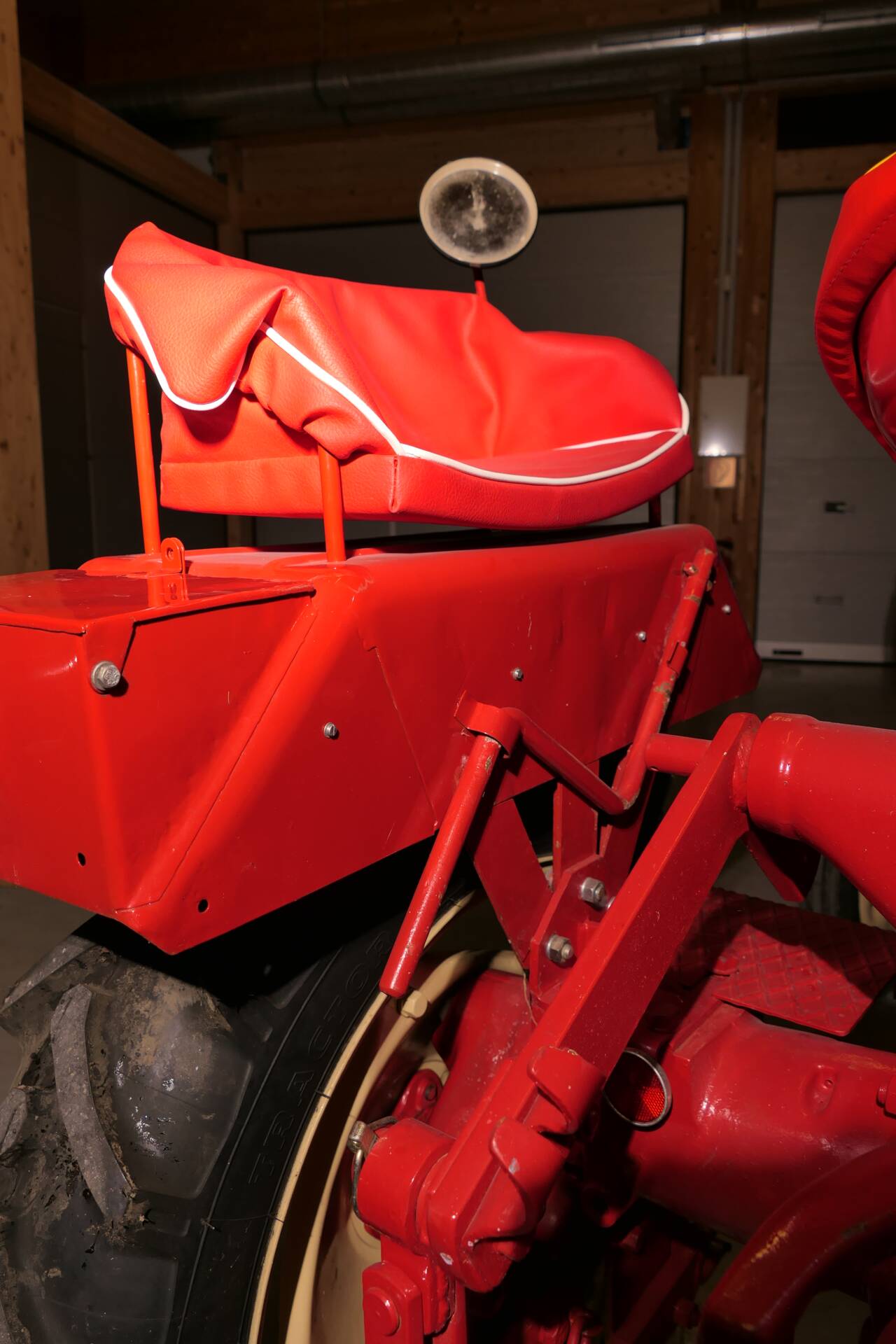 Der Fahrerplatz präsentiert sich funktional und sauber, mit überarbeiteten Sitz- und Bedienelementen. Hebel, Pedale und Anzeigen wirken gepflegt und betriebsbereit. Die einfache, robuste Ergonomie des A111 vermittelt einen unmittelbaren Zugang zur Technik – ein Aspekt, der gerade an historischen Landmaschinen den authentischen Reiz ausmacht.