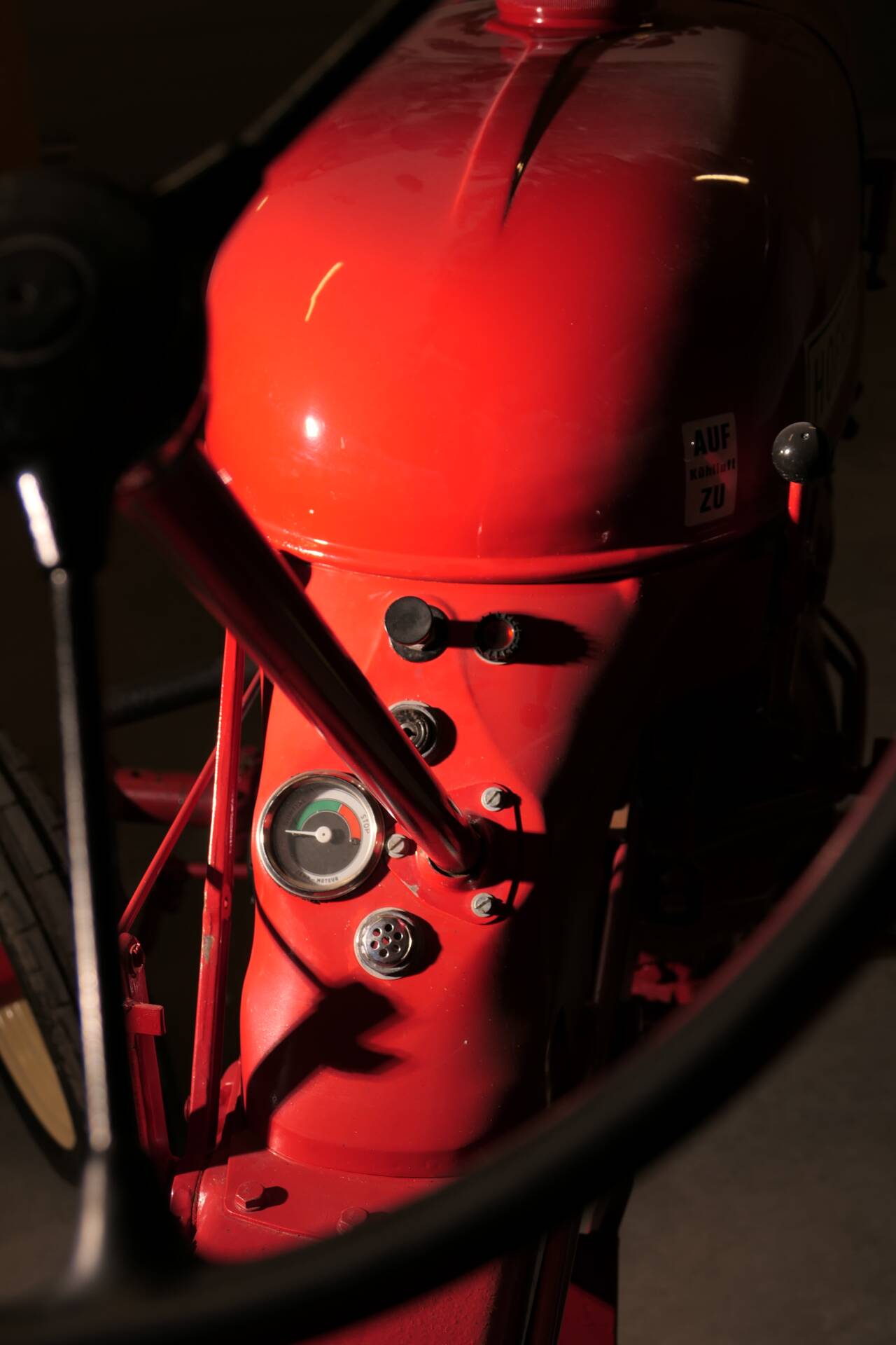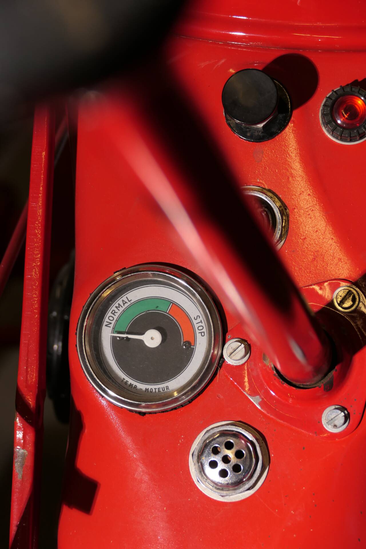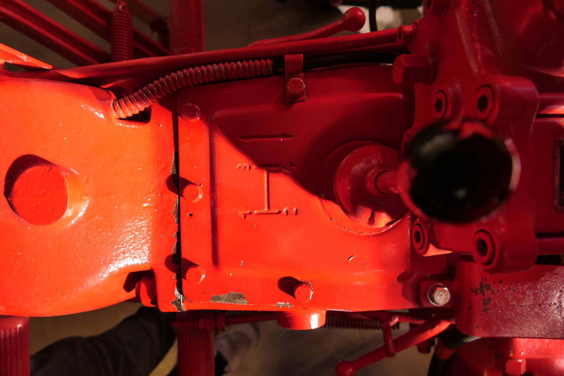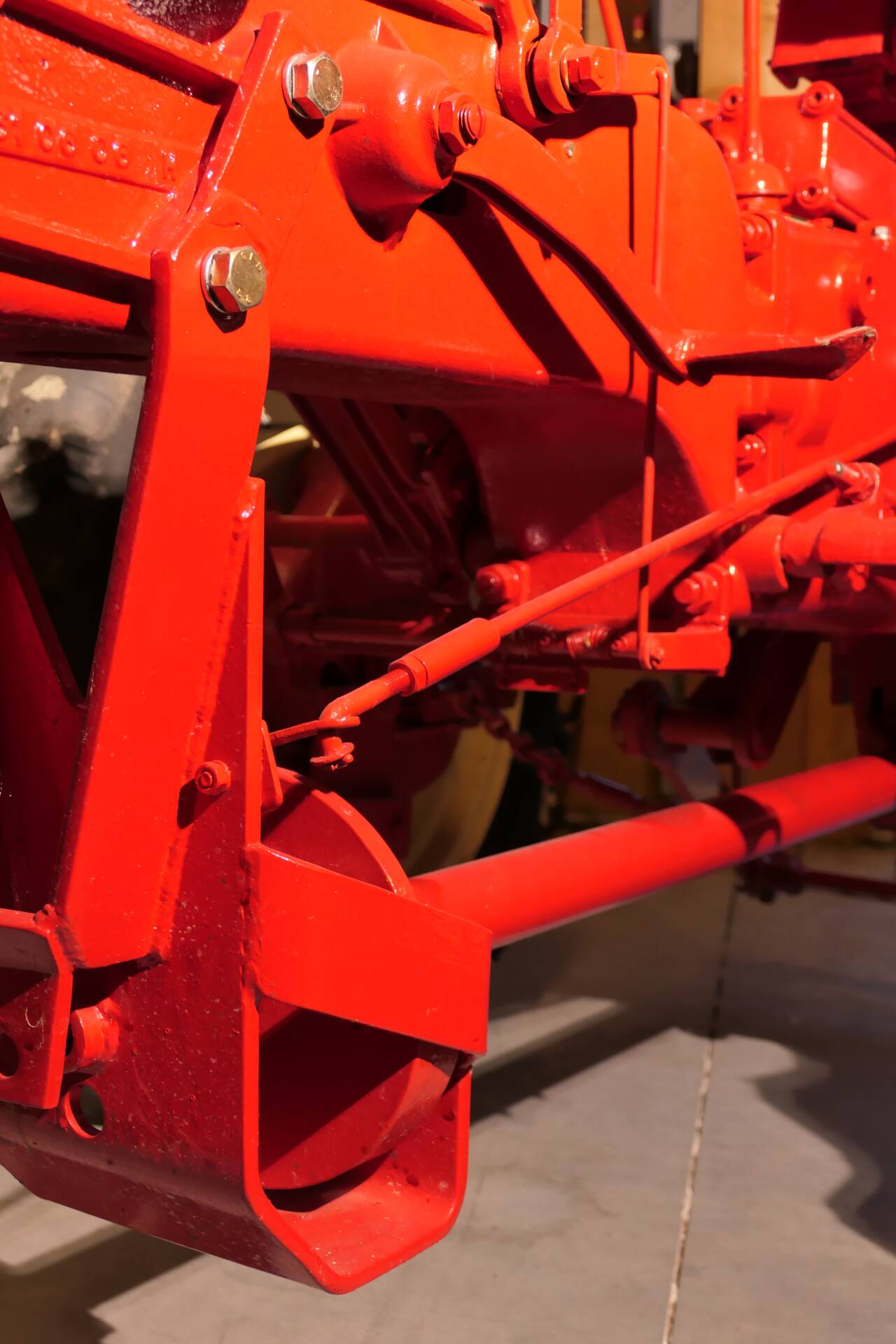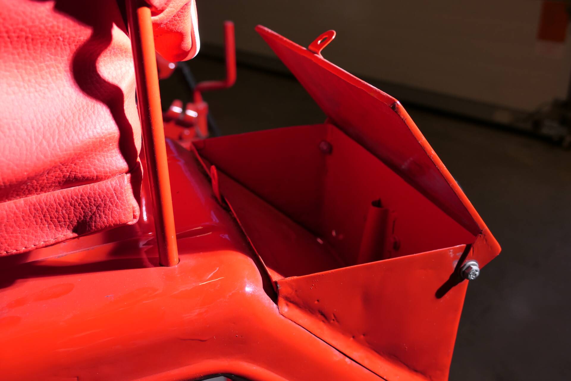 Der Fahrerplatz präsentiert sich funktional und sauber, mit überarbeiteten Sitz- und Bedienelementen. Hebel, Pedale und Anzeigen wirken gepflegt und betriebsbereit. Die einfache, robuste Ergonomie des A111 vermittelt einen unmittelbaren Zugang zur Technik – ein Aspekt, der gerade an historischen Landmaschinen den authentischen Reiz ausmacht.