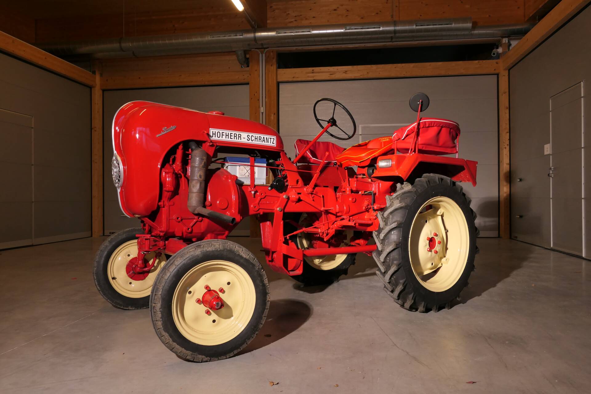 Die Porsche-Dieselschlepper zählen zu den technisch und historisch markanten Landmaschinen der Nachkriegszeit. Als robust konstruierte Einzylinder-Modelle standen sie für Zuverlässigkeit, Wartungsfreundlichkeit und solide Leistung im Alltagseinsatz. In Österreich übernahm Hofherr-Schrantz – ein traditionsreiches Maschinenbauunternehmen – die Fertigung bzw. Montage bestimmter Versionen und prägte regionale Varianten, die heute aufgrund ihrer geringen Stückzahlen bei Sammlern besonders geschätzt werden. Der A111 gilt als kompakter, wendiger Schlepper mit charakteristischem Luftgekühlten Porsche-Diesel und zählt zu den Modellen, die aufgrund ihrer überschaubaren Größe und authentischen Technik gern in Sammlungen, Museen oder bei Oldtimer-Traktorveranstaltungen eingesetzt werden.