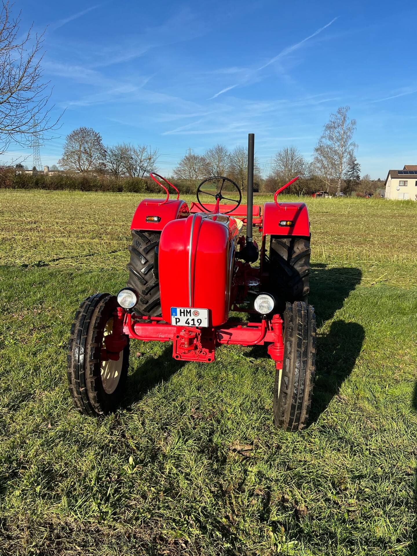 Der hier angebotene Porsche Master 419 aus dem Baujahr 1963 zählt zu den leistungsstärksten und technisch eindrucksvollsten Traktoren der Porsche-Diesel-Ära. Das Fahrzeug wurde in einer mehrjährigen, kompromisslosen Handrestaurierung vollständig überarbeitet und präsentiert sich mit einer seltenen Zweit-Sitzbank, aktueller Straßenzulassung sowie TÜV und dokumentiertem Wertgutachten. Der luftgekühlte Vierzylinder-Dieselmotor liefert mit 37 kW eine beeindruckende Mischung aus Durchzugskraft und kultiviertem Lauf. Die fünfjährige Restaurierung erfolgte in minutiöser Handarbeit und hebt dieses Exemplar deutlich aus der Masse restaurierter Porsche-Traktoren heraus.