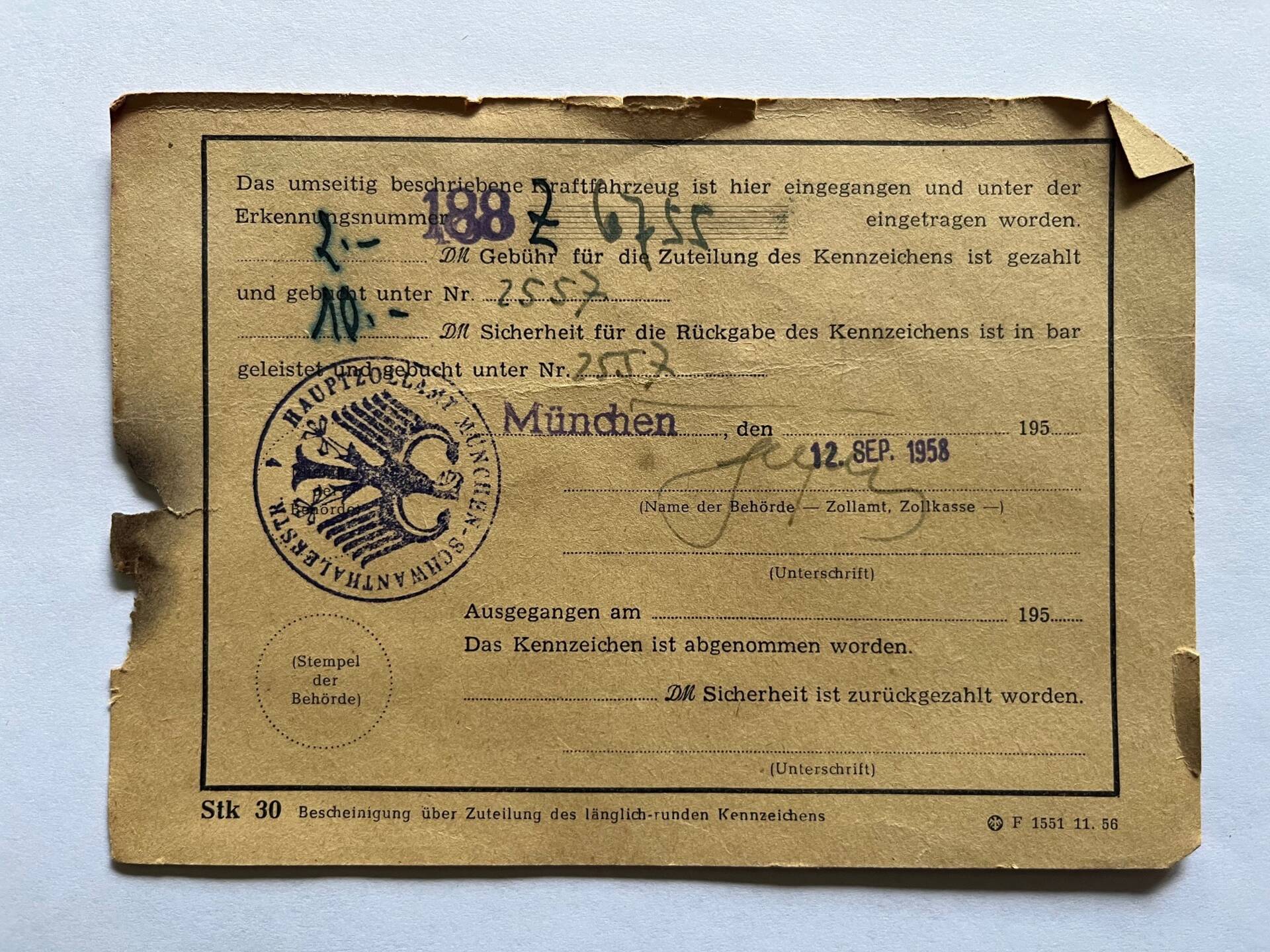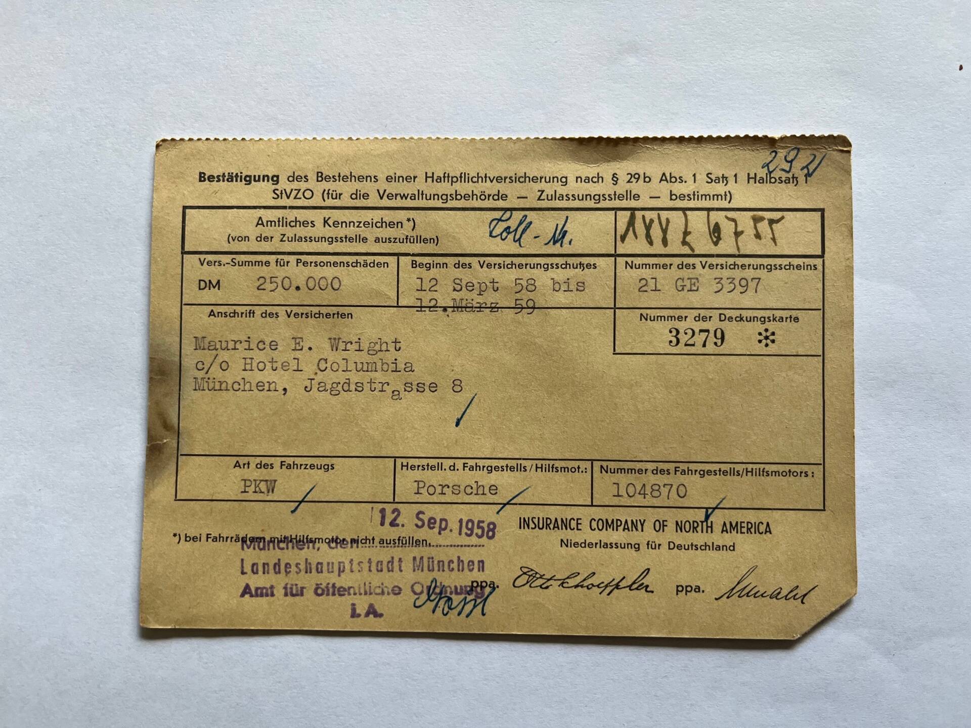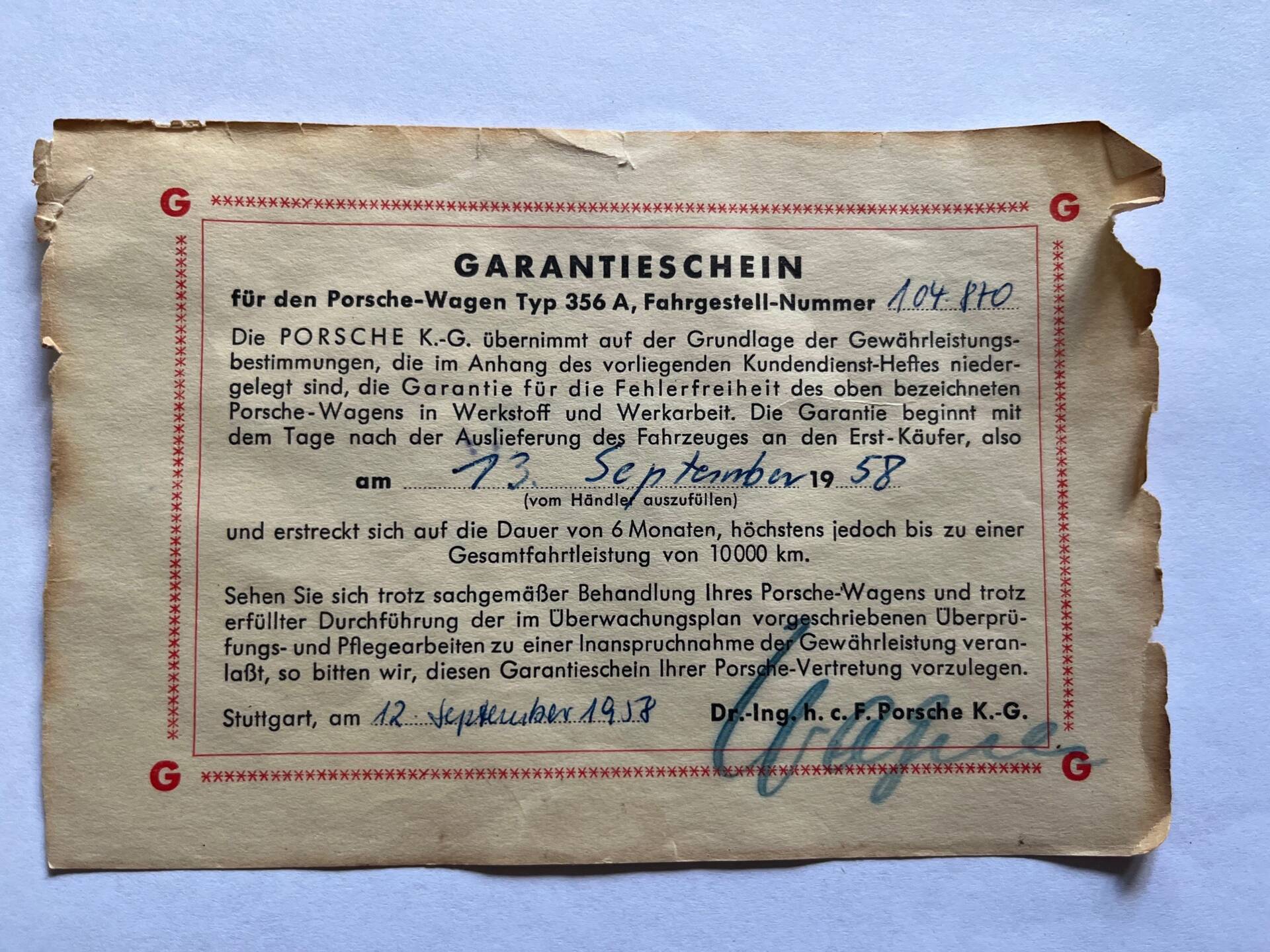 Ausgeliefert wurde der Wagen im Frühjahr 1958 bei MAHAG in München, in der klassischen Farbkombination Silbermetallic (5706) mit rotem Kunstlederinterieur – ein Farbduo, das bis heute zu den elegantesten Kombinationen des 356 gehört. Schon auf dem Bestellzettel zeigte sich Liebe zum Detail: