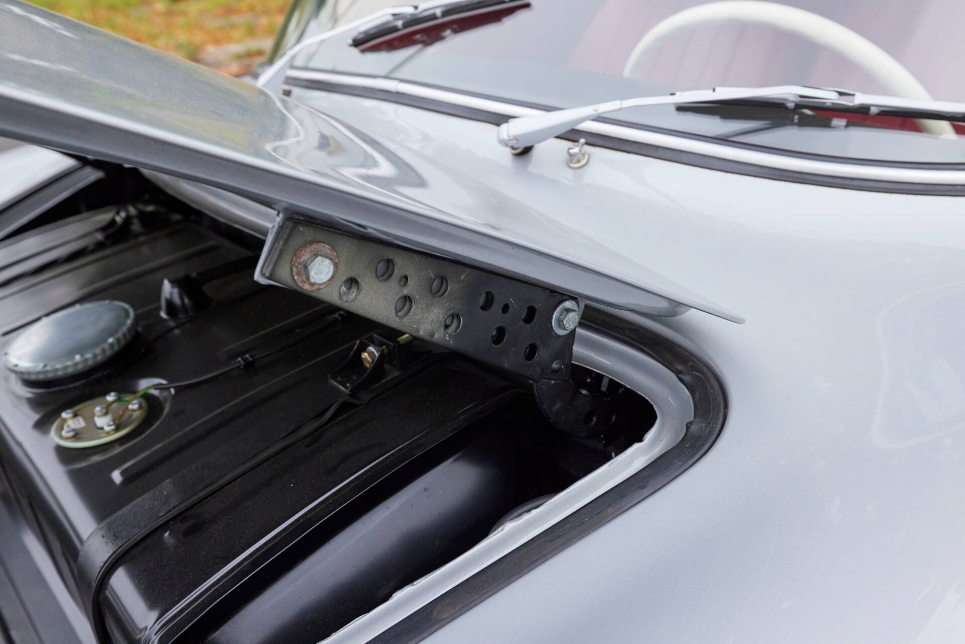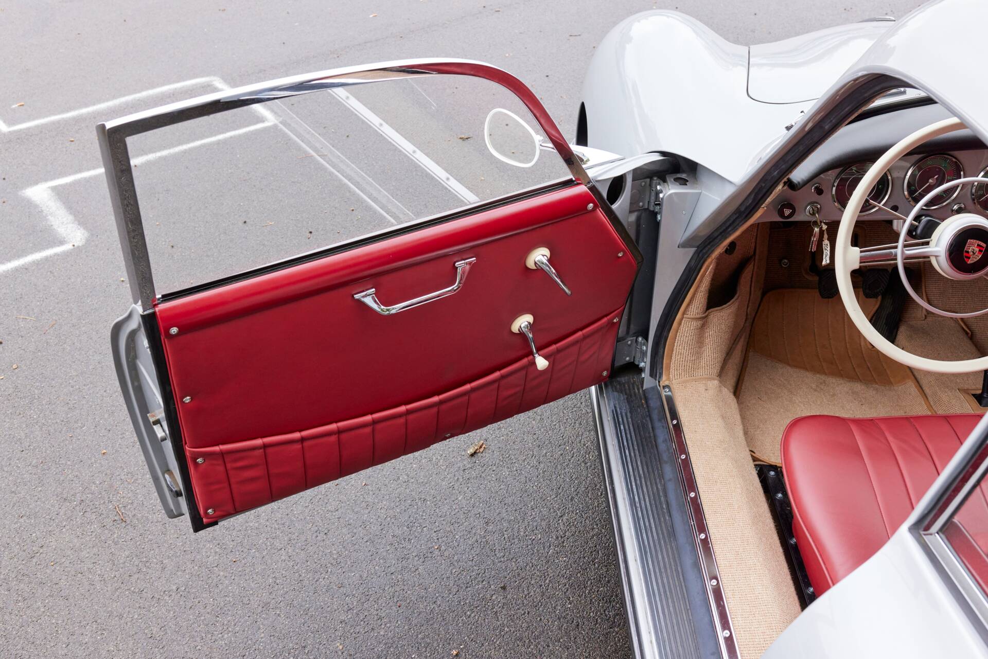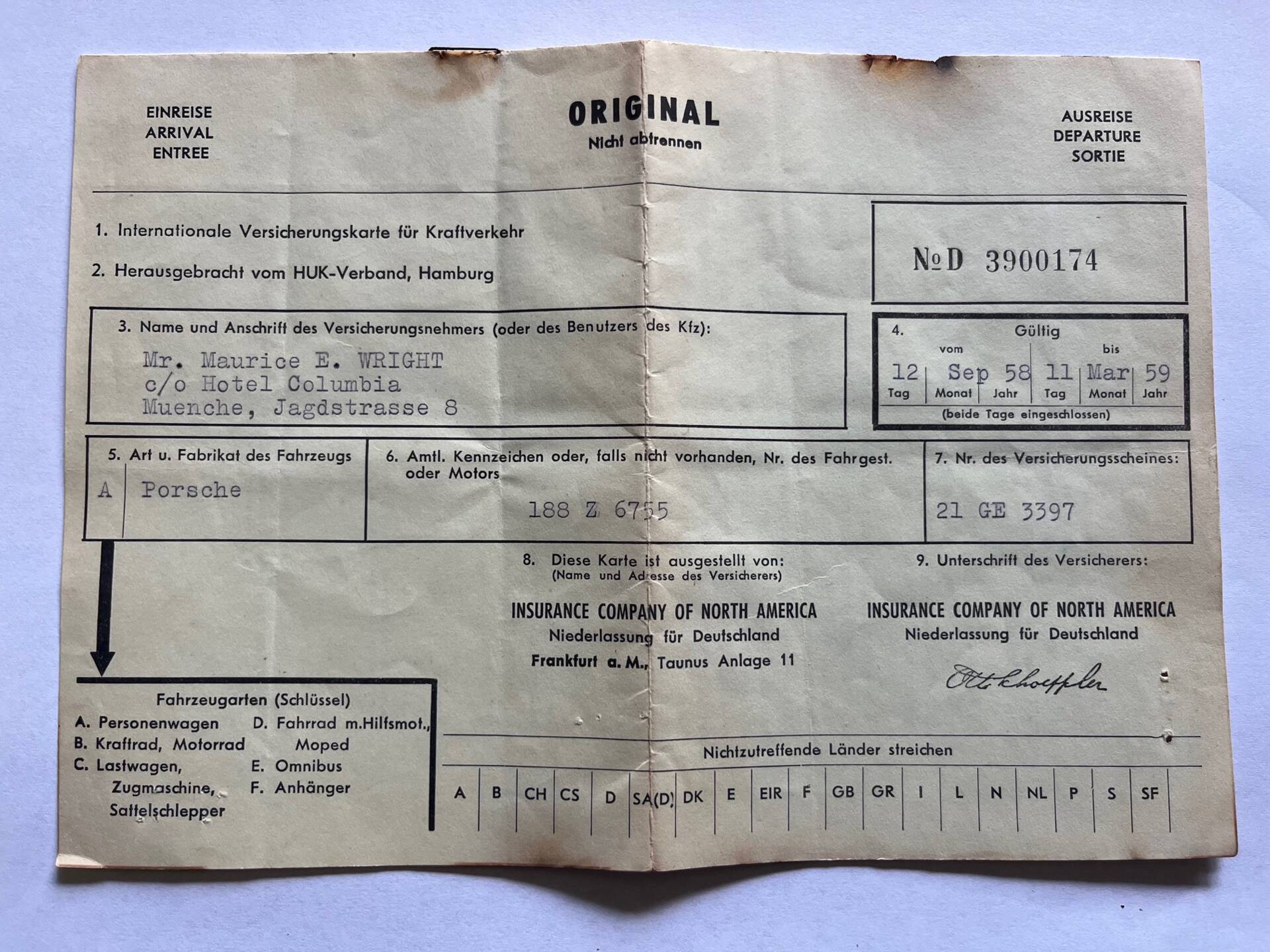 Ausgeliefert wurde der Wagen im Frühjahr 1958 bei MAHAG in München, in der klassischen Farbkombination Silbermetallic (5706) mit rotem Kunstlederinterieur – ein Farbduo, das bis heute zu den elegantesten Kombinationen des 356 gehört. Schon auf dem Bestellzettel zeigte sich Liebe zum Detail: