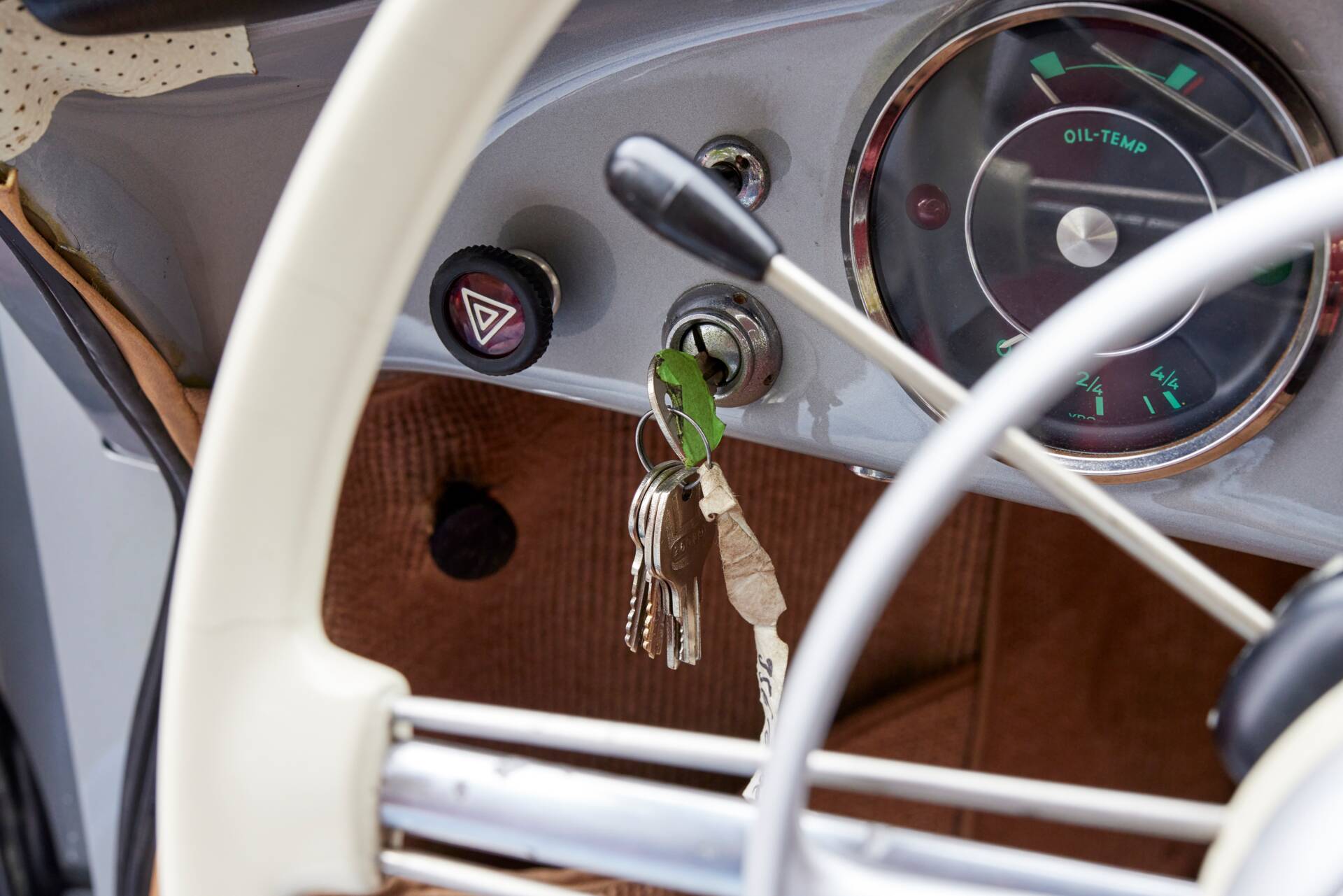 Irgendwann in den folgenden Jahrzehnten kam der Porsche zurück nach Deutschland – wo er umfassend restauriert wurde. Heute präsentiert er sich in sehr gepflegtem Zustand, mit stimmigen Details, originalgetreuer Farbgebung und jener zeitlosen Aura, die den 356 A zu einem der begehrtesten Sammlermodelle überhaupt macht.
