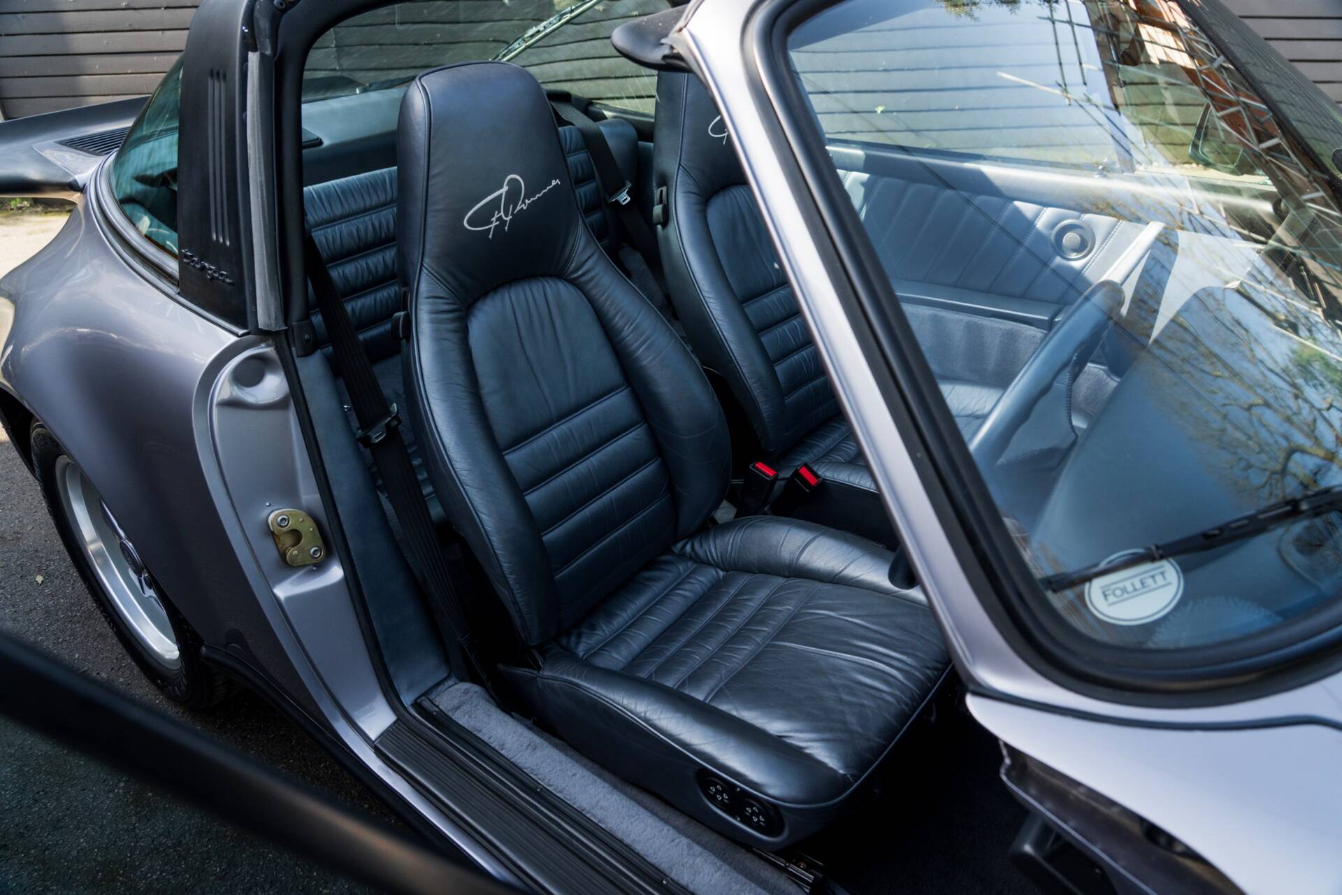 All the cars featured the stunning Diamond blue metallic paint and were filled with an extensive list of standard features that were not available in standard specification cars. These options included a powered passenger seat, central locking capabilities, and a more extensive windscreen washing system. The Commemorative cars were produced in a special metallic paint with blue crushed-effect leather interiors and the seats featured Ferry Porsche’s signature embossed in the headrest.