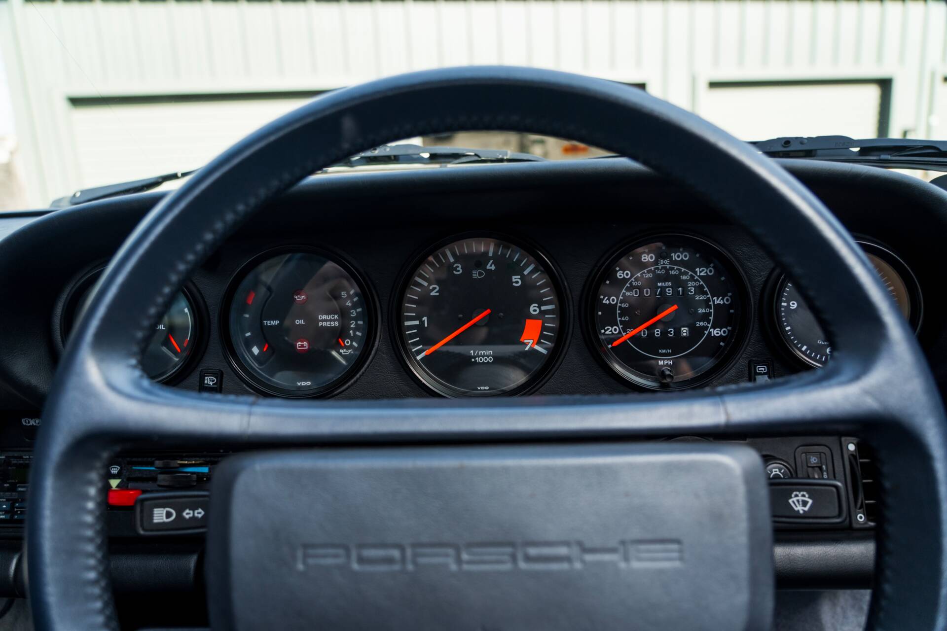 In 1987 the Carrera range was facelifted and revised. Many of the changes over the previous iteration of the Carrera helped to greatly improve the car and the driving experience. But there was no doubting that the most significant change was the introduction of the Getrag G50 5-speed gearbox. Along with the introduction of a hydraulic rather than cable operated clutch, this dramatically enhanced the shift quality and the driving experience. The 911 is powered by an air-cooled 930/25 3.2 litre engine with revised Motronic engine management that increased power output and enabled it to run on 95 octane fuel. Maximum power output is 231 bhp at 5,900 rpm. 0-62 mph was achieved in 6.1 seconds. The German magazine “Auto, Motor, Sport” summarized the experience driving the renewed 911 G-series, “The Porsche 911 Carrera 3.2 offers driving in its finest form. The cockpit is a feast for the eyes, the engine one for the ears.”  Today, the 911 Carrera 3.2 is widely regarded as one of the best classic Porsches.  It’s the last Porsche 911 with the unique shape of the early 911s, embodying the end of a sports car era which lasted for 26 years.