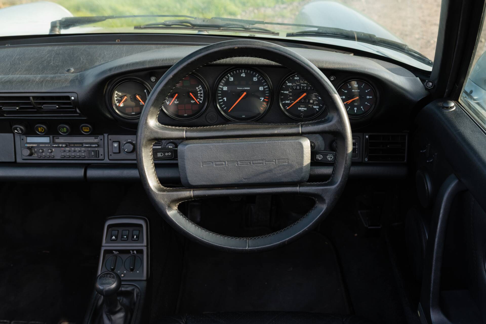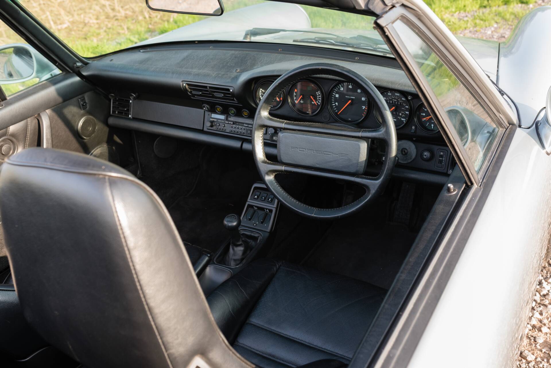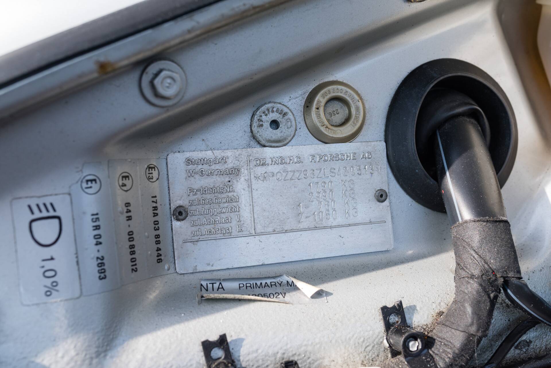 Chassis 420513 was registered new to its first owner, a resident of Manchester on the 27th of January 1990 via Ian Anthony Porsche Centre Wilmslow. Finished in Silver Metallic over a Black leather interior, it was fitted with the following options: deactivated cat, sport seats and a Blaupunkt Toronto Radio with two speakers in the rear parcel shelf.