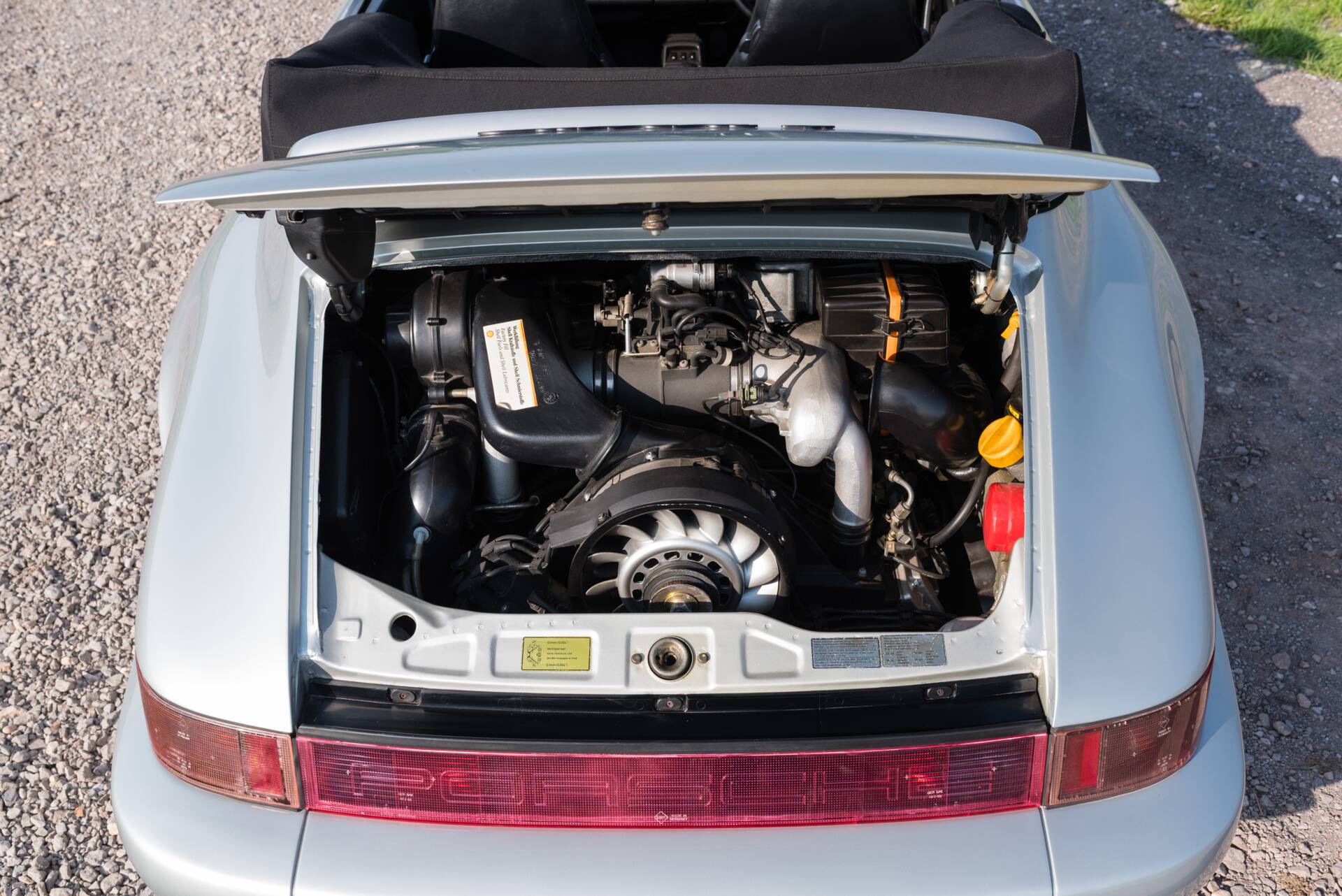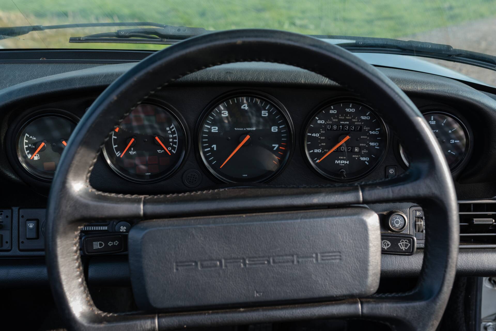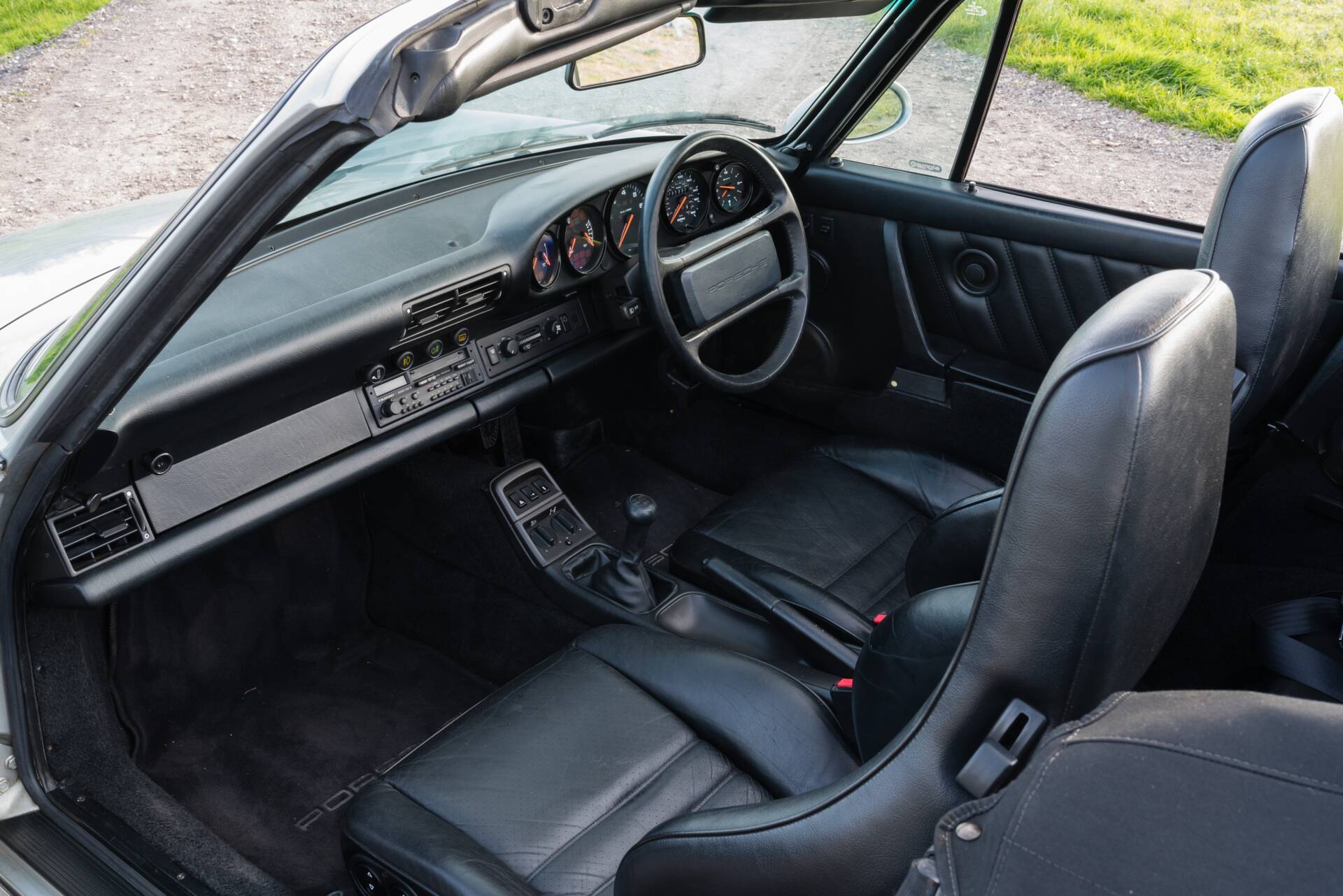 Chassis 420513 was registered new to its first owner, a resident of Manchester on the 27th of January 1990 via Ian Anthony Porsche Centre Wilmslow. Finished in Silver Metallic over a Black leather interior, it was fitted with the following options: deactivated cat, sport seats and a Blaupunkt Toronto Radio with two speakers in the rear parcel shelf.