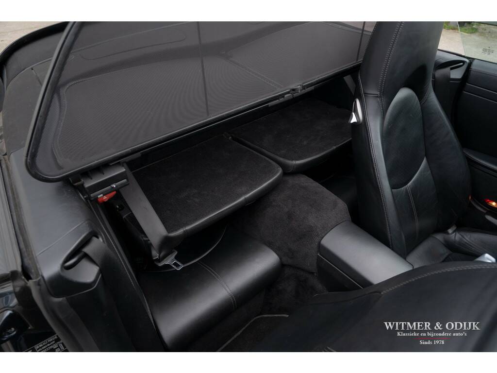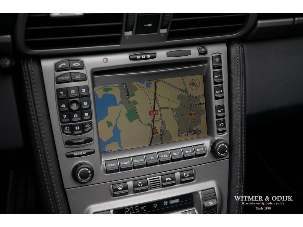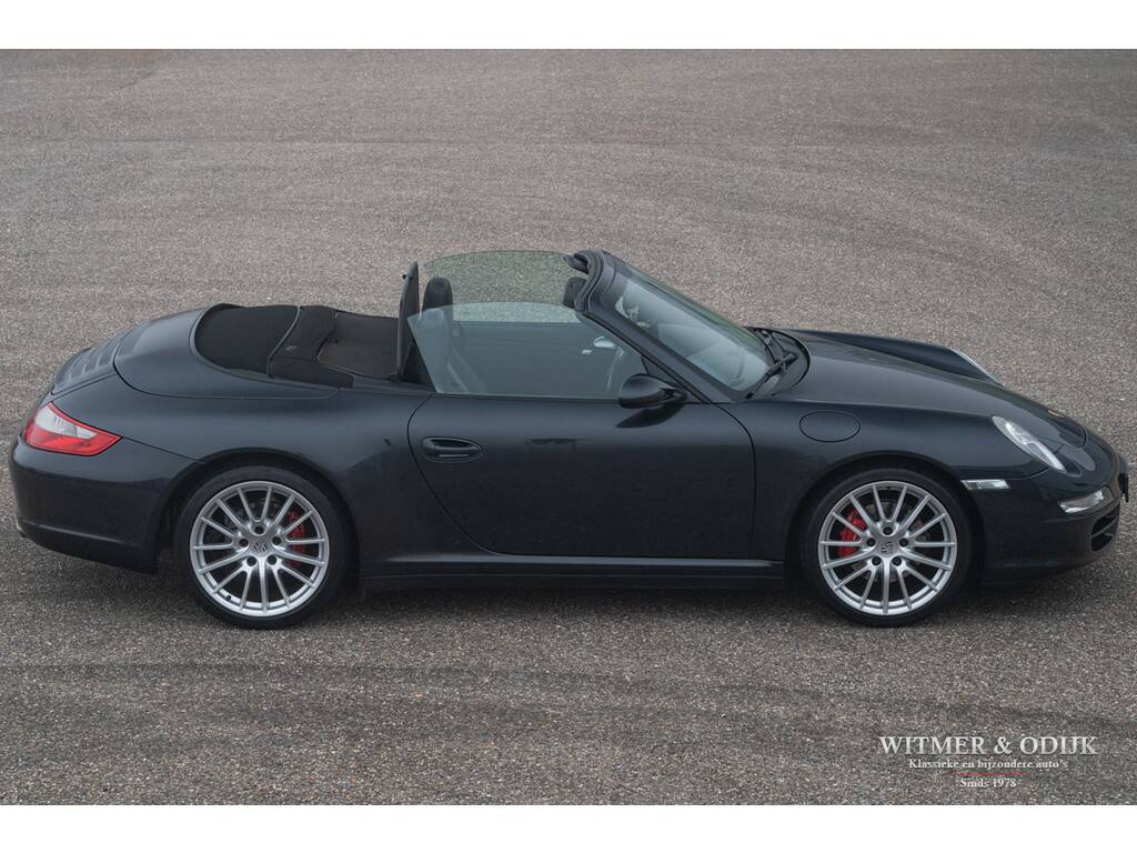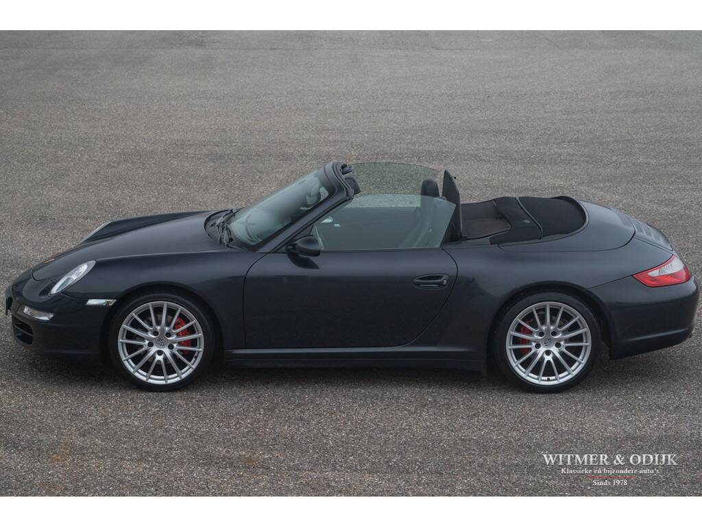 Voor wie veiligheid en comfort in een Porsche minstens zo belangrijk zijn als sportiviteit en schoonheid is de 911 Carrera 4 Tiptronic Cabriolet een zeer goed optie. Immers dankzij de permanente vierwielaandrijving, zes airbags, Porsche Stability Management (een electronische combinatie van ABS en Traction Control) en elektronisch instelbare schokdempers moet u echt extreme handelingen verrichten om de auto van de weg te krijgen. Tegelijkertijd heeft Porsche die prachtige vierwiel-techniek ondergebracht in de Turbo-brede carrosserie die wordt gezien als de mooiste in de serie. Bovendien zijn er dan nog zaken als bijvoorbeeld automatische overroll bescherming, en het opklapbare windscherm, die maken dat zelfs uw kapper deze auto een goed idee vindt. Niet iedere Porsche koper had destijds de forse meerprijs voor de brede Carrera 4 uitvoering over, of ter beschikking, dus ze zijn behoorlijk zeldzaam. Zeker wanneer het een origineel Nederlands geleverde auto is, zo mooi dat er zelfs geen steenslag of andere gebruikssporen op de lak zichtbaar zijn. Uitgevoerd in een zeer fraaie en zeldzame kleurstelling Atlas Grey Metallic is deze 997 Carrera 4 in alle opzichten een heerlijke auto. Zeer compleet uitgerust met o.a. automatische climat control, cruise control, boordcomputer, elektrisch verstelbare stoelen, Porsche Communication Management met CD speler en DVD navigatie, Porsche Active Suspension Management, Porsche Stability Control, Parc Distance Control, automatische Tiptronic-S versnellingsbak met stuurbediening, xenon verlichting, een volledig in leer uitgevoerd interieur, opklapbaar windscherm, 19 inch Porsche Classic Design velgen, etc. In de bijzondere kleur Atlas Grey Metallic uitgevoerd. Geheel schadevrij en perfect in de fraaie lak. Dankzij garage-stalling heeft de lak ook een mooi diepe glans. Er zijn geen vermeldenswaardige gebruikssporen, ook niet op de bumpers of steenslag. Het cabriodak is mooi donker van kleur en zonder sporen van gebruik. De autoverkoper zou schrijven 'nieuwstaat'. Prachtig origineel interieur zonder gebruikssporen. Als optie werd het geheel in leer uitgevoerd. Dus ook de deurpanelen en het dashboard zijn evenals de stoelen met leer bekleed. Geen instapsporen op de stoelen. Op de vloer originele en keurig schone Porsche matten. Alle schakelaars, knopjes, klokken en het met leer beklede stuur zijn fris en onbeschadigd. Uiteraard is er niet in de auto gerookt. Velgen, motor- en kofferruimte zijn allen als nieuw. De Michelin Pilot Sport banden waren aan de voorzijde toe aan vernieuwing hetgeen wij gedaan hebben. De velgen zijn volledig onbeschadigd. Nieuw verkocht door een Nederlandse Porsche dealer in 2006. De auto is altijd keurig dealer onderhouden geweest, het originele onderhoudsboekje laat dit ook zien. Bij de auto zijn alle originele boekjes en sleutels. U krijgt de auto afgeleverd inclusief nieuwe APK, garantie en onderhoudsbeurt. Klaar voor een mooie heerlijke zomer.