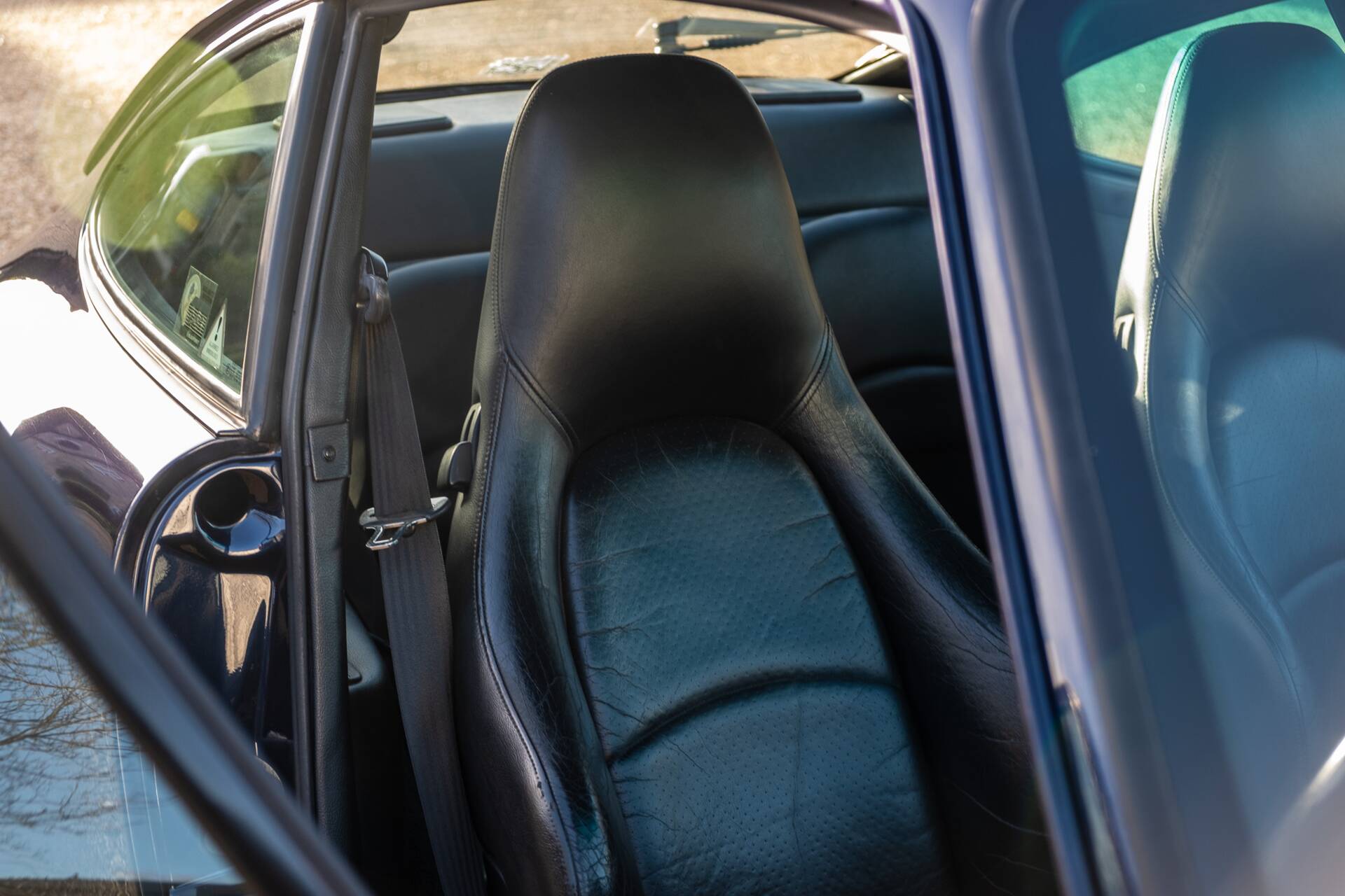 Finished in its original deep Midnight Blue with full black leather, this purist-spec Carrera 2 is equipped with a six-speed manual gearbox, electric windows and sunroof. The interior remains remarkably fresh for its age.