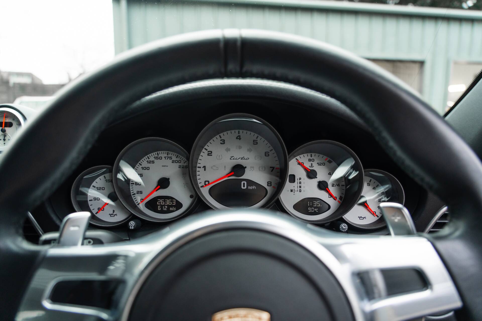 Supplied new by Porsche Centre Solihull in March 2011, our super 997 Turbo coupe has benefitted from a full Porsche service history (7 visits), with the stamped service book detailing all of its main dealer service visits. A new N-rated tyre set has also been fitted. A full driver’s book pack and spare remote key are present.  This 997.2 Turbo is all ready to be enjoyed and a 12-month RAC warranty will also be included.
