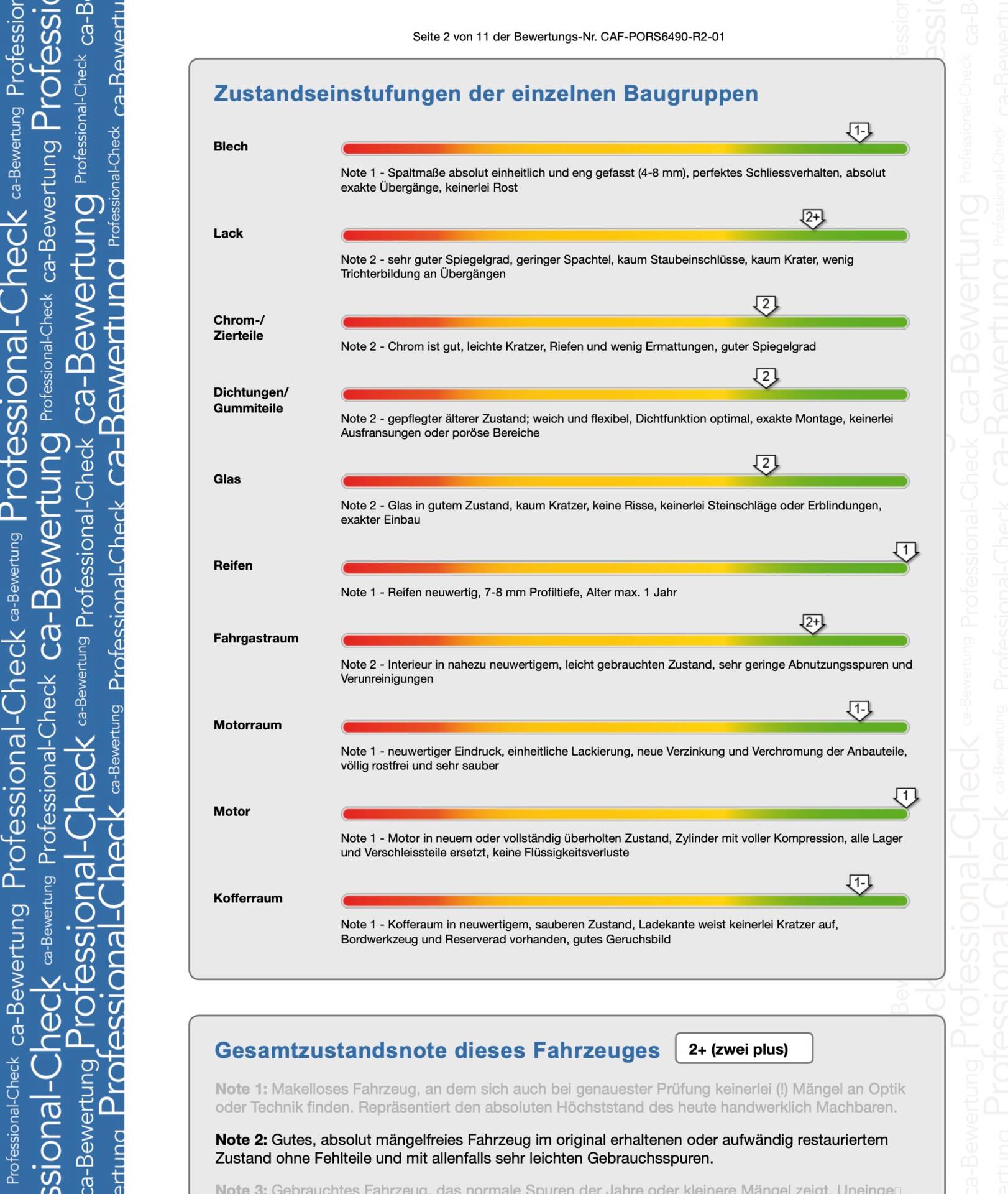 • Zustandsnoten für jede Baugruppe