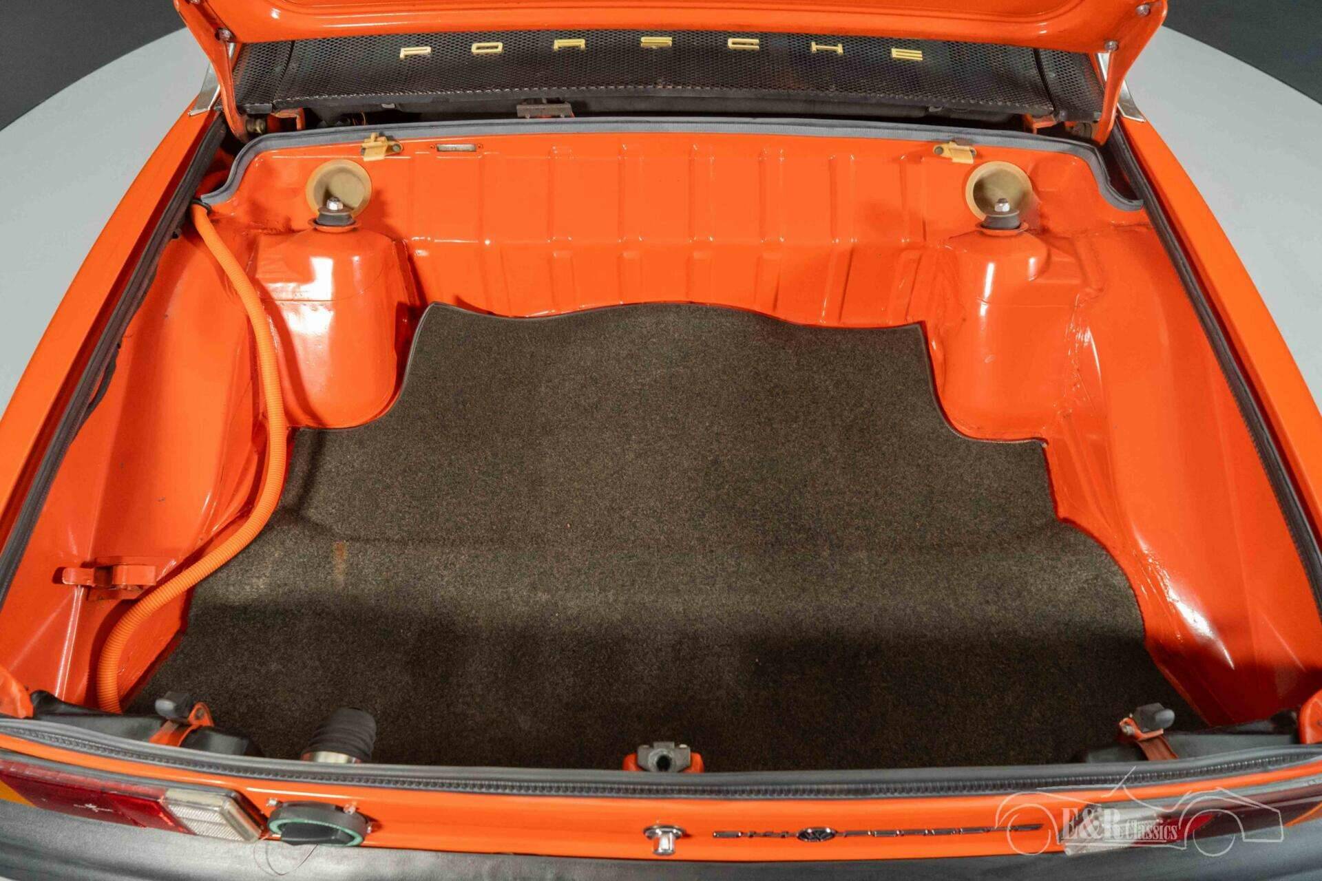 Het oranjekleurige lakwerk geeft de 914 zijn iconische uitstraling, perfect in balans met de zwarte accenten en klassieke Fuchs-velgen. Het afneembare dak maakt hem zowel sportief als praktisch, en het verzorgde zwarte interieur benadrukt de pure, functionele stijl waar Porsche in de jaren zeventig om bekendstond. Deze 914 Electric combineert tijdloze vormgeving met duurzame prestaties – een klassieker met toekomst.