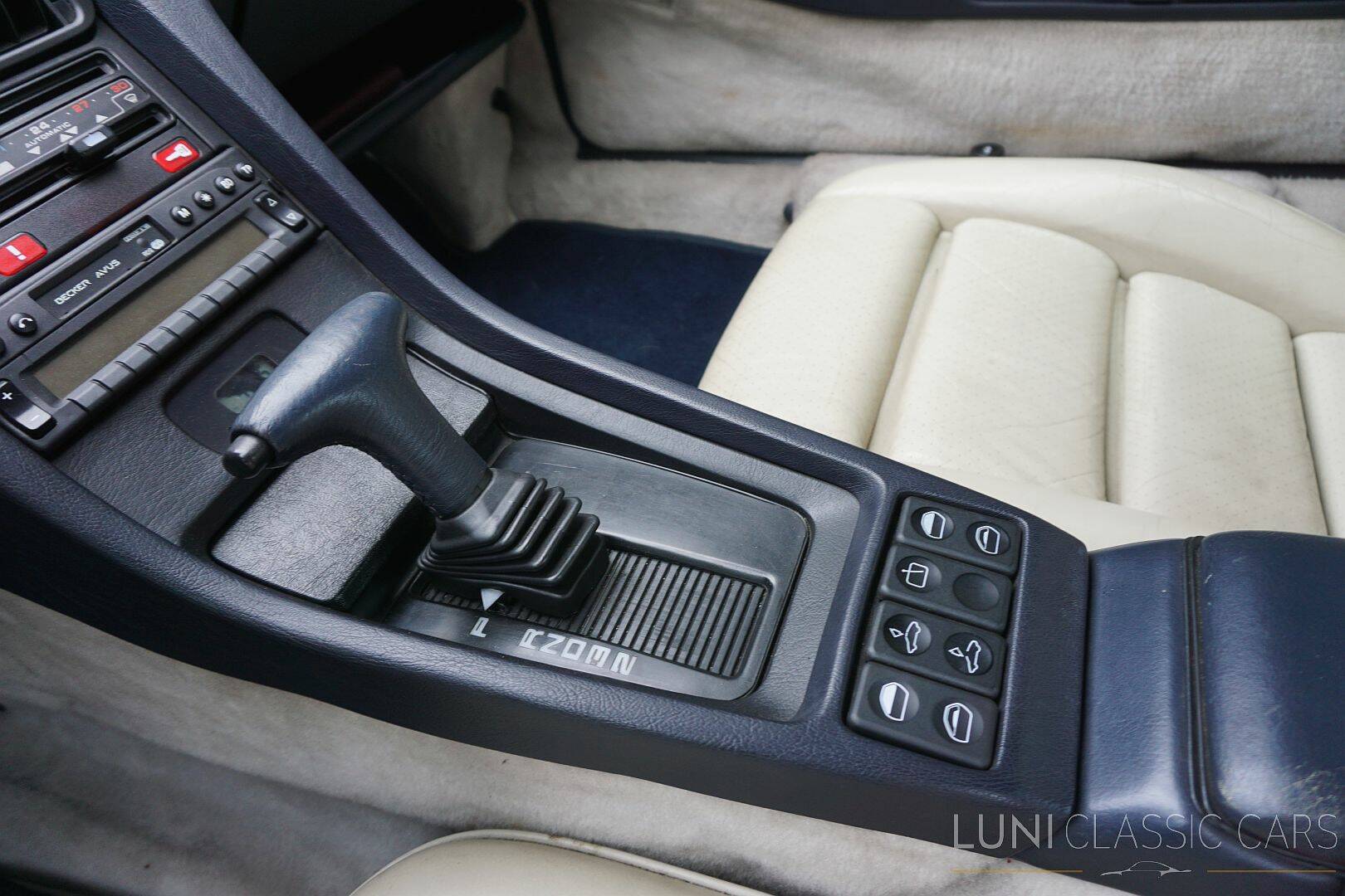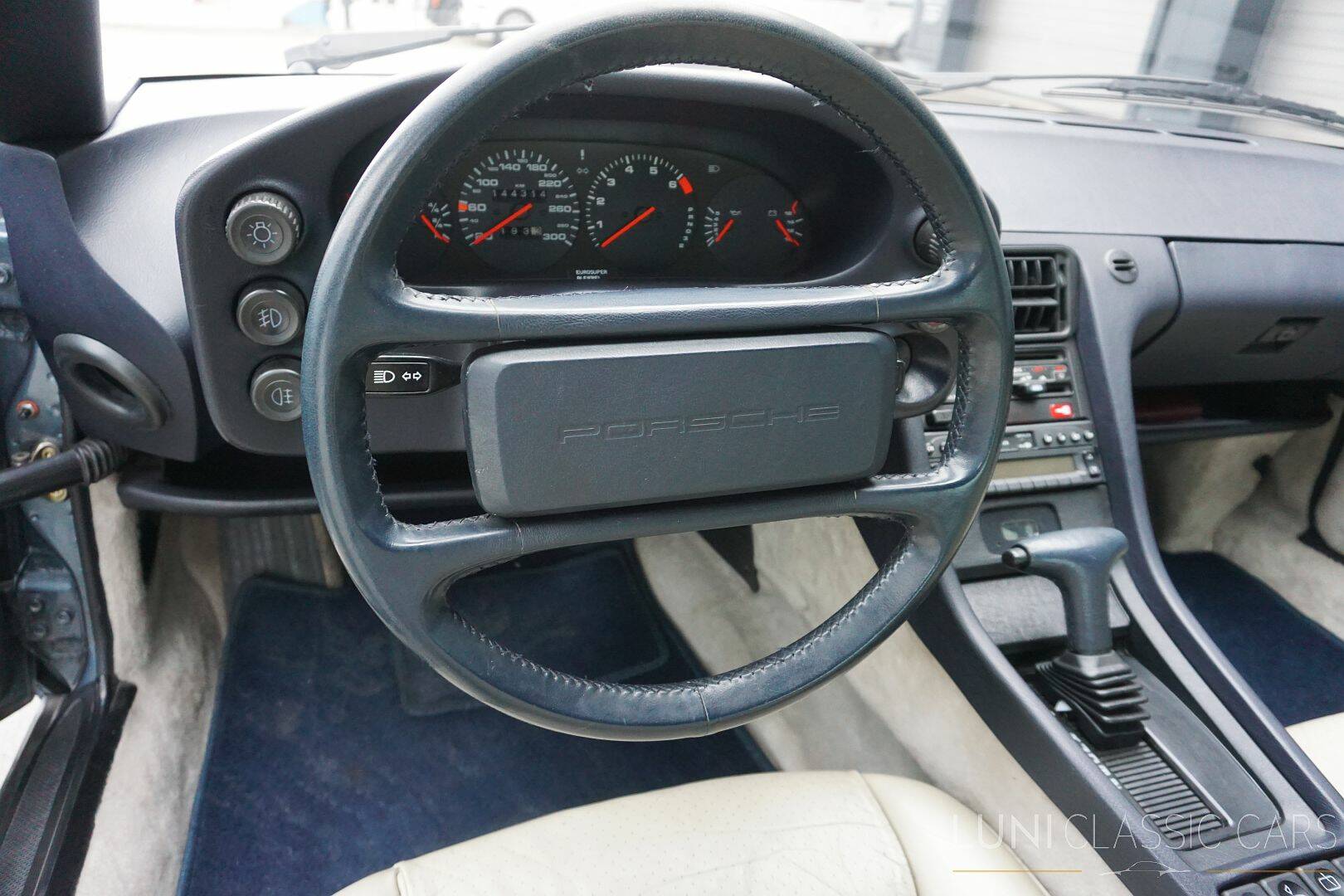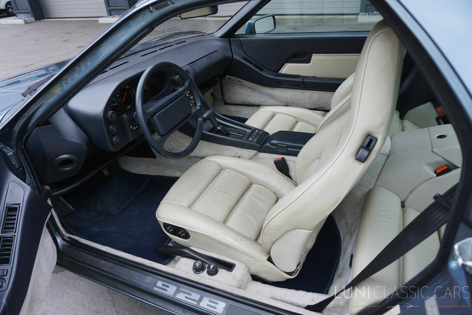 Dieses Exemplar von 1988 trägt die seltene Originalfarbe Veneziablau Metallic – ein Farbton, der je nach Licht zwischen kühler Eleganz und tiefer, fast flüssiger Präsenz wechselt. Innen empfängt dich elfenbeinfarbenes Leder, hell und edel, und gerade deshalb so passend: Der 928 war immer auch ein Luxus‑Porsche – nicht als Show, sondern als Atmosphäre. Hier wirkt alles wie aus einem Guss: Aussen eine erwachsene, zeitlose Linie, innen ein Interieur, das zum Reisen einlädt und doch sportlich bleibt.