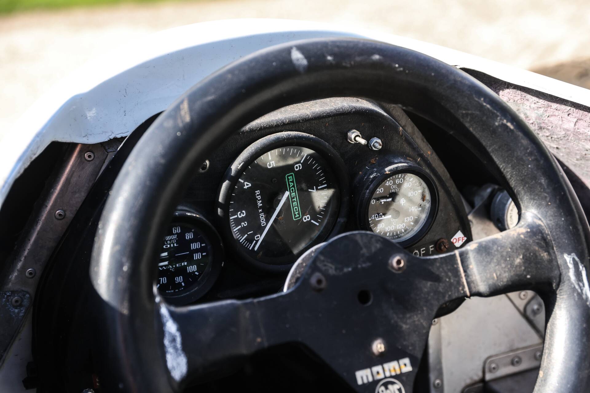 This example is presented in white with no decals and is offered with its trailer and set of slicks. We believe it was produced in 1987 and has been used in many sprint and hill climb events of the era. Paperwork accompanying the car includes documents from Engine Developments Ltd or Rugby which provide engine details from the engine in 1987, a Volkswagen sourced unit, stating 160bhp at 5,250-5,500rpm output and a measurement of torque. Our vendor states he has had this running in the last 12 months but the car will need recommissioning. Complete with much of the build and maintenance documentation, firing order and wiring diagrams etc. It is not a true unknown and viewing will satisfy any potential buyer of the specifics. Hewland Engineering appear to have been responsible for installing the Hewland Mk. 8/9 transaxle gearbox with dyno tests available within the history file. Our vendor has had this dry stored for many years since last used in anger. It is supplied with a fully working trailer, some spares, a set of slick tyres along with the wets it is currently wearing and a box full of build sheet details. This is an opportunity to rekindle hill climb or sprint race/track day fun in a fabulous piece of 80's engineering, offered without reserve. Consigned by Mathew Priddy