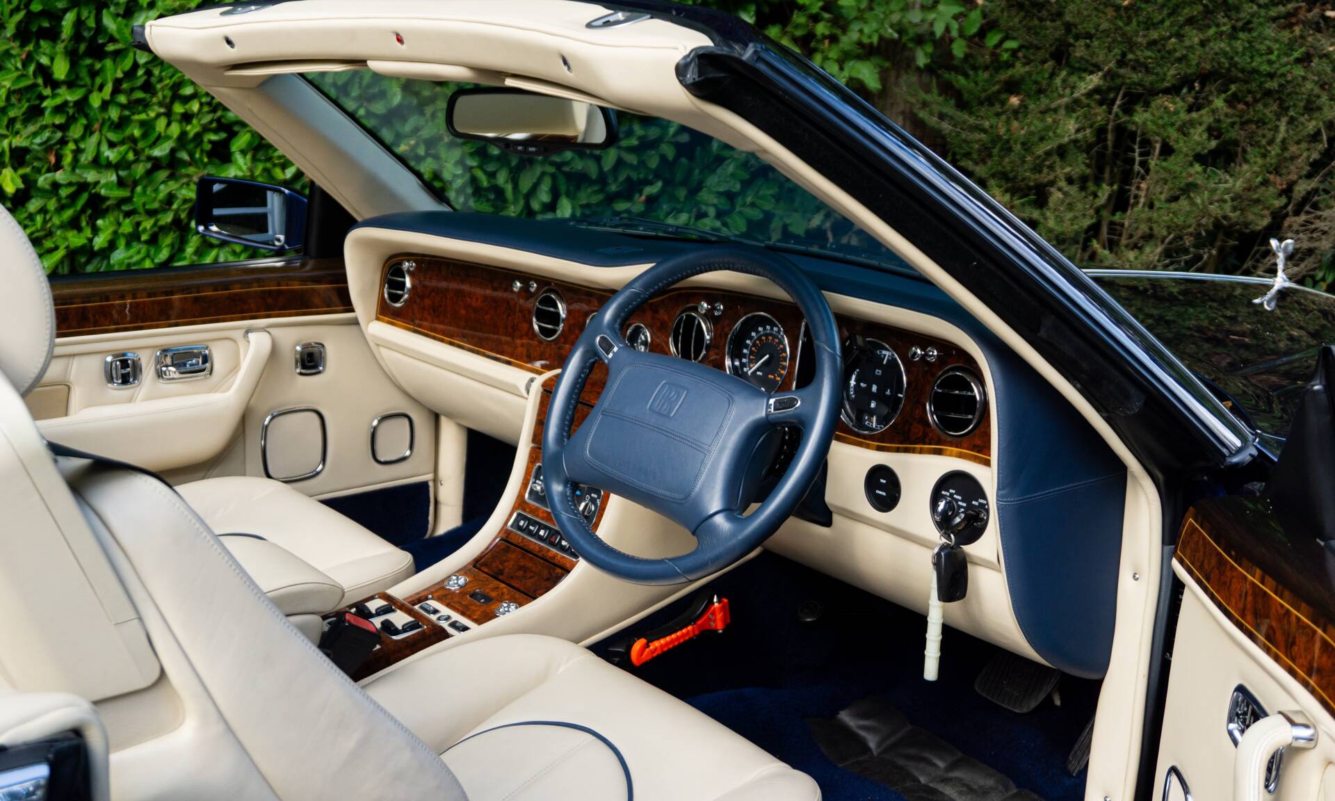Our vendor purchased this example brand new from Broughton's of Surrey (now H.R. Owen) in 2001 and specified it beautifully in Peacock Blue with a Parchment hide interior piped Dark Blue, as well as Dark Blue lambswool rugs. The car has only ever been used for special occasions in the summer, for trips to Ascot and so on, so the mileage has been kept remarkably low at just over 6,000 and the condition is virtually as new. The coachwork gleams, as does the brightwork and the blue hood is in remarkable condition too. The interior looks almost unused, and the car is ready to grace any collection. These cars are very highly specified with front and rear heated seats, electric front seats, cruise control, and climate control, to name just a few features. Maintenance and servicing have been carried out exclusively by the supplying dealer, Broughton/H.R. Owen Surrey since new. Matt Cooper the Bentley Surrey service manager, confirms that he's delighted to answer any questions on this beautiful Rolls-Royce. This is a true collector quality example of one of the rarest Rolls-Royce's ever produced and one that carries the distinction of being the last Rolls-Royce model manufactured at Crewe. Supplied to auction with an MoT test certificate valid until March 2026 and a recent service carried out earlier this year, viewing in person is highly recommended to appreciate the quality of this remarkable Rolls-Royce. Consigned by Fraser Smith