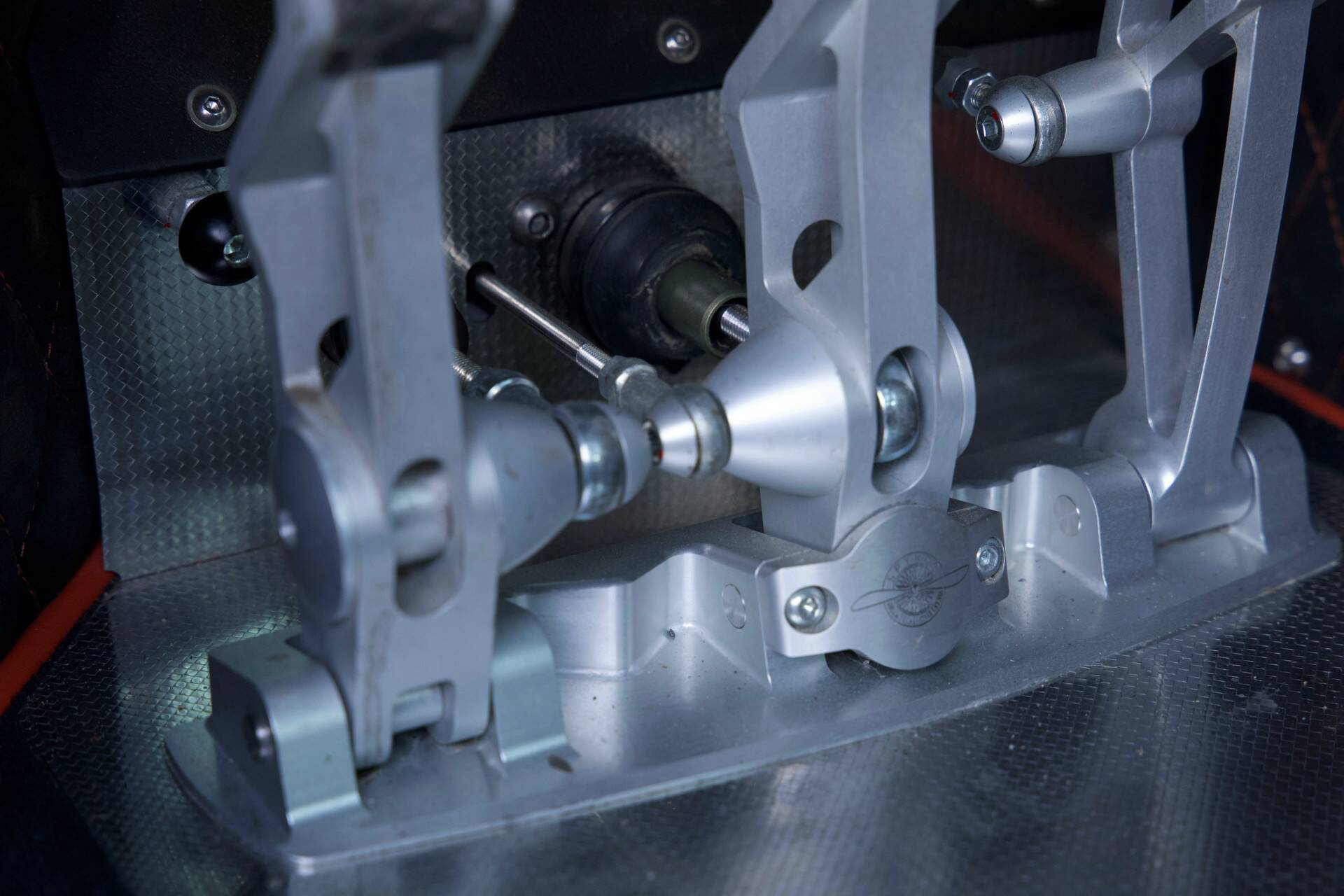 Die Radaufhängung besteht aus voll einstellbaren Koni-Dämpfern, die rundum an Doppelquerlenkern befestigt sind. Die Lackierung trägt den schönen Namen „Burned Almond Orange“ und ist in diesem Fall mit diversen Gunmetal-Akzenten versehen. Darüber hinaus ist das Auto mit einem Lufteinlass auf dem Dach ausgestattet, der aus poliertem Aluminium besteht. Das polierte Aluminium ist an der Karosserie häufiger anzutreffen und bildet einen schönen Kontrast zur orangen Lackierung. Der Auspuff ist mit modifizierten Endstücken gegenüber "normalen" Spykers ausgestattet. Schließlich erkennt man den LM85 an einem kleinen Heckspoiler, orangefarbenem Fensterband, großem Diffusor und einem Splitter vorn.