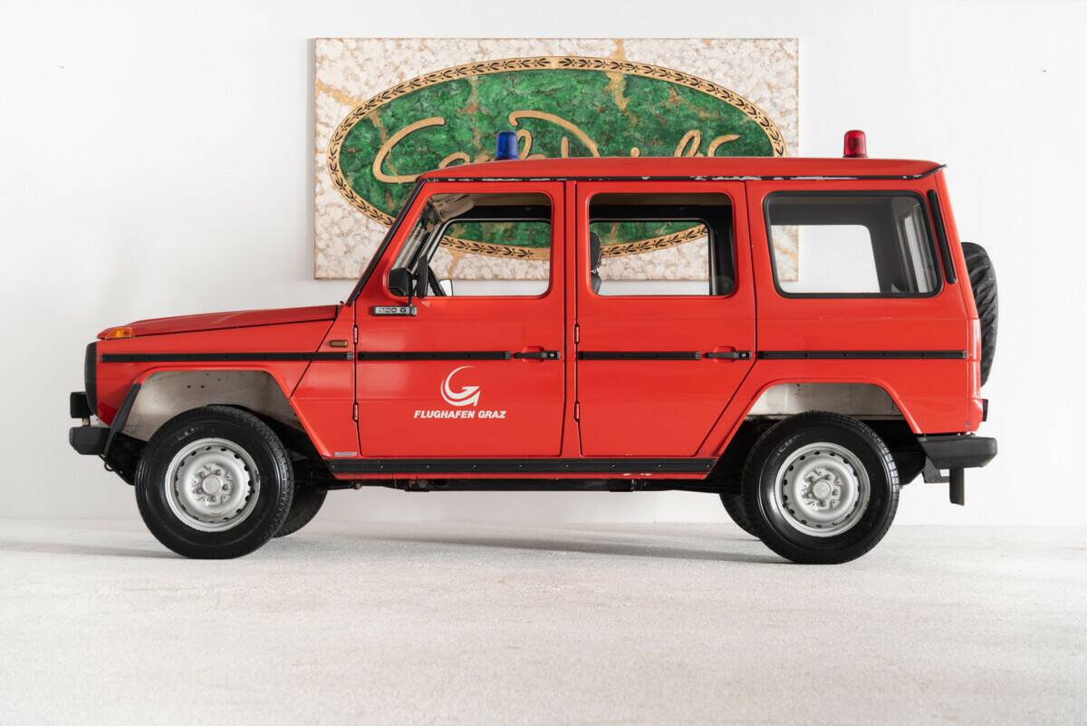 Das 230 G Kommandofahrzeug, ursprünglich im Einsatz am Flughafen Graz, trägt die Fahrgestellnummer 1333 und hat eine bemerkenswerte Historie. Am 17. September 1979 wurde das Fahrzeug fertiggestellt und von der Versuchsabteilung übernommen. Die Erstzulassung erfolgte zweit Tage später, am 19. Oktober 1979 auf eine Adresse, die heute das Puch-Museum beherbergt. Das Typenschild des Fahrzeugs wurde bereits am 10. Oktober 1979 erstellt und gilt als eines der ersten möglicherweise sogar der allererste W460 G mit langem Radstand und Typenschild. Welches den Start der Serienproduktion einleitet.Das wird durch Archivdokumente eines G-Klassen-Sammlers bestätigt, die zwei Vorserienmodelle mit langem Radstand welche zuvor produziert wurden beherbergen die (Nr. 0095 und Nr. 0709). Die nächste dokumentierte G-Klasse mit langem Radstand ist unser Fahrzeug mit der Nummer 1333.Im Jahr 1981 erfolgte der Umbau des Wagens zum Feuerwehrfahrzeug für den Flughafen Graz. Die herausragende Bedeutung dieses Fahrzeugs in Graz, zeigt sich auch an seinem Kennzeichen "ST-6", das bis heute am Fahrzeug angebracht ist. Zum Vergleich: Der damalige Ministerpräsident führte die Kennzeichen "ST-1" und "ST-2". Dank seiner staatlichen Nutzung blieb das Fahrzeug stets in einem ausgezeichneten Zustand.Im Juni 2008 wurde der 230 G von seinem letzten Besitzer, einem passionierten G-Klassen-Sammler und Liebhaber, erworben. Er übernahm das Fahrzeug von einem Freund, ebenfalls ein Enthusiast.Das Besondere an diesem historischen Juwel ist der vollkommen originale und unberührte Zustand, der bis heute erhalten geblieben ist, eine seltene Kostbarkeit in der Welt der G-Klasse. "Ein Fahrzeug wie den neuen Mercedes-Benz Geländewagen hat es noch nicht gegeben."Die erste Überschrift aus einer Verkaufsbroschüre für die 1979 erschienene G-Klasse lässt erahnen, wie stolz Mercedes auf seine Schöpfung war - und das zurecht.1972 entschloss sich Daimler-Benz dazu, gemeinsam mit der damaligen Steyr-Daimler-Puch AG einen Geländewagen zu entwickeln. Dies geschah unter anderem durch den Einfluss des iranischen Herrschers Mohammed Reza Pahlavi, der etwa 18 % der Aktien der Daimler-Benz AG hielt - er benötigte geländegängige Fahrzeuge für seine Grenzpatrouillen und für die Jagd. Daimler-Benz hoffte, die Fahrzeuge auch an die Bundeswehr verkaufen zu können, scheiterte dabei aber an Kostengründen am VW Iltis. Die Baureihe W460 startete 1979 mit fünf Aufbauten in zwei Radständen: Stationwagen und Kastenwagen gab es jeweils mit kurzem und langem, den offenen Geländewagen nur mit kurzem Radstand. Zum Start standen die Lackierungen Cremeweiß, Weizengelb, Coloradobeige, Kaminrot und Agavengrün zur Auswahl, gepaart mit den Innenfarben Schwarz oder Dattelbraun.Dank der Differentialsperren für Vorder- und Hinterachse ist die G-Klasse auch in schwerem Gelände einsetzbar. Aber auch auf der Straße weiß er zu überzeugen, darauf wurde während der Entwicklung ebenfalls viel Wert gelegt. Dank der flexiblen Gestaltung des Innnenraumes mit Fondsitzbank oder den hinteren längsgestellten Sitzen, boten sich viele Varianten an: im langen Radstand war der "Stationwagen" sogar mit bis zu neun Sitzplätzen möglich.Ein weiteres Merkmal der G-Klasse war die servicefreundliche Konstruktion. So wurden hauptsächlich bereits bestehende Bauteile aus anderen Baureihen (PKW und Transporter) verwendet, um eine weltweite Verfügbarkeit zu garantieren und dem Servicepersonal die Arbeit zu erleichtern. Alle Teile sind dabei vergleichsweise einfach zugänglich, sodass man selbst Hand anlegen kann, wenn man in abgeschiedenen Gegenden liegenbleiben sollte (was natürlich mit dem G äußerst selten vorkommt).Die Niederlage bei der Ausschreibung der Bundeswehr konnte übrigens Anfang der 90er Jahre mit dem 250 GD "Wolf" wieder ausgeglichen werden, als Mercedes sich schlussendlich gegen VW durchsetzte. So kam es dann doch doch dazu, dass sich die G-Klasse im schicken Tarnkleid schmücken konnte.