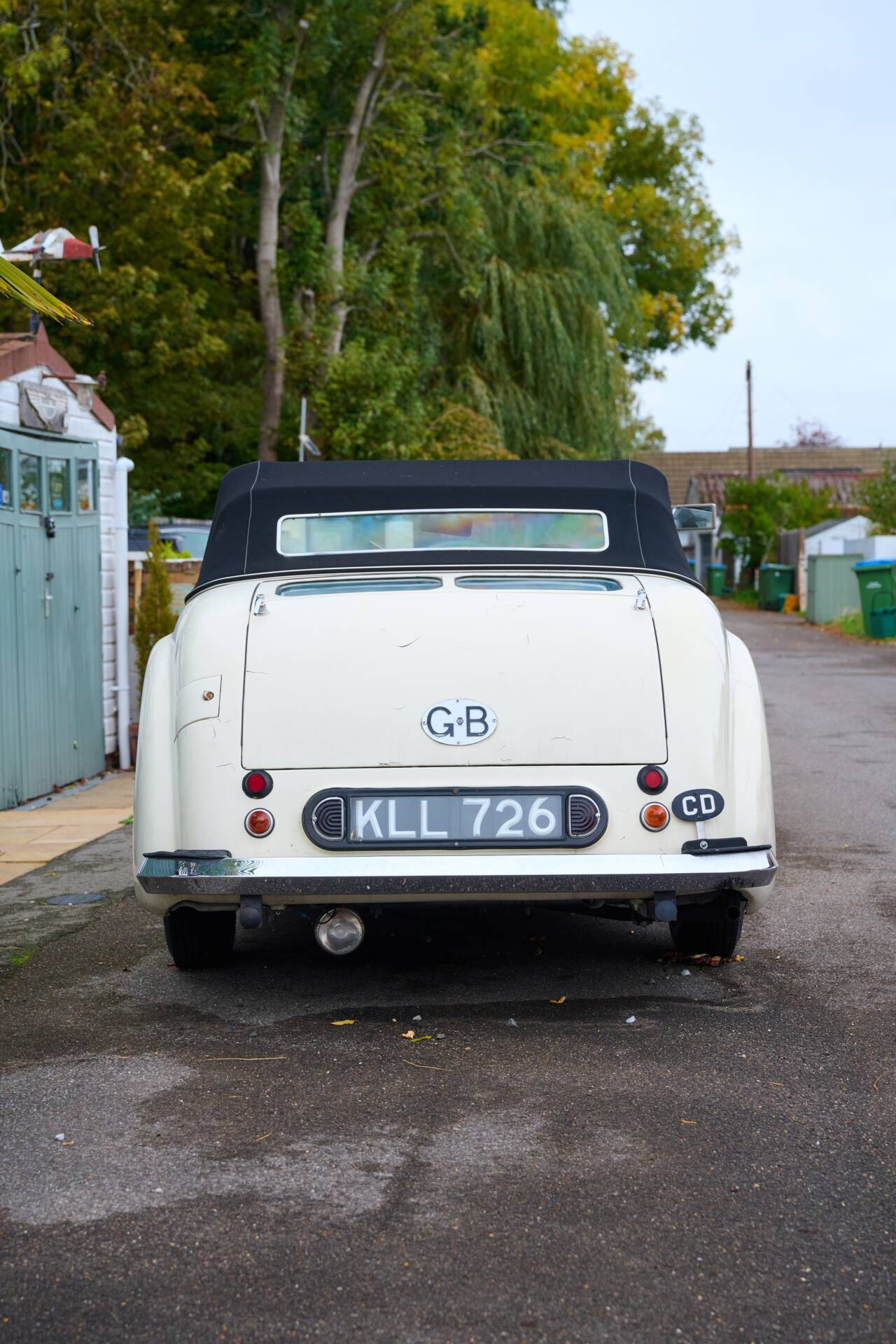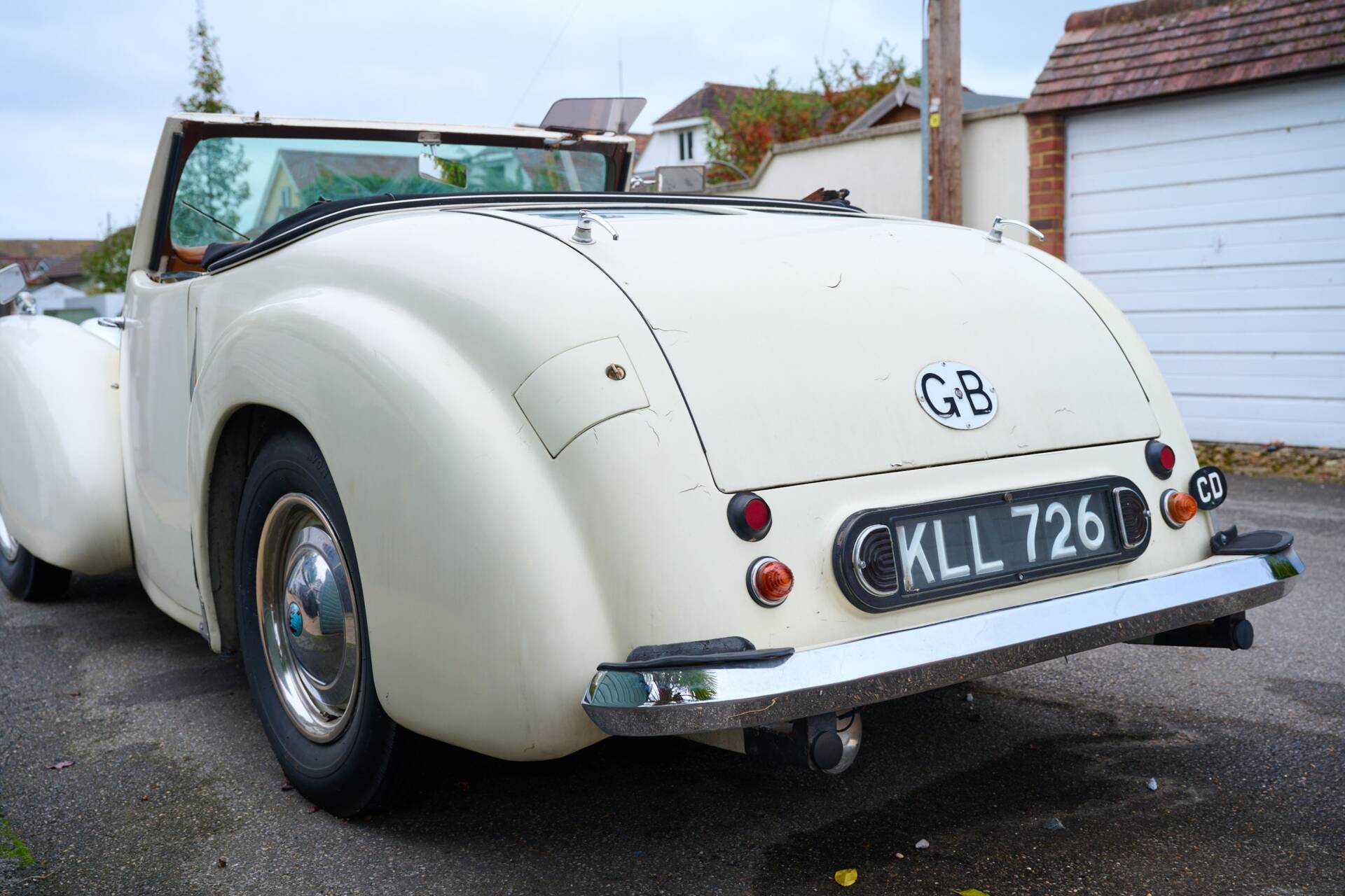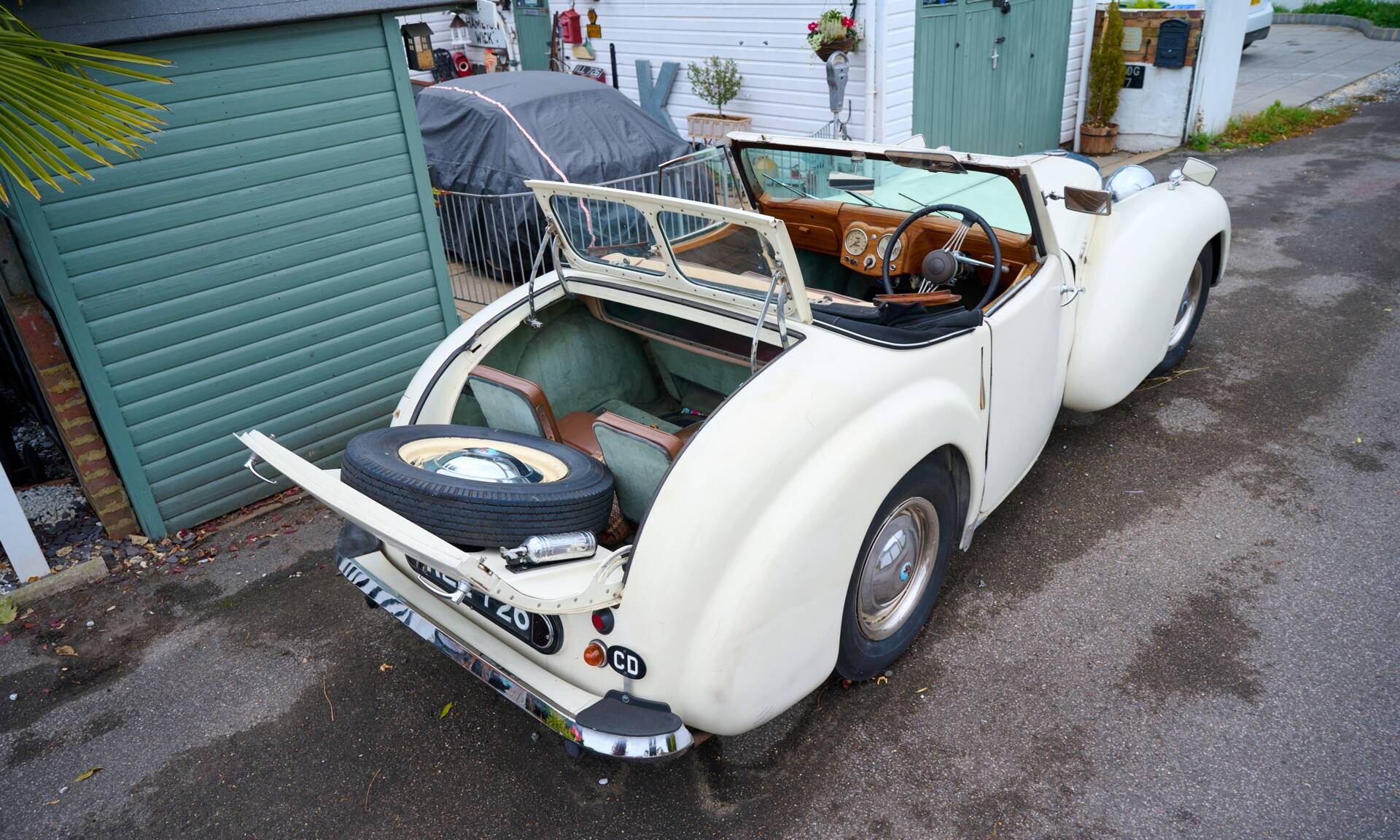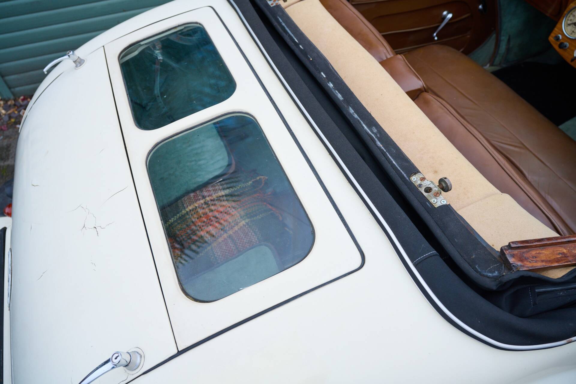 This example is presented in white with a brown interior and has a new black mohair hood. This has been the cherished vehicle of the present owner's late husband who used it as his daily driver up until March/April this year. Although the engine has not run since this time, it does turn over but will need some light recommissioning prior to driving it on the road and therefore we recommend it to be transported away from the auction. These British sports cars are very versatile having the use of the 'dicky' seat to the rear offering seating for two more passengers. The car resided in Belgium for a period of time and was imported back to the UK in 2002 when it was registered with the DVLA. It would appear, owing to a small metal badge mounted to the rear stating CD, that it was owned once upon a time by an individual in the Diplomatic Corps but there is no paperwork to substantiate this. The car has had its new mohair hood fitted recently, and the dashboard and door cappings are in good condition, as well as the seats. It comes with a history file containing various receipts in Belgian and English showing works done in the past. Consigned by James Good