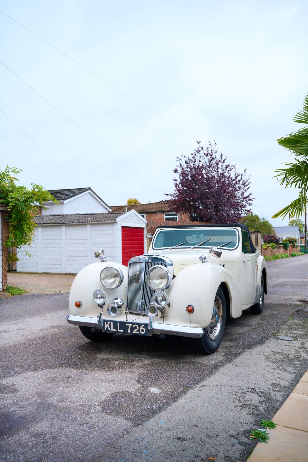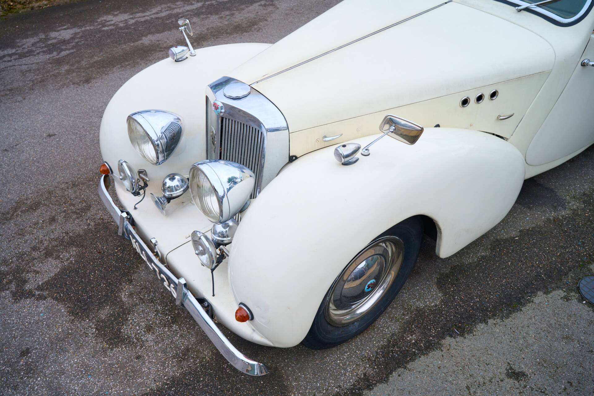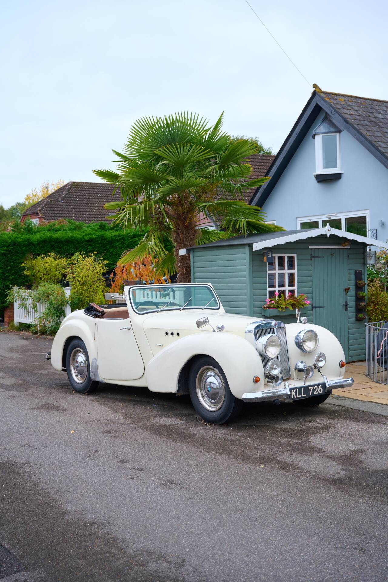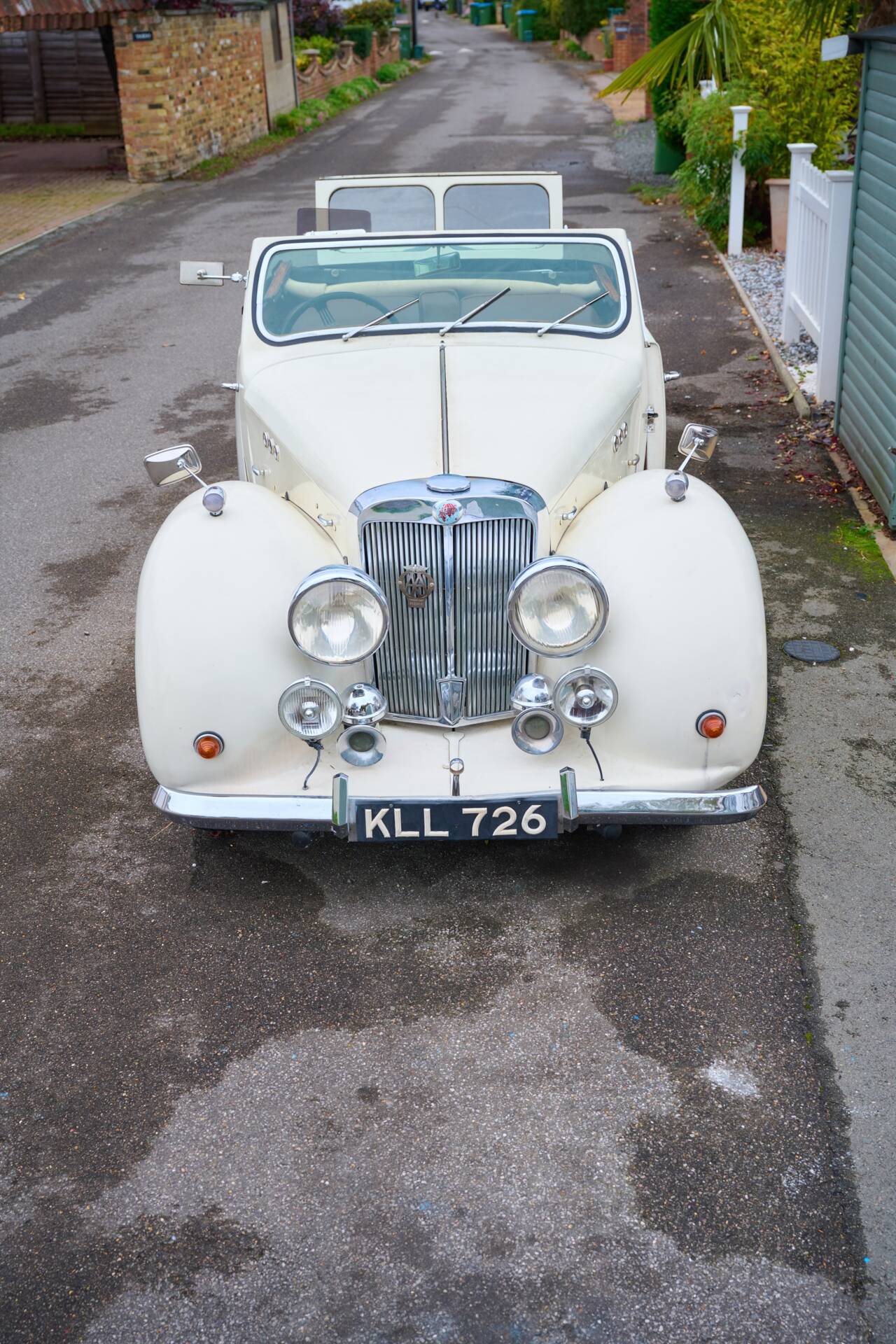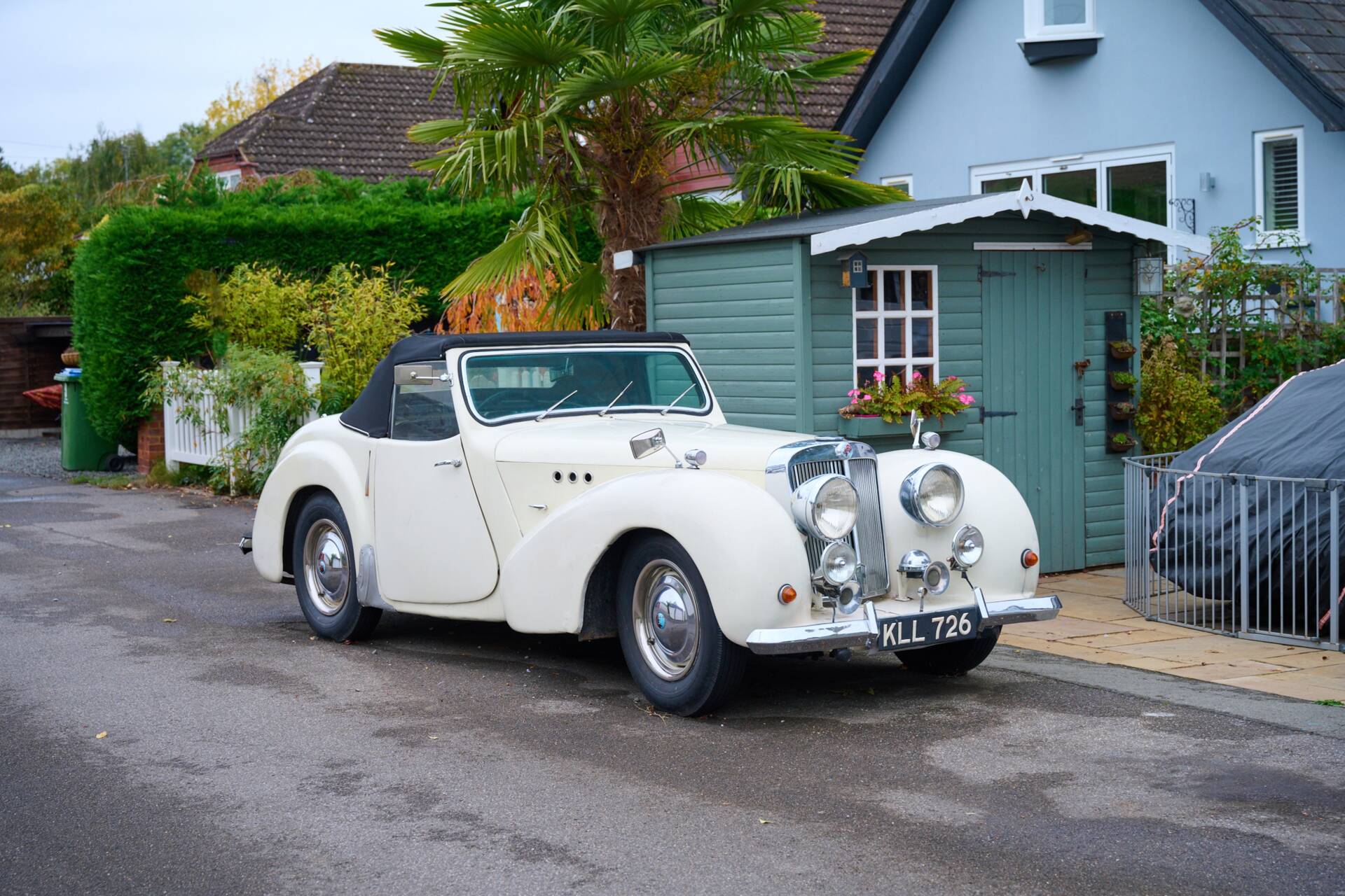 This example is presented in white with a brown interior and has a new black mohair hood. This has been the cherished vehicle of the present owner's late husband who used it as his daily driver up until March/April this year. Although the engine has not run since this time, it does turn over but will need some light recommissioning prior to driving it on the road and therefore we recommend it to be transported away from the auction. These British sports cars are very versatile having the use of the 'dicky' seat to the rear offering seating for two more passengers. The car resided in Belgium for a period of time and was imported back to the UK in 2002 when it was registered with the DVLA. It would appear, owing to a small metal badge mounted to the rear stating CD, that it was owned once upon a time by an individual in the Diplomatic Corps but there is no paperwork to substantiate this. The car has had its new mohair hood fitted recently, and the dashboard and door cappings are in good condition, as well as the seats. It comes with a history file containing various receipts in Belgian and English showing works done in the past. Consigned by James Good