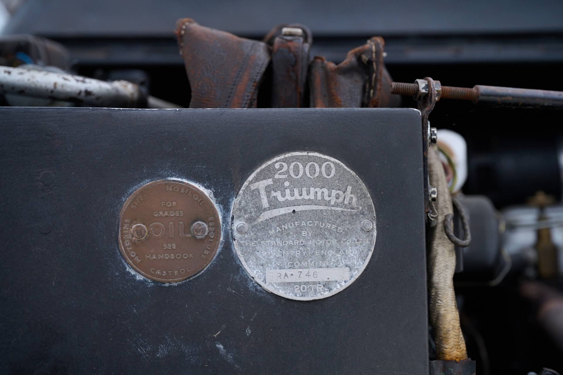 The Triumph Roadster was produced by Britain's Standard Motor Company from 1946 to 1949. It was first available as the Triumph 1800 Roadster from 1946 to 1948 and then as the Triumph 2000 Roadster from 1948 to 1949. Triumph had been purchased by the Standard Motor Company in 1944 and the managing director of Standard, Sir John Black, wanted a sports car to take on Jaguar, who had used Standard engines in the pre-war period. Frank Callaby was selected to style the new car and worked with Arthur Ballard to design the body. The only significant update in the Roadster's production came in September 1948 when the 2088cc Vanguard engine, transmission, and rear axle were fitted. This later version of the Roadster was given the model designation TRA. The car was never manufactured in large numbers and was mainly hand built. A total of 2,501 examples of the 1800 and 2000 were built with production ending in October 1949.
